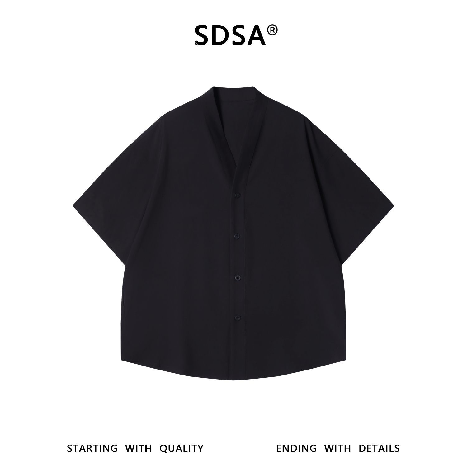 RY95633SDSA男装2026新款高贵轻奢休闲简约纯色V领短袖衬衫百搭时尚衬衣