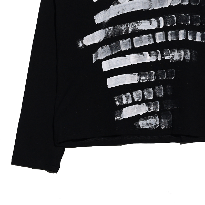 T463春秋季男女款黑色宽松手绘印花图案长袖百搭圆领情侣打底T恤