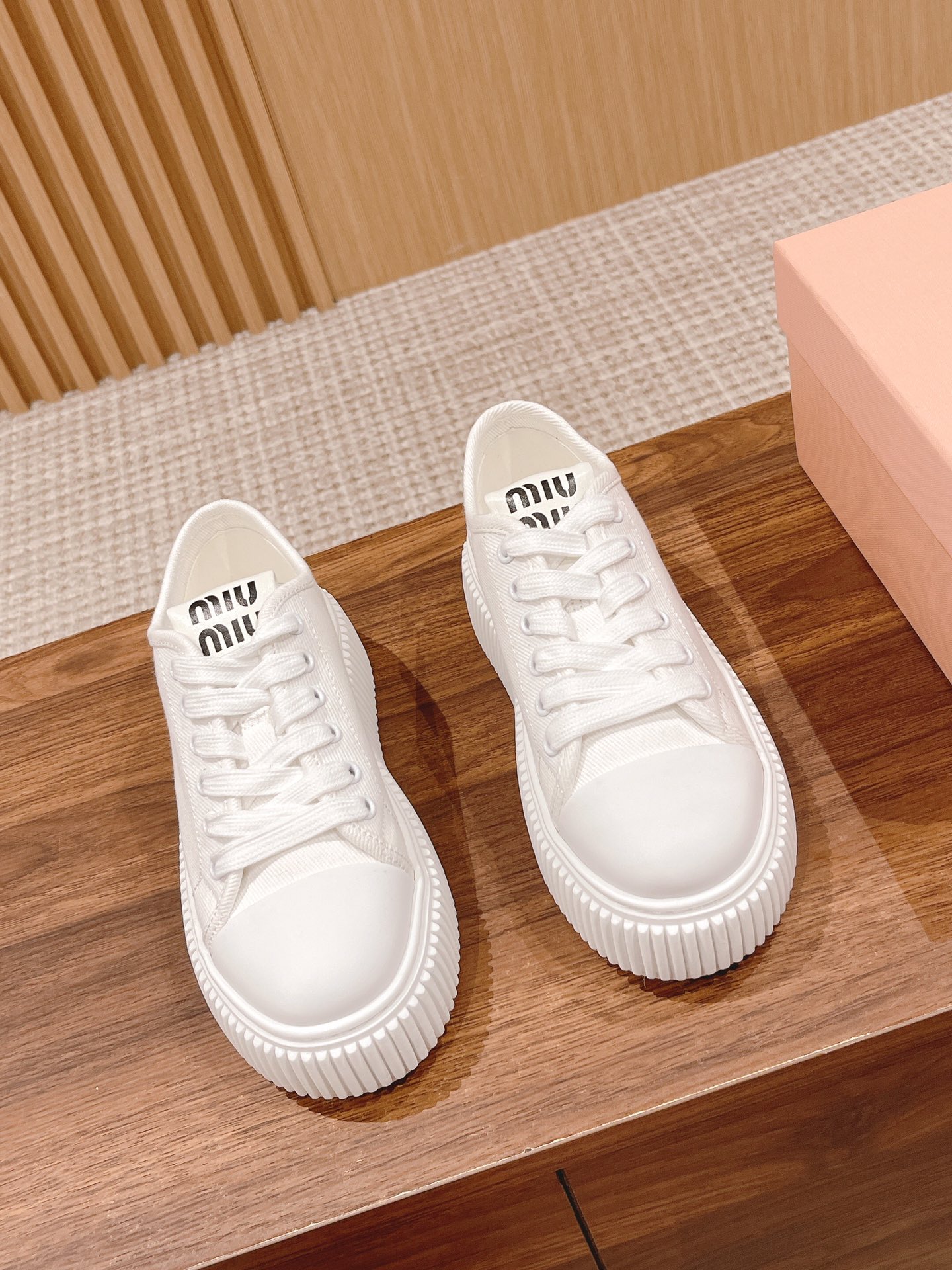 MiuMiu 23新款复古时尚厚底饼干小白鞋,低调奢华.鞋子整体超轻,不挑脚型,款式真的简约又好看,越久越耐看的一款吸睛神器!