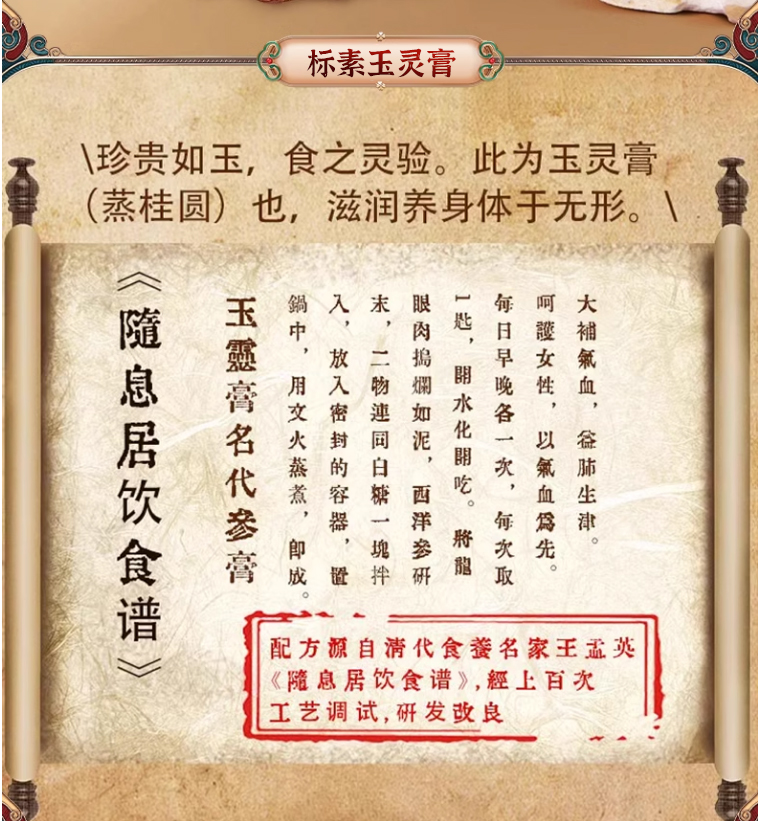 标素玉灵膏蒸桂圆蒸桂膏标素家西洋参玉灵膏标素官方旗舰店正品