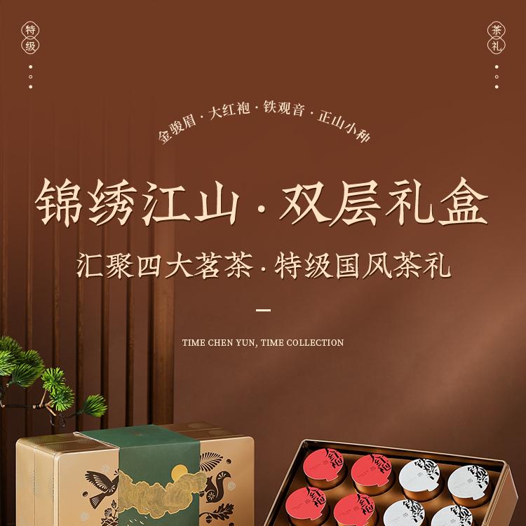 【锦绣江山】去寻茶叶礼盒特级四大茗茶国风茶礼金骏眉大红袍送长辈