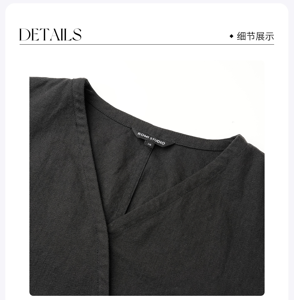 ROMI STUDIO “新中式” 苎麻天丝混纺酵洗V领斜门襟衬衣24SST099