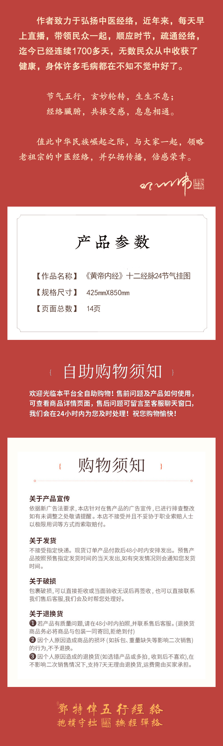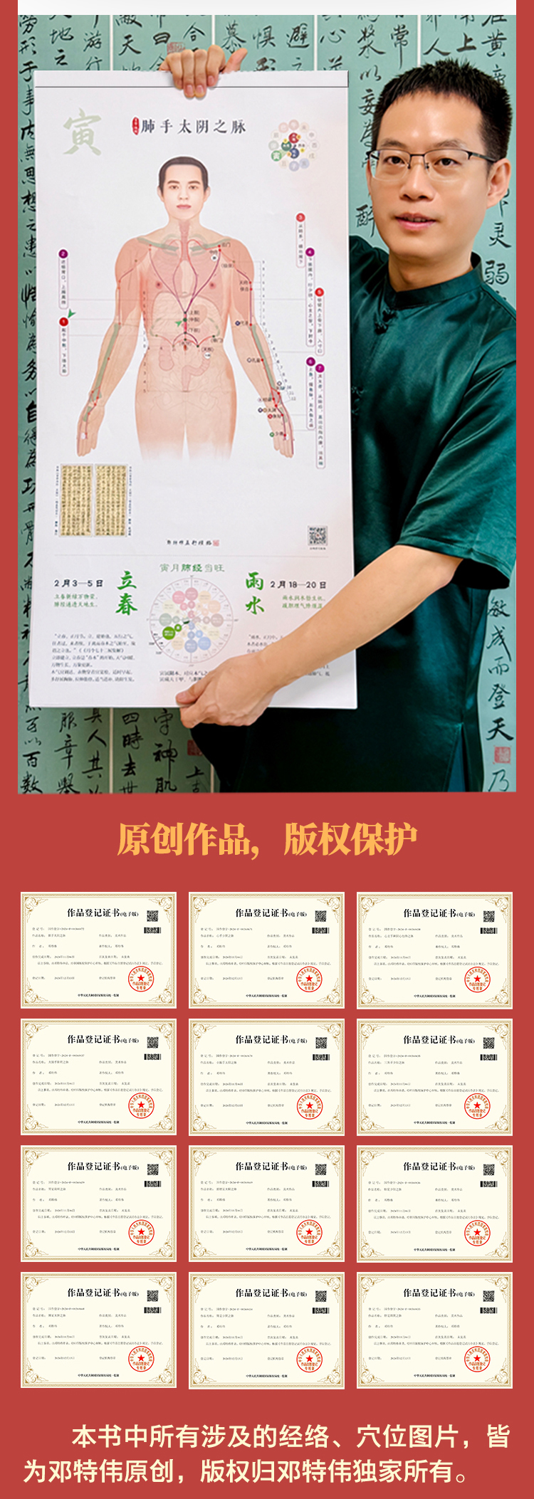 《黄帝内经》十二经脉24节气挂图 传承经典国粹,顺时经络养生。每年都不用换的经络养生·节气挂历。邓特伟医师原创编绘,匠心制作。献礼“邓特伟五行经络”连续直播1700天