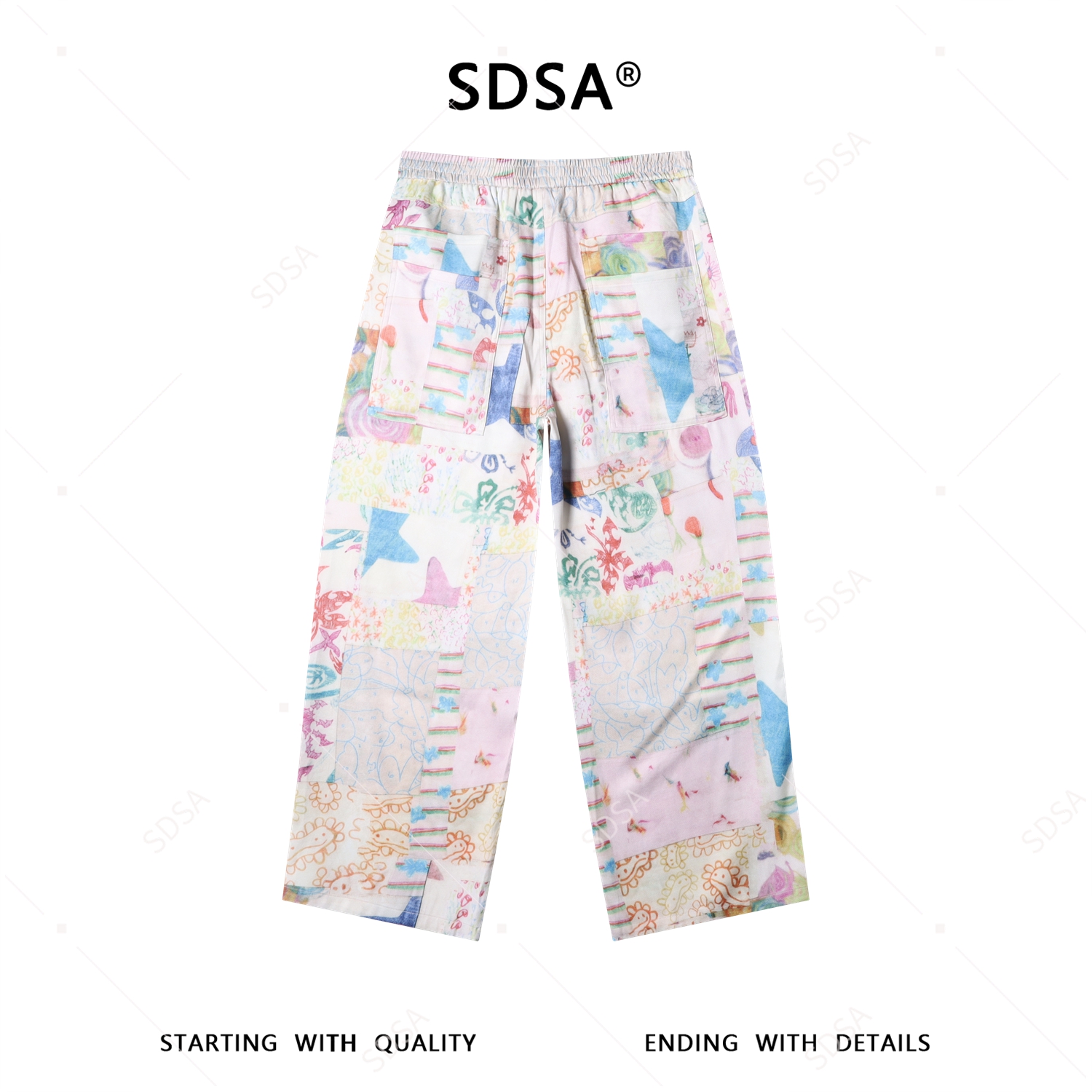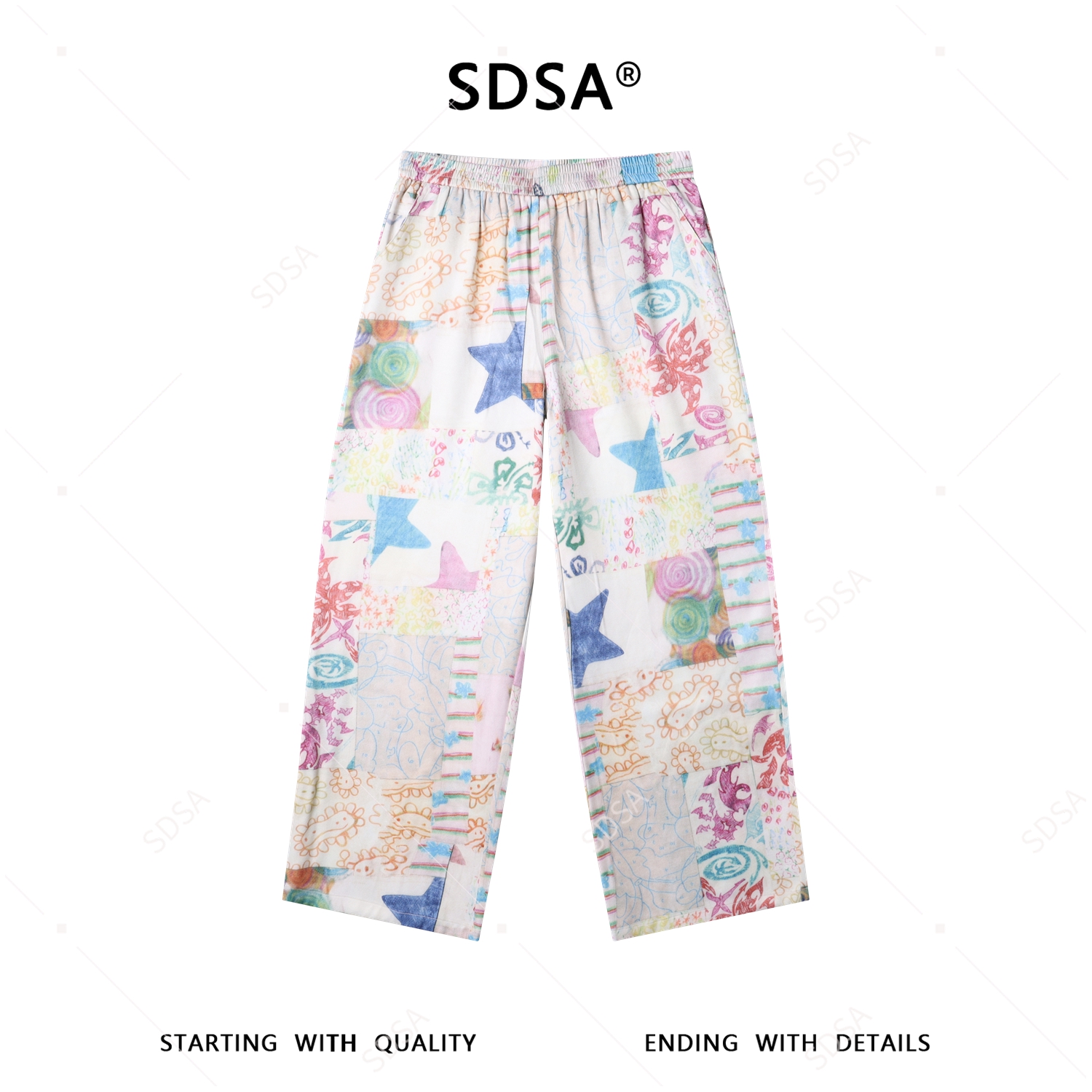 SDSA男装2026新款高贵轻奢多巴胺风格星星印花直筒阔腿休闲裤百搭