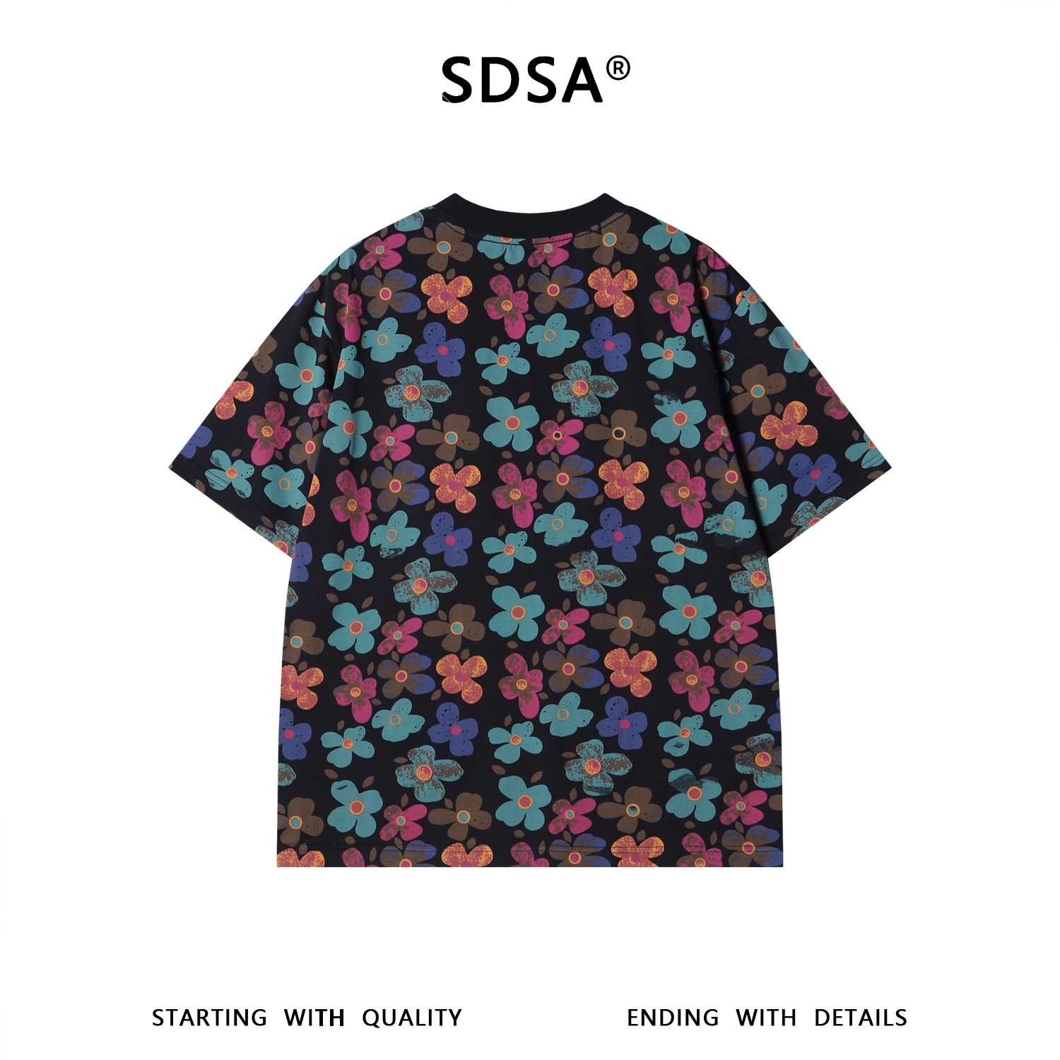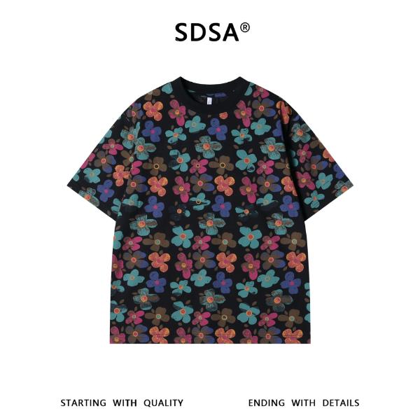 26T140SDSA男装2026新款高贵轻奢时尚简约满印彩色花卉圆领短袖T恤百搭