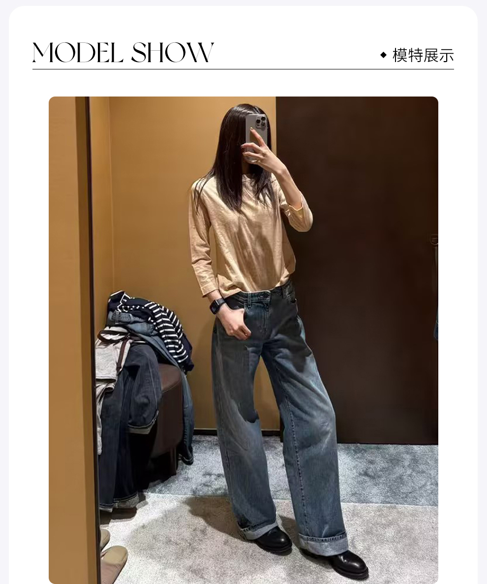 ROMI STUDIO“简约法式”柔软亲肤竹节棉圆领长袖T恤 RWCSSM2090