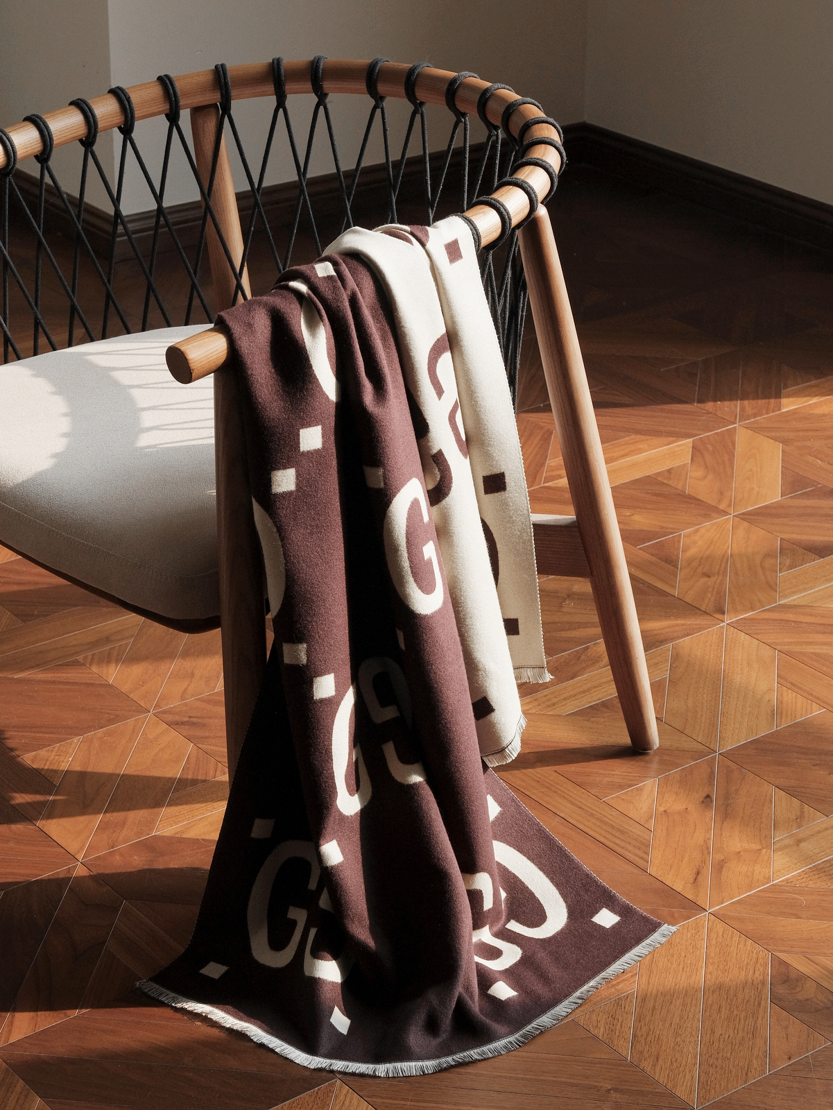 WJ09-古驰 双G双面提花 羊毛真丝 绒线围巾 男女同款情侣款 (QZ*MM)