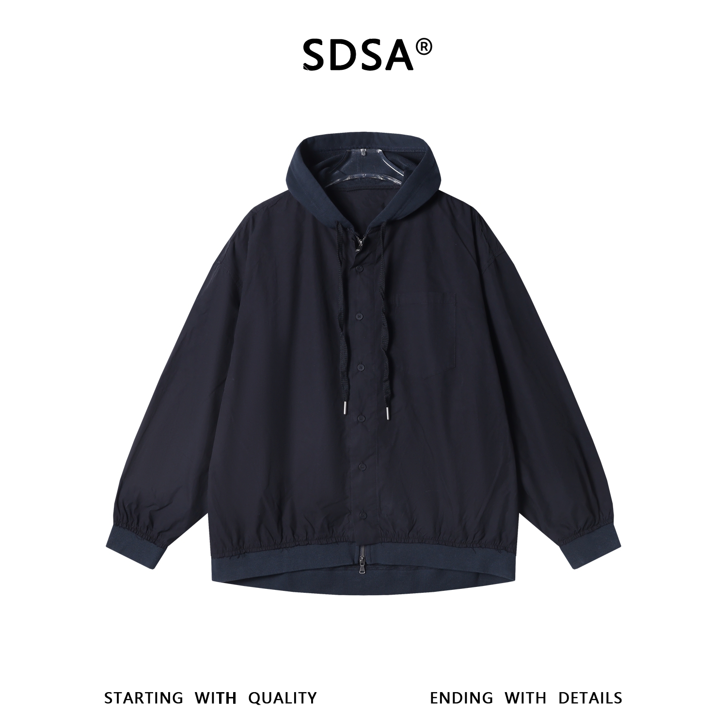 SDSA男装2026新款高贵轻奢美式复古拼接连帽夹克外套百搭宽松上衣