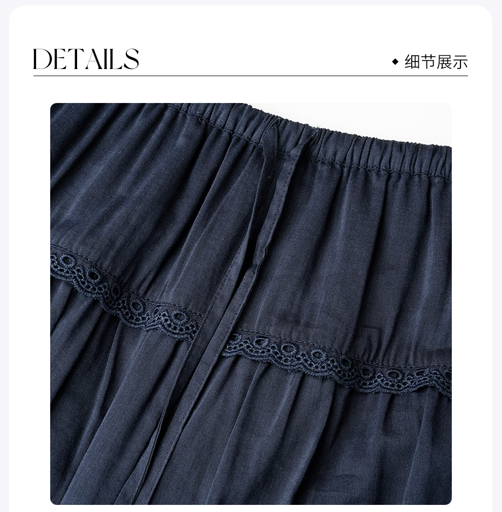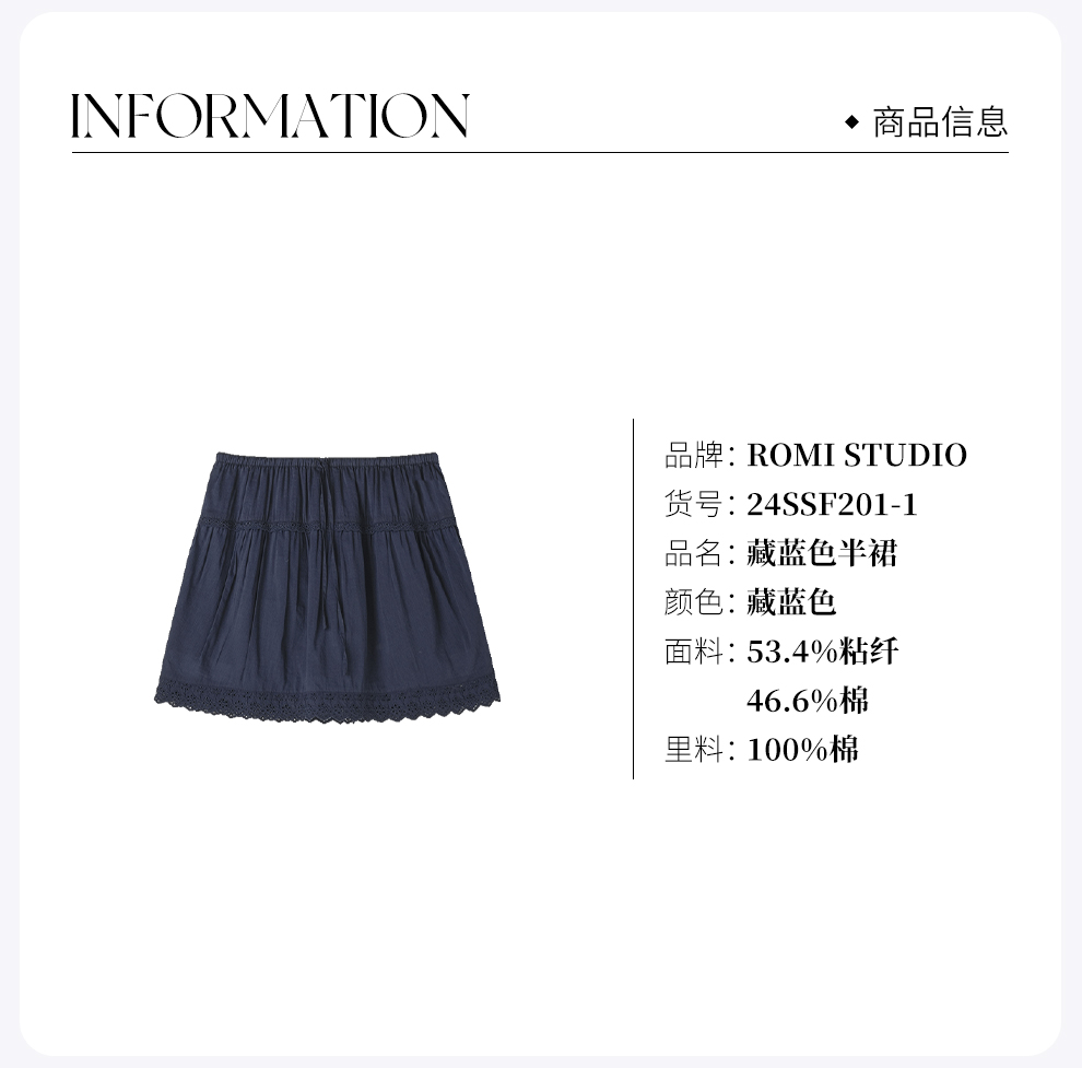 ROMI STUDIO-B“蓝调时刻”高支肤感棉混纺碎花边A字半裙24SSF201-1