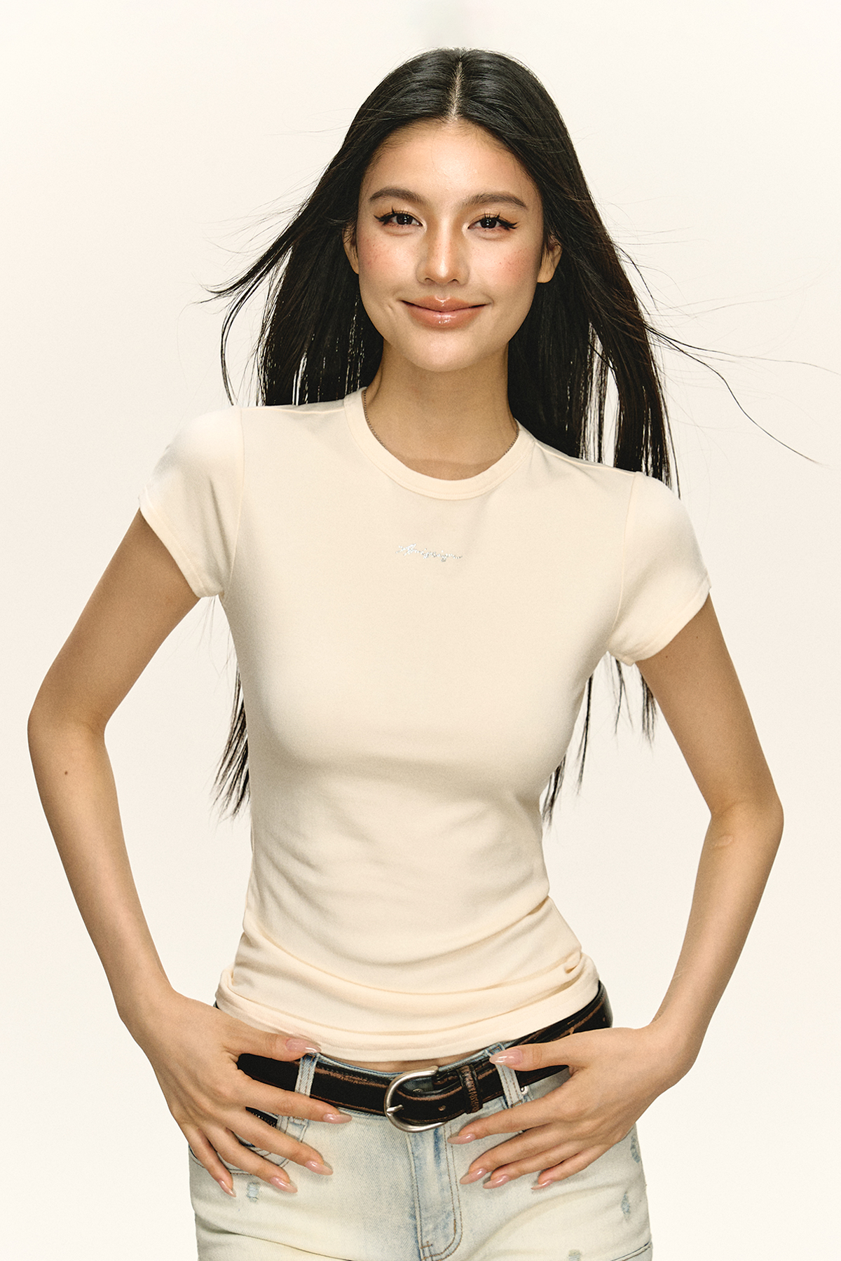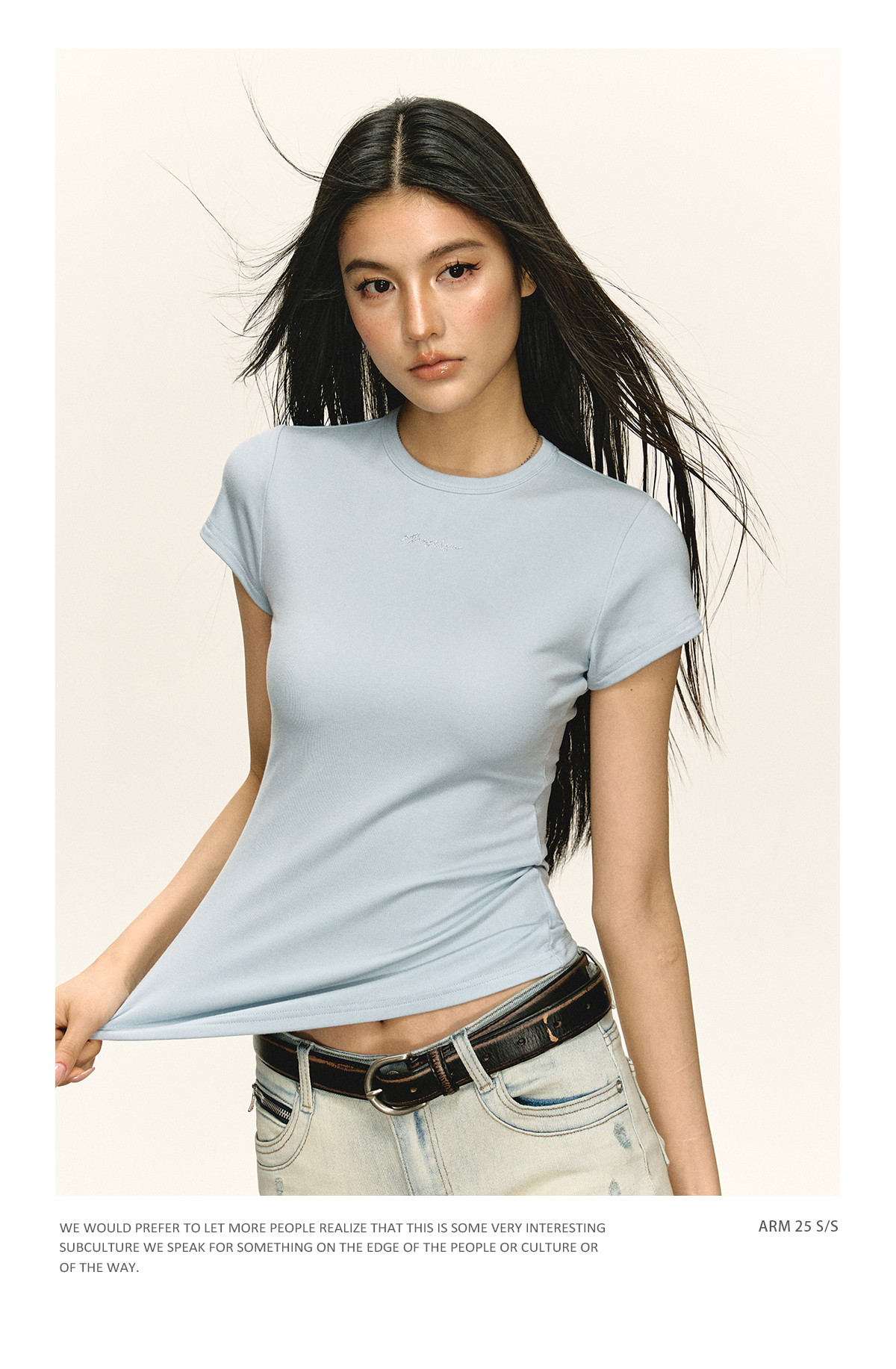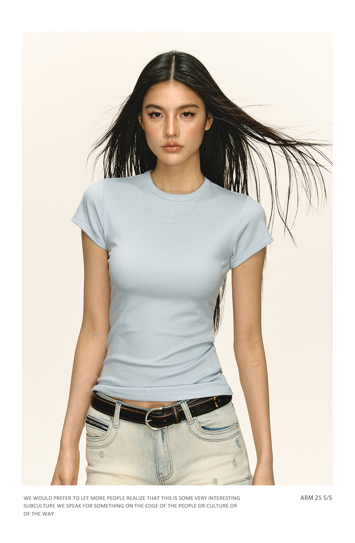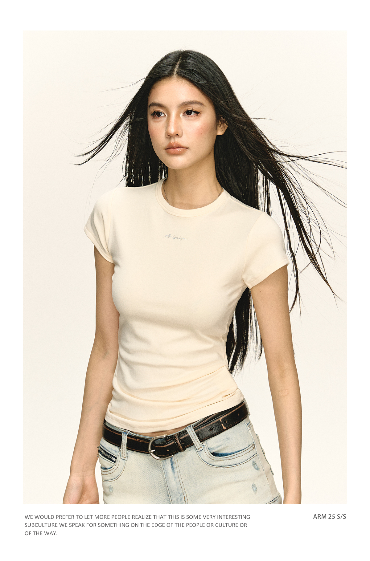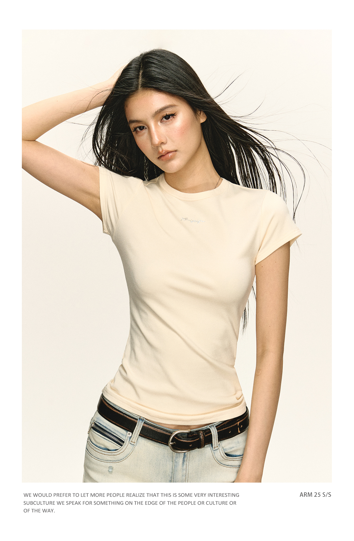 Ariseism 美式复古辣妹红色正肩短袖T恤女2025夏季新款修身上衣