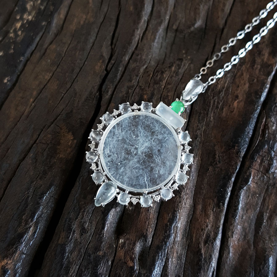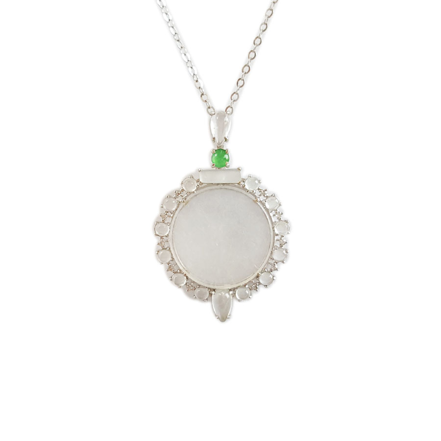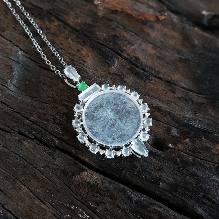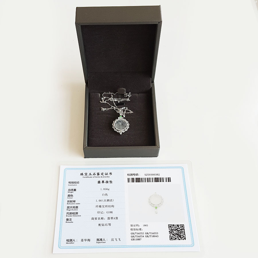 名称 | AU750白金镶钻镶天然冰种平安扣翡翠吊坠项链 |