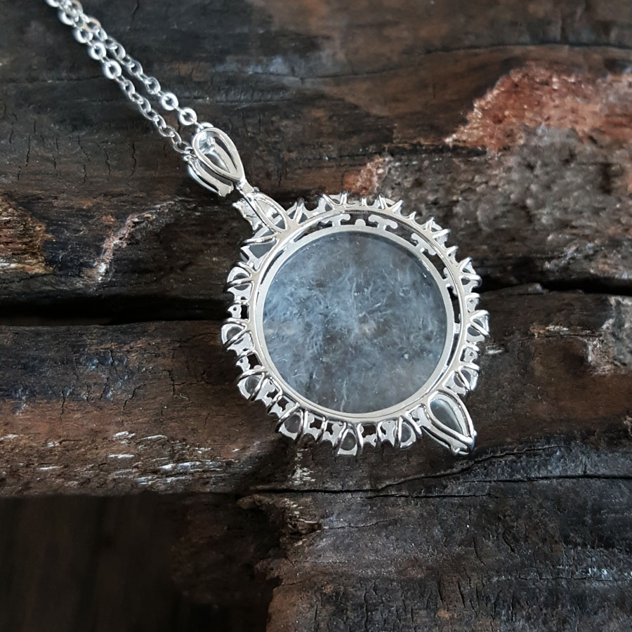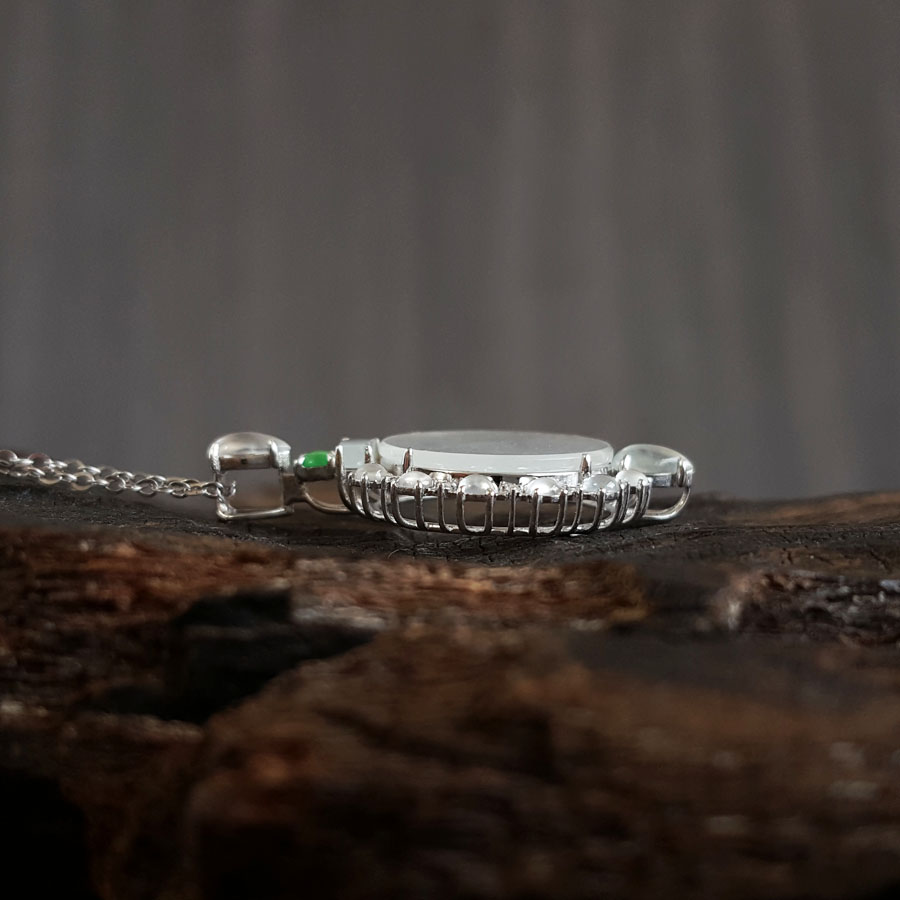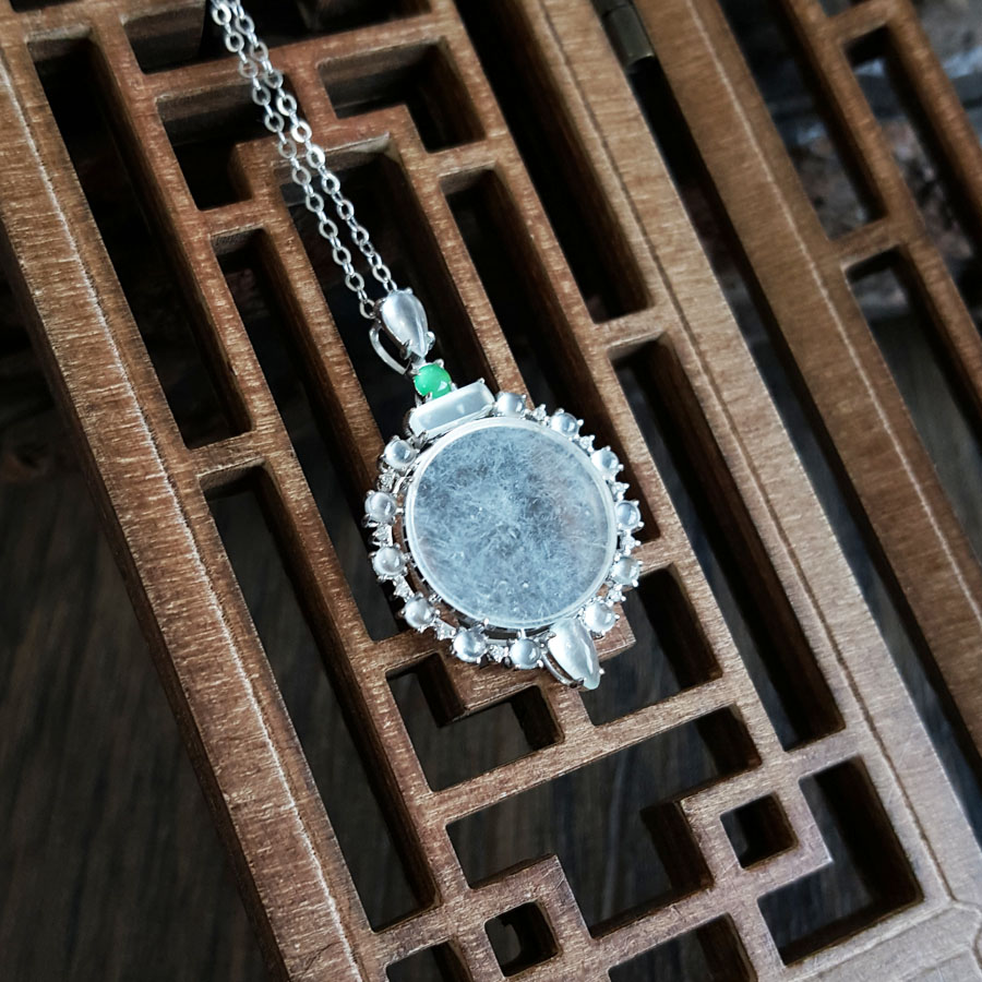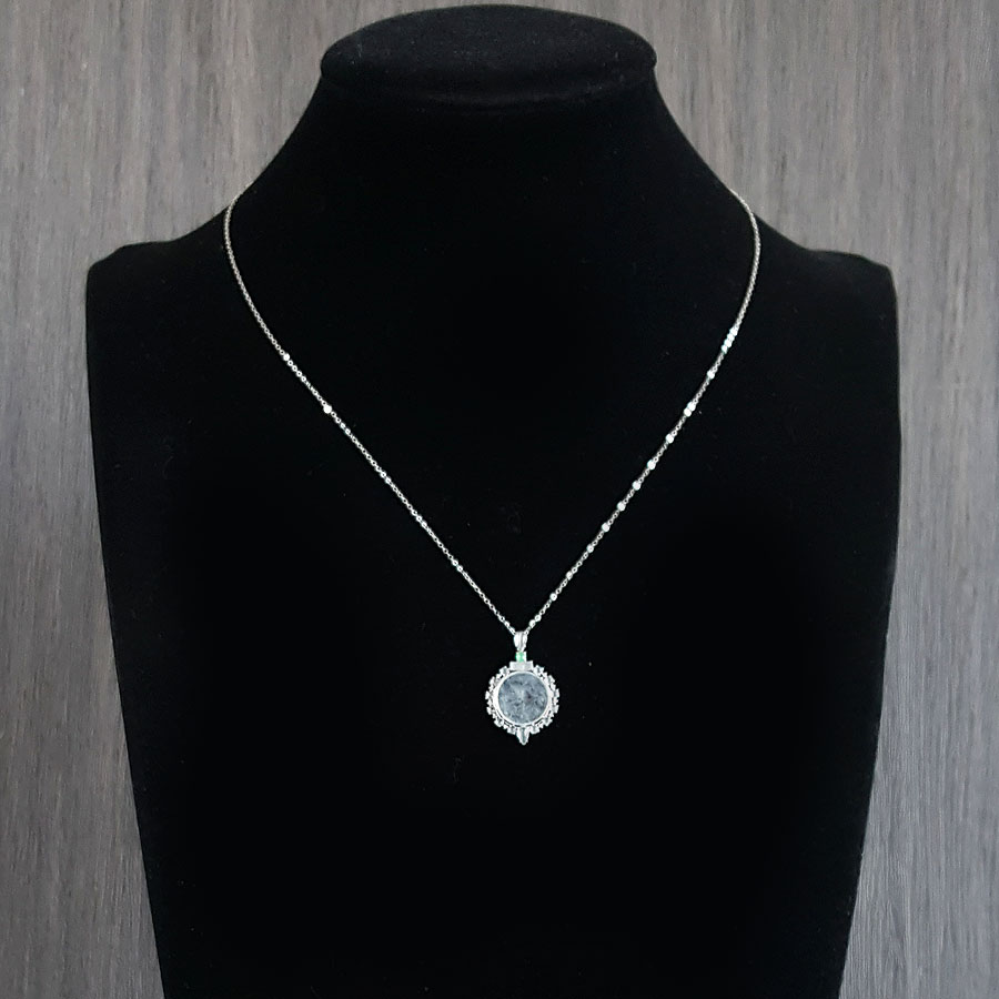 名称 | AU750白金镶钻镶天然冰种平安扣翡翠吊坠项链 |