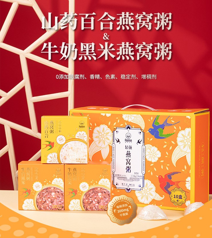 【熬夜晚睡!坚持元气滋补】滋养有范燕窝粥牛奶黑米山药百合礼盒过年送礼年货燕窝方便粥。ry