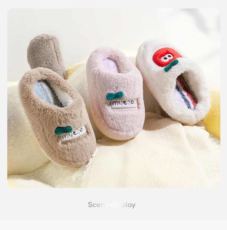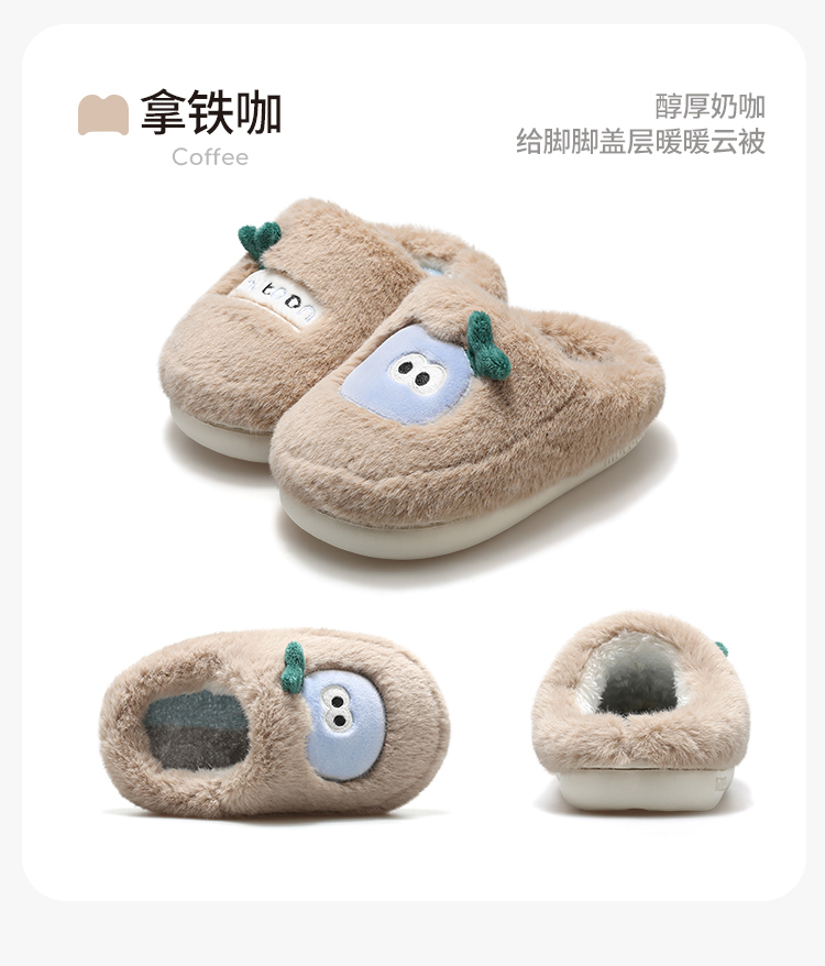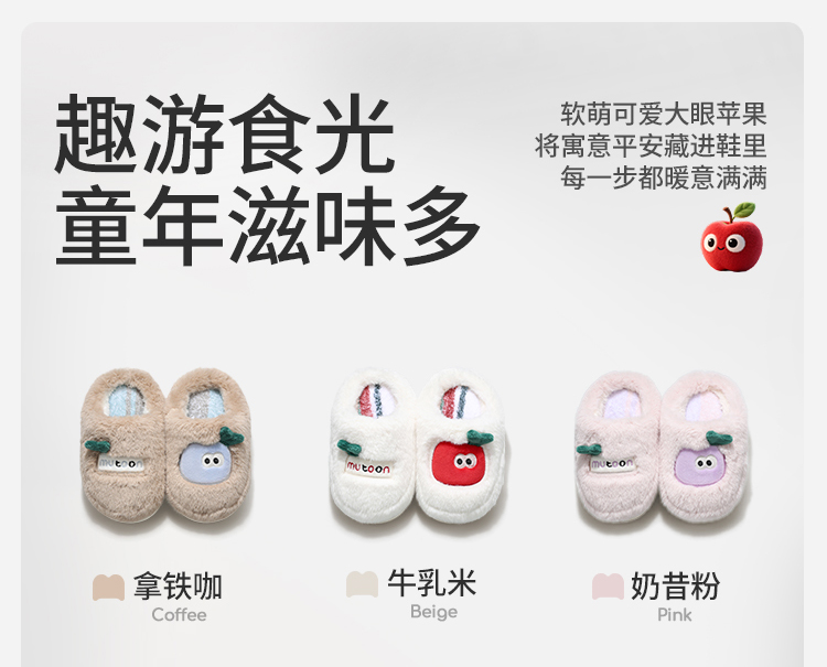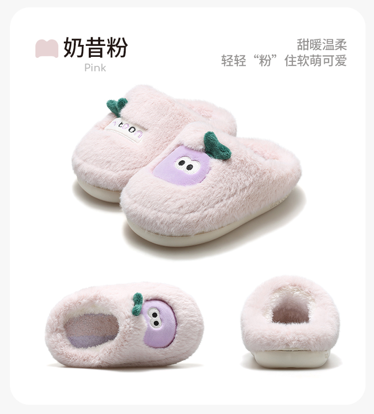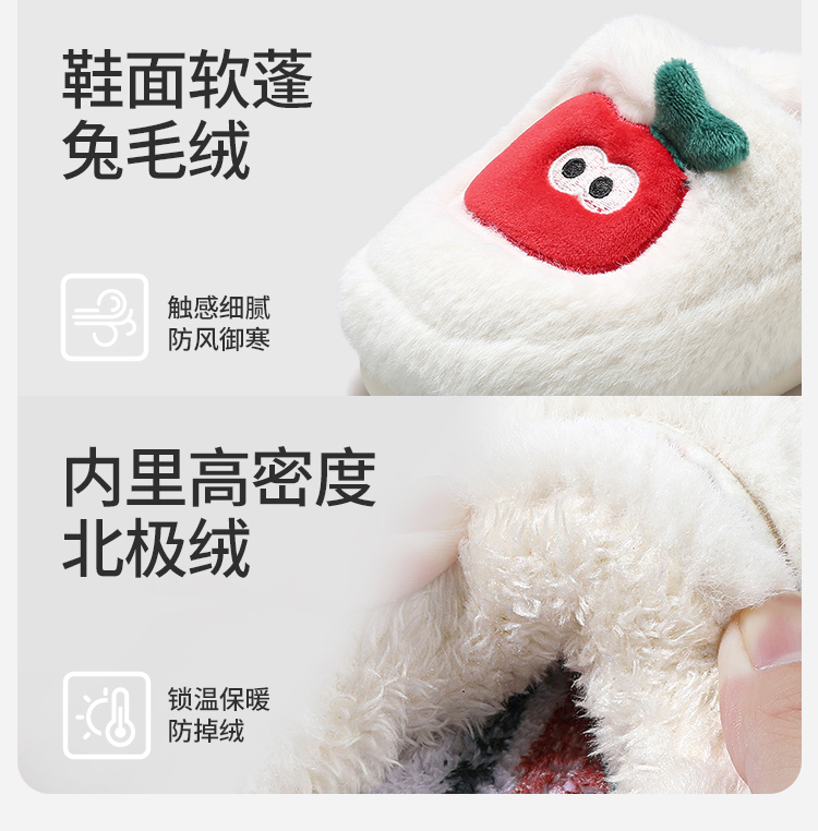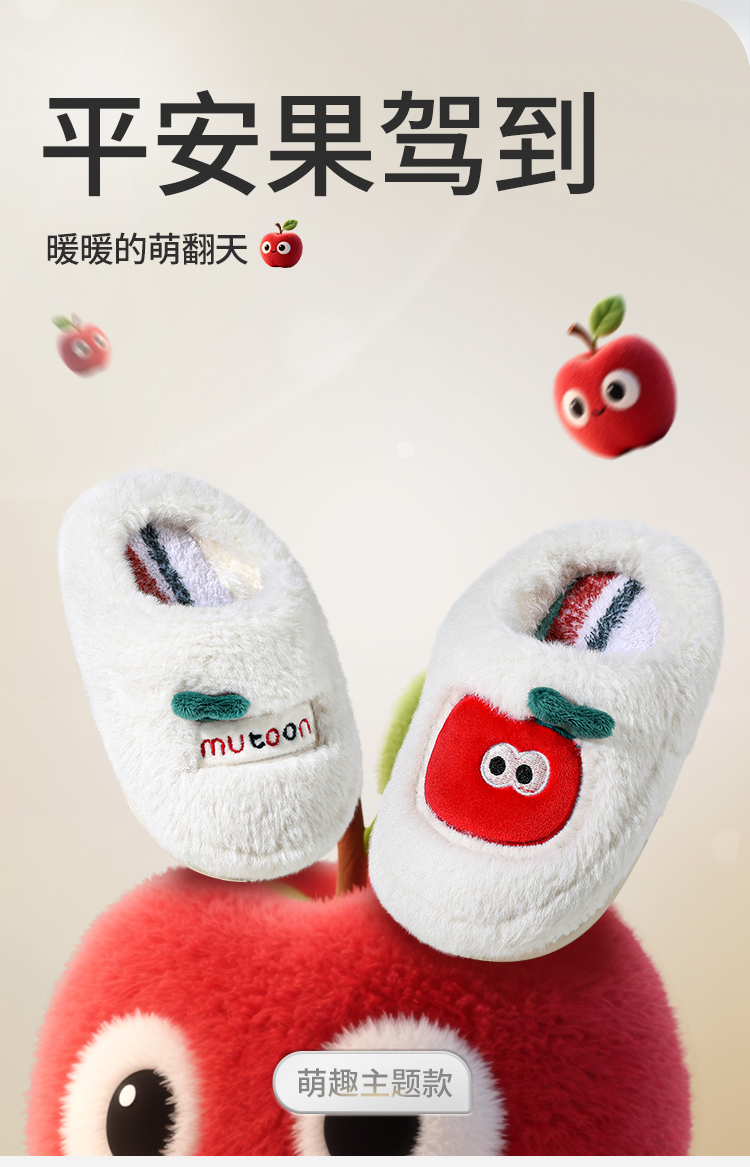 牧童宝宝拖鞋女宝冬季新款小朋友苹果毛毛棉拖鞋加绒保暖室内鞋男