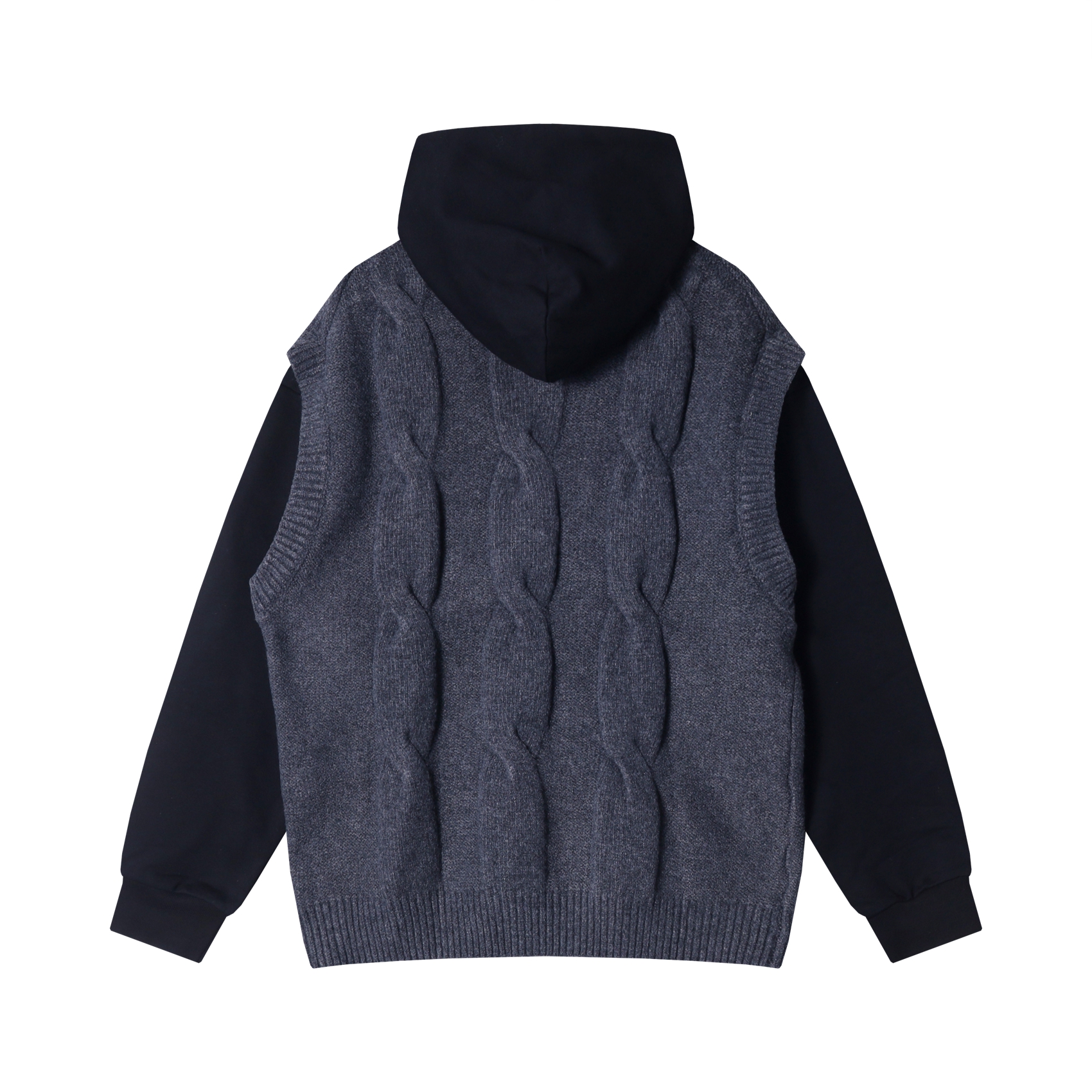 秋冬季新款时尚韩版撞色假两件连帽卫衣V领马甲男女同款百搭潮流