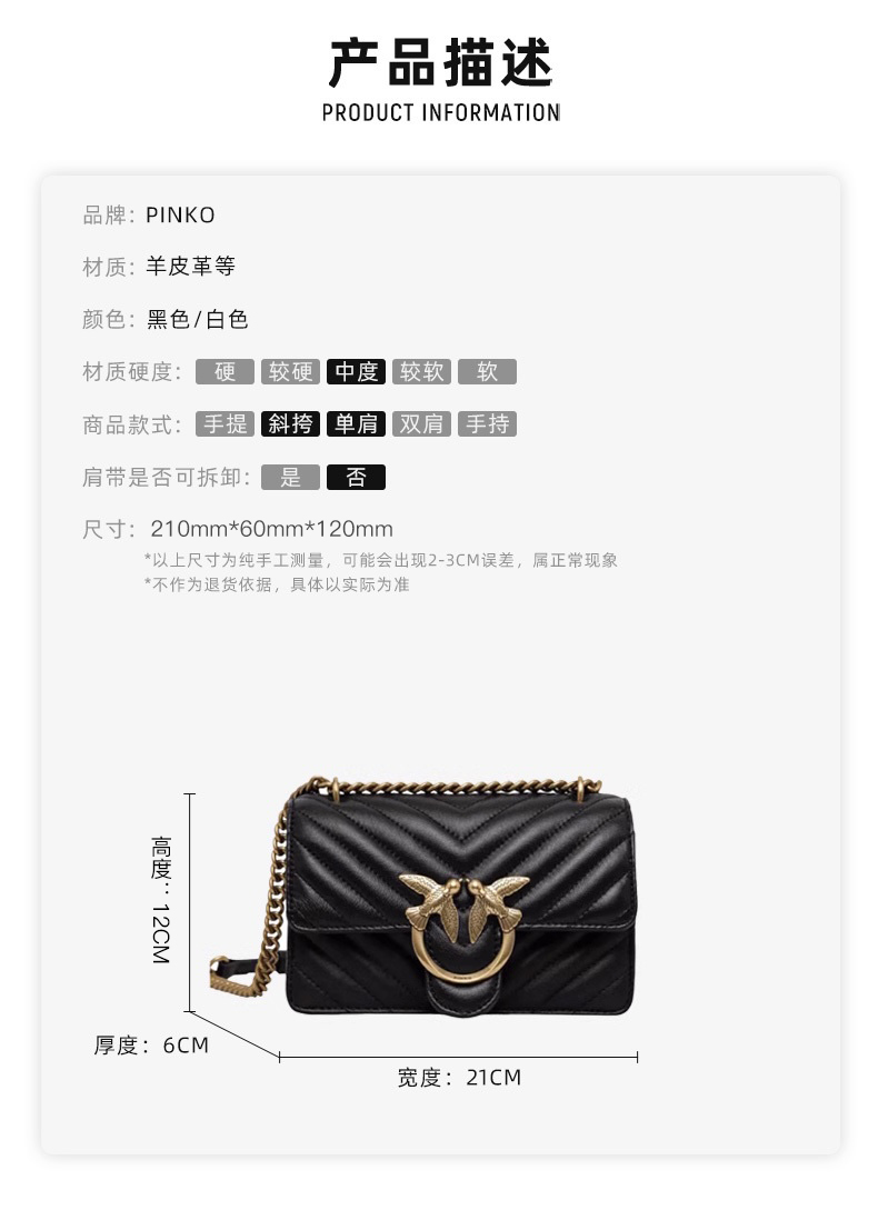 PINKO女包斜纹斜挎手提飞鸟包 PINKO036轻奢小众高级感通勤包