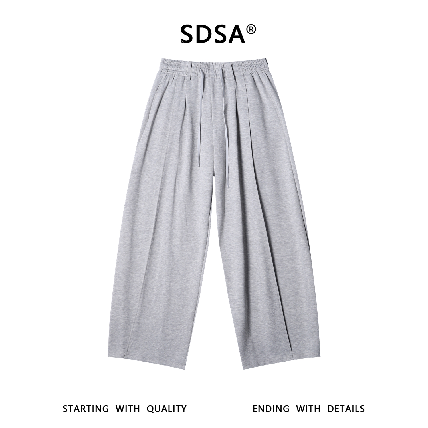 SDSA男装2026新款高贵轻奢简约纯色褶皱抽绳松紧休闲裤百搭简约