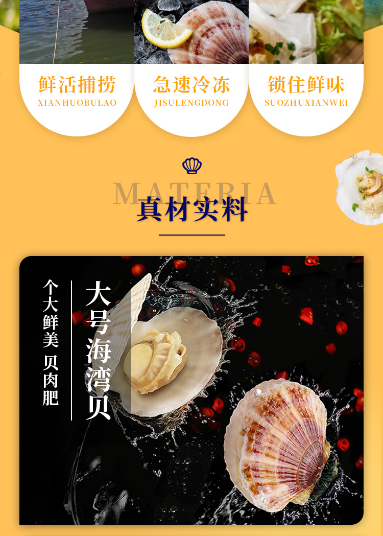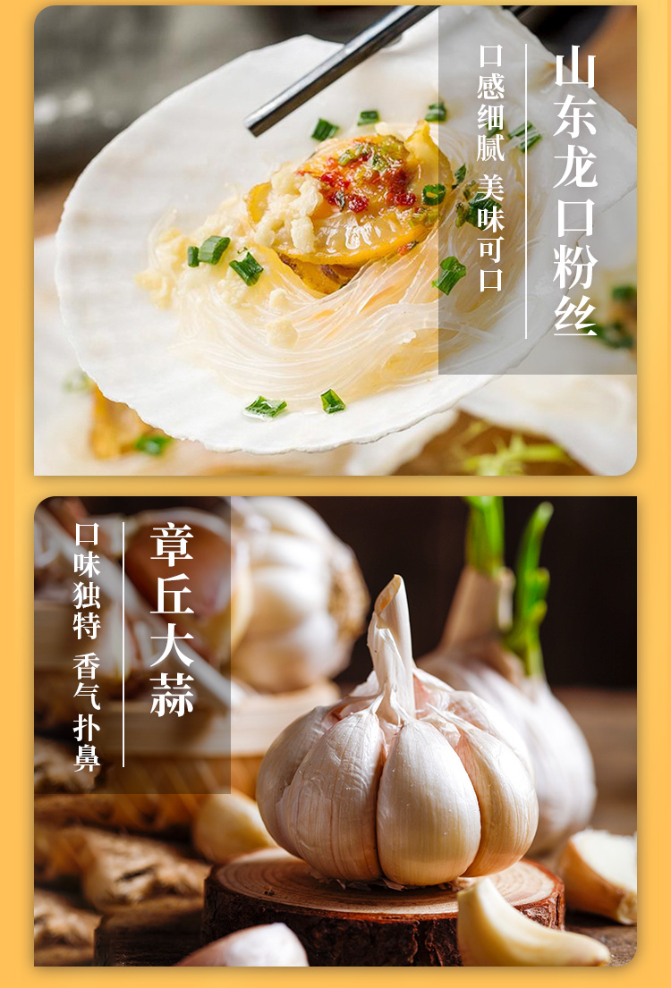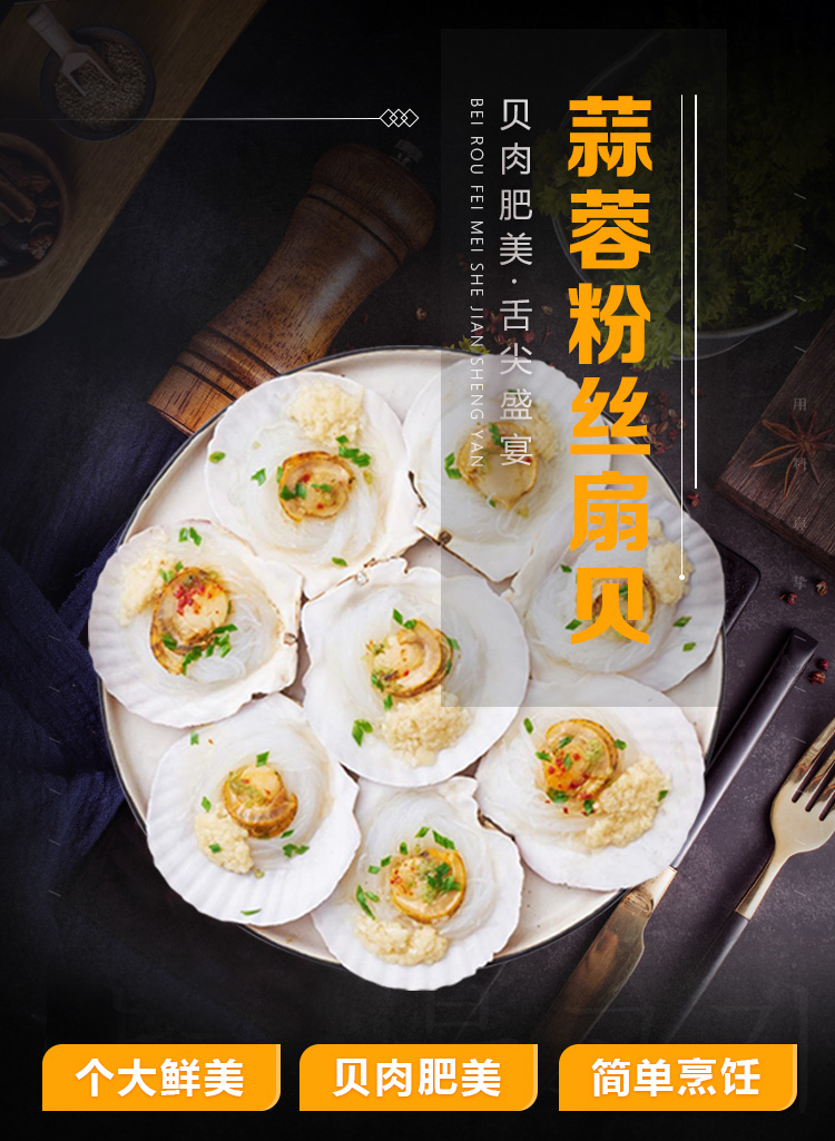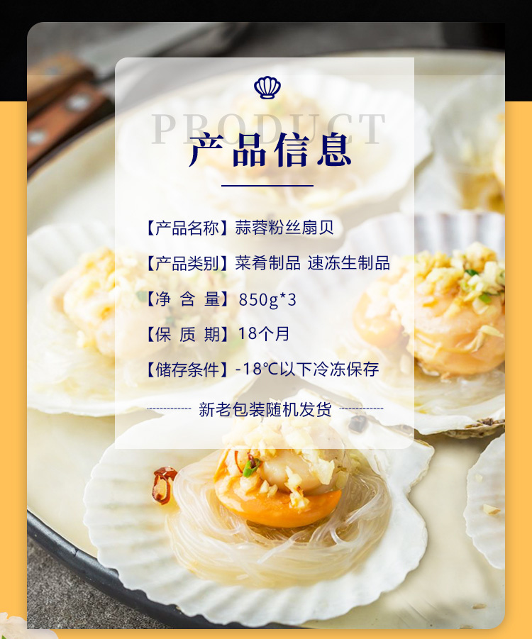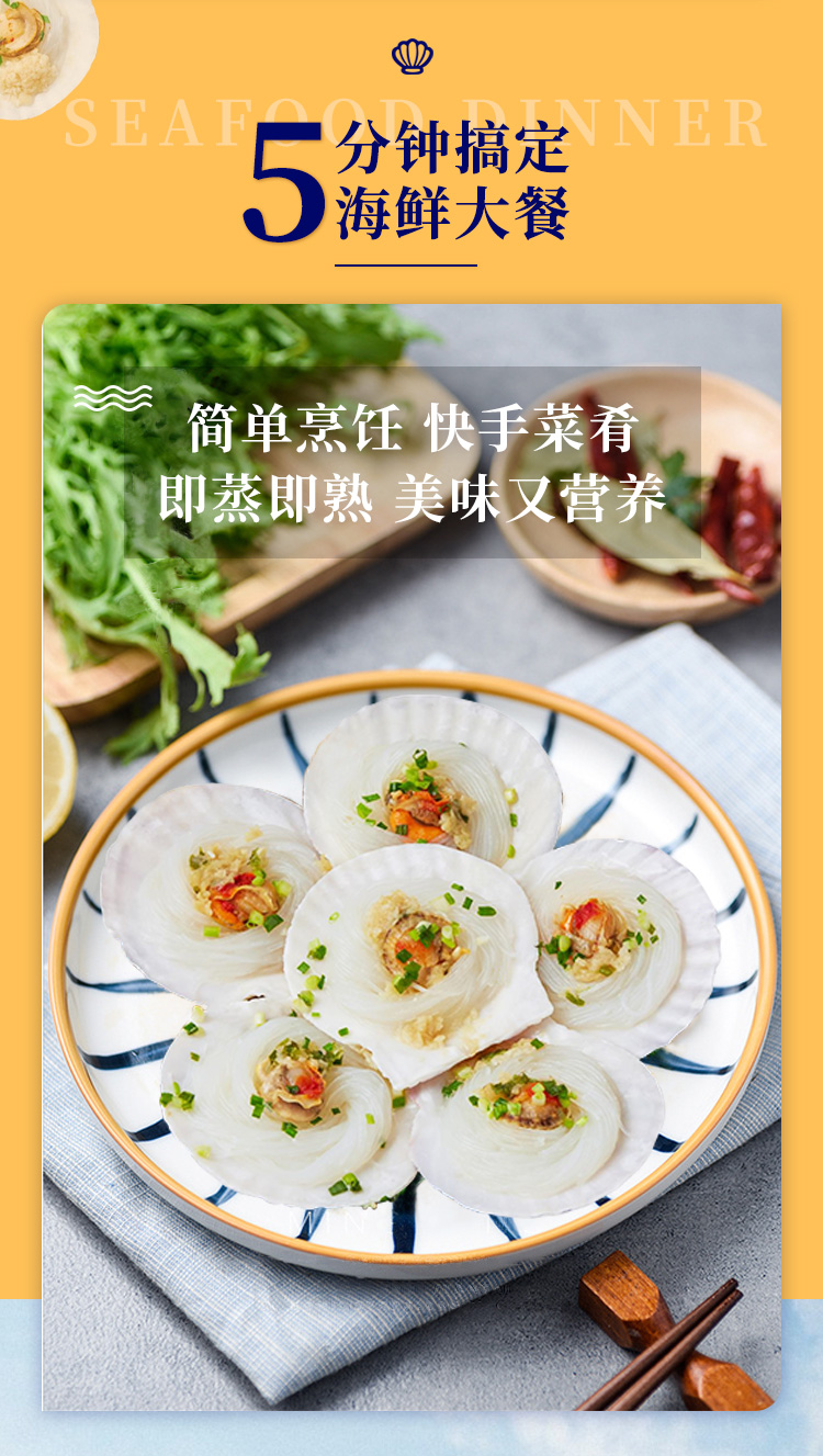 【正洋】蒜蓉粉丝扇贝(20粒*3袋)带黄去胃无沙扇贝 清蒸烧烤都很爱