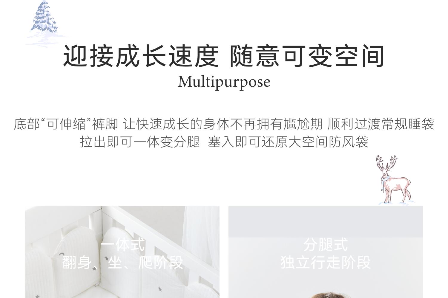 DOMIAMIA暖感一体厚夹棉睡袋恒温婴幼儿秋冬季保暖睡袋睡衣防踢被