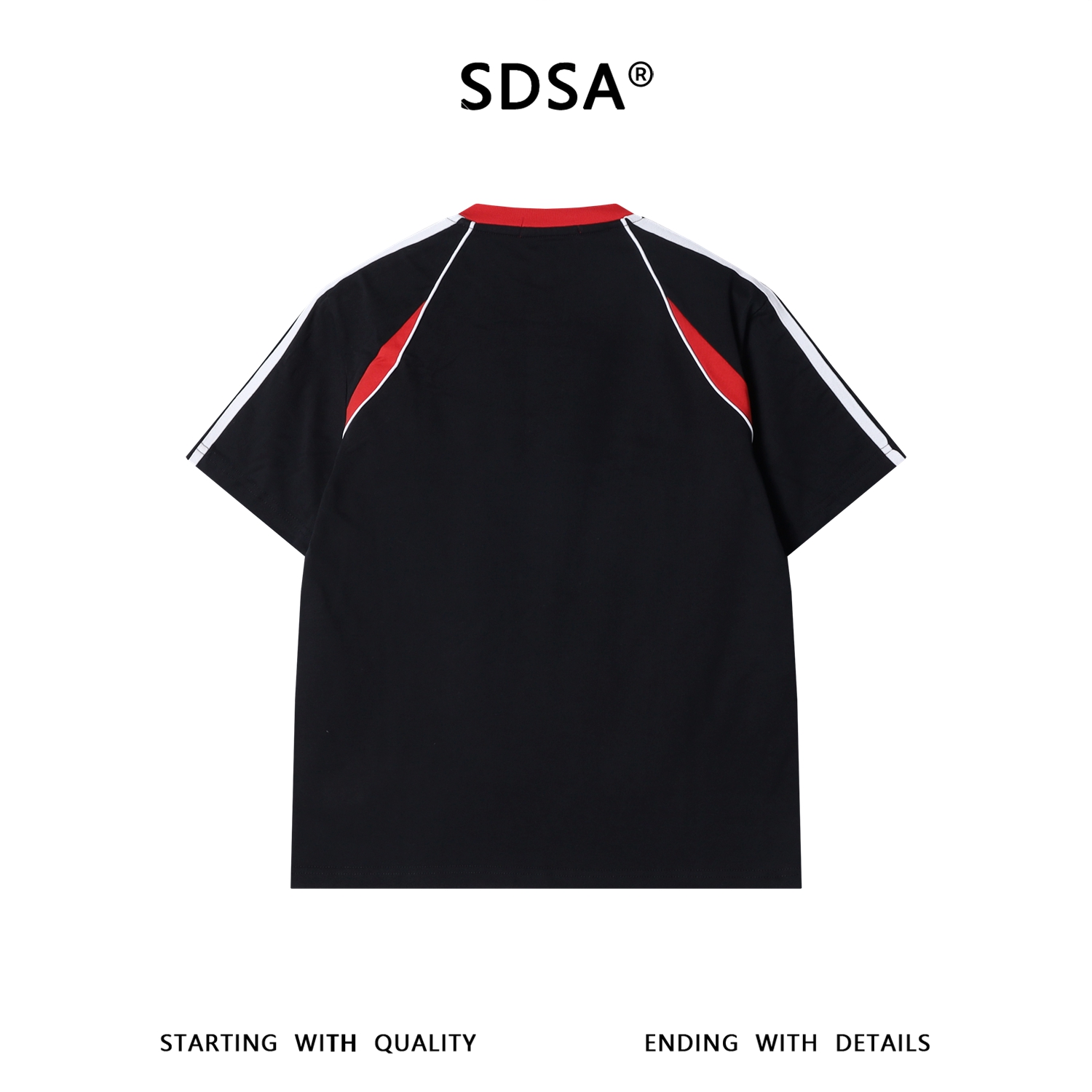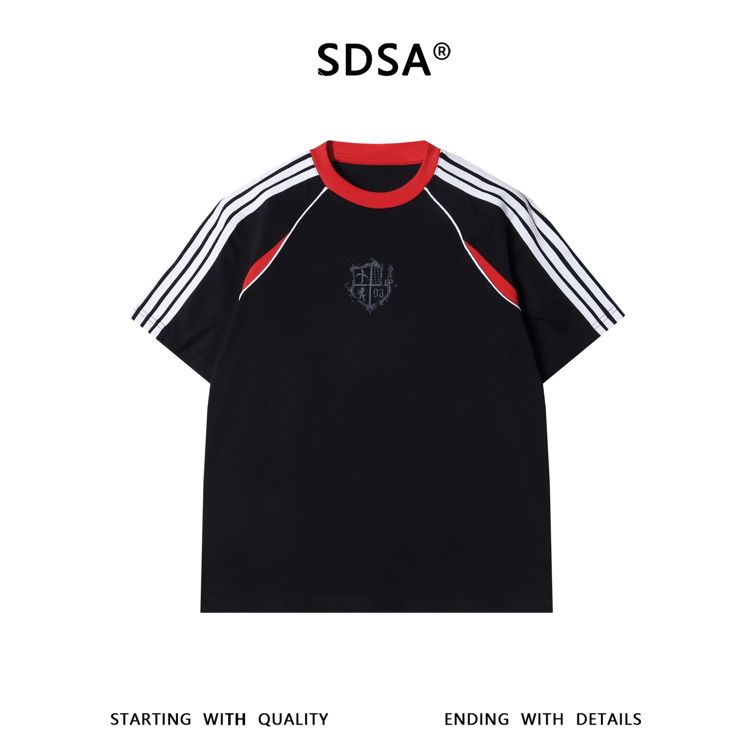 SDSA男装2026新款高贵轻奢复古宽松拼接条纹印花圆领短袖T恤百搭