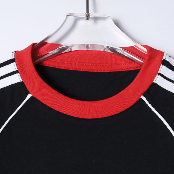 T3969夏季高级感新款男士美式撞色纽扣圆领短袖T恤假两件百搭休闲上衣