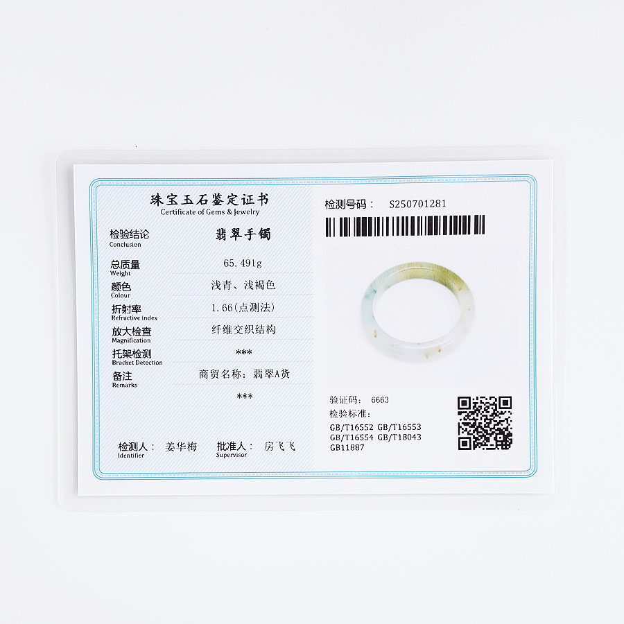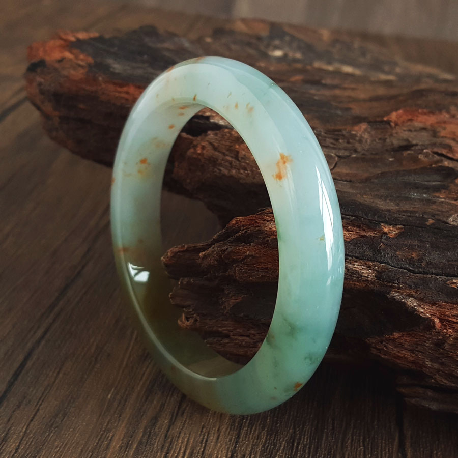 名称 | 天然收藏级细腻无纹裂老坑糯冰种黄翡58号飘蓝花洒金翡翠手镯 |