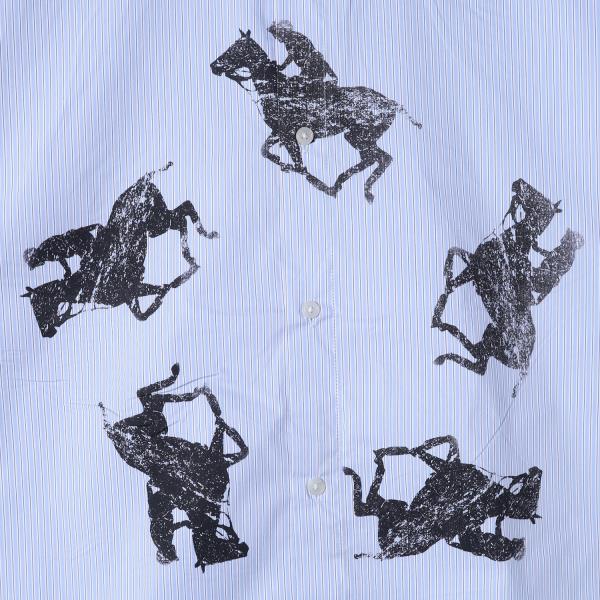 SDSA男装2026新款高贵轻奢潮牌骑马印花条纹短袖衬衫百搭宽松上衣