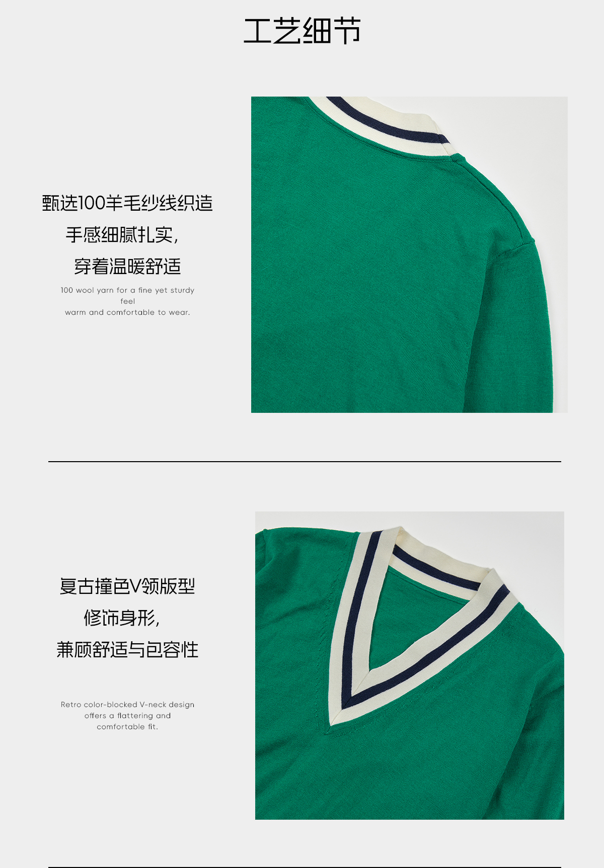 ROMI STUDIO“简约复古”100%羊毛密织亲肤V领套头毛衫 RWDSS61795