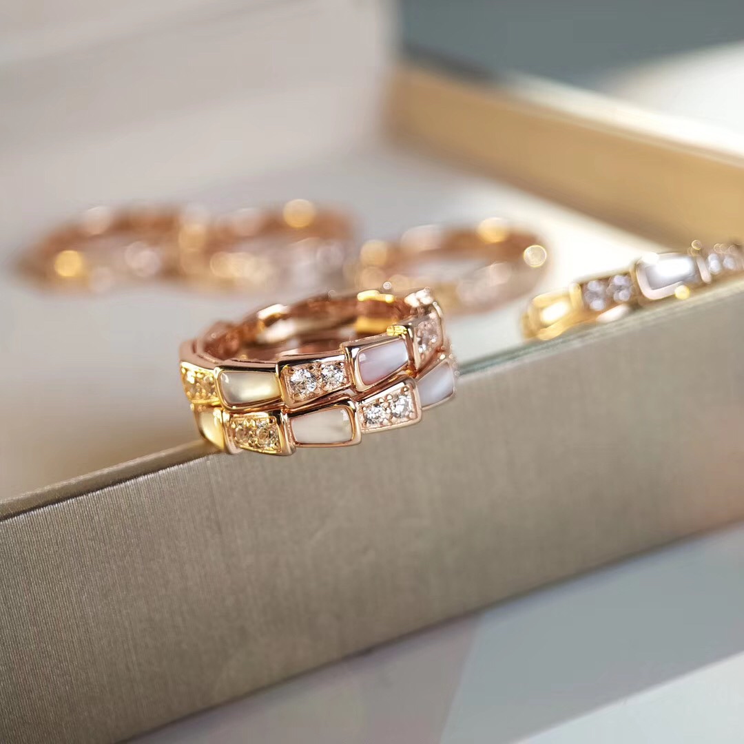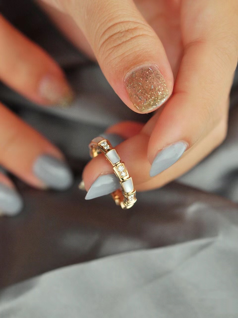 BV蛇骨戒指,我拍这组图的时候,没开一盏灯!完全是太阳光照射,最大程度还原本色,如果开灯颜色会更深更亮一些。经典的蛇骨戒指,不下20个代理来问了,其实是真的很难做,开发成本太高了!我搜了一下朋友圈,这石头贴合一言难尽,鼓鼓囊囊的缝隙超大真心没有美感。我们开发了半年,大家看一下图,我们完全做出了金货的质感,如果是真金骨关节还可以更锋利一些,但是纯银做到如此只能说难以再超越!贝母是深海白叠贝,由内而外散发出光泽感,切割用精刀切,最困难的一部,因为越小破损率越高,越难以切割,还需要手工打磨,师傅磨的心塞费时又费力,珠宝很少用这么迷你的贝母,看我发的图片吧绝对已经完美贴合金属部分「大家切记不要沾水」。平滑的石头视觉效果达到和ZP一致!手镶2颗钻石和贝母的结合,窄版更秀气一些,显指长哦!bV的设计就是很女神很美丽,材质通体V金镀厚金1咪,配天然白贝母和进口晶钻
