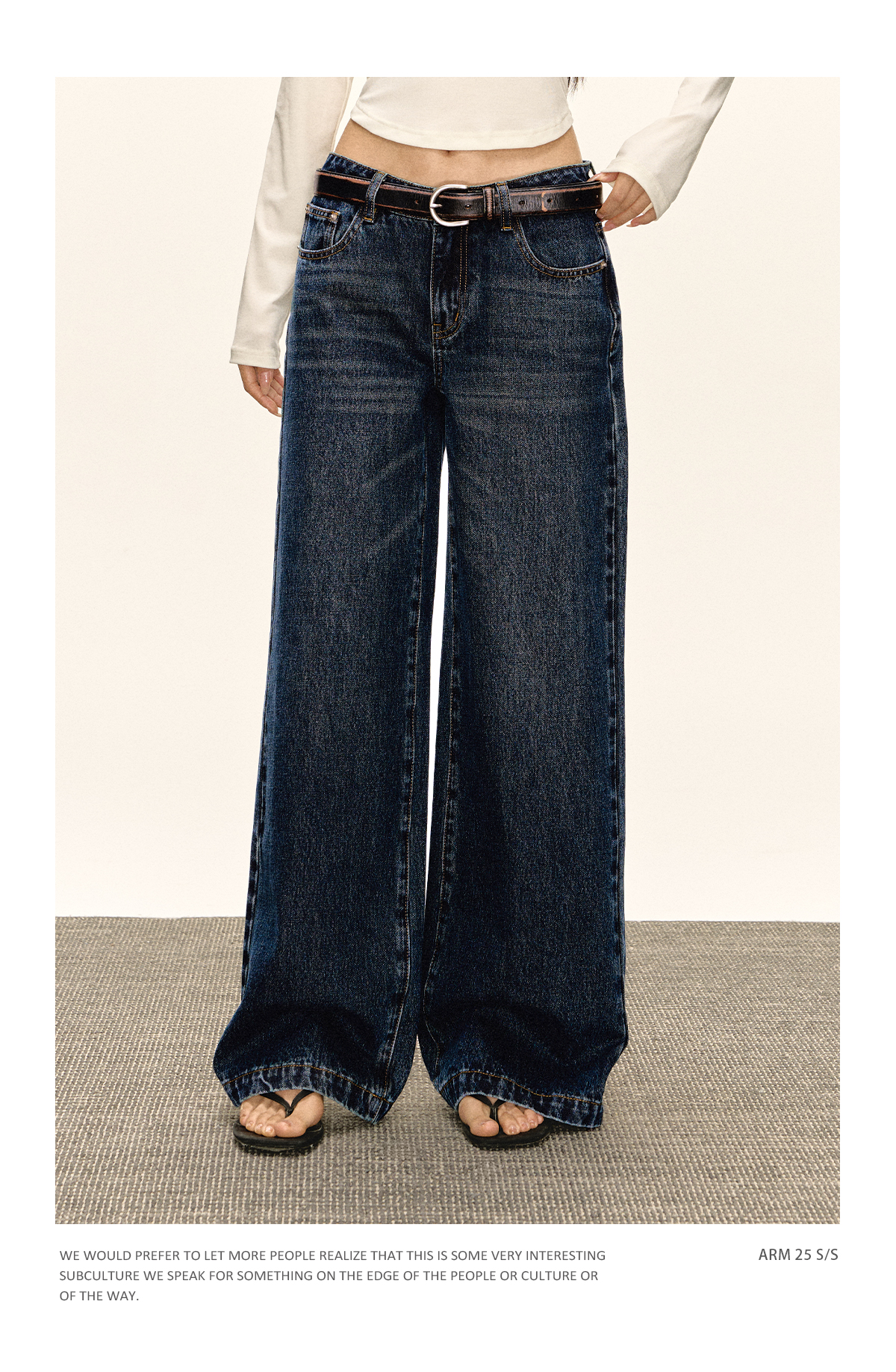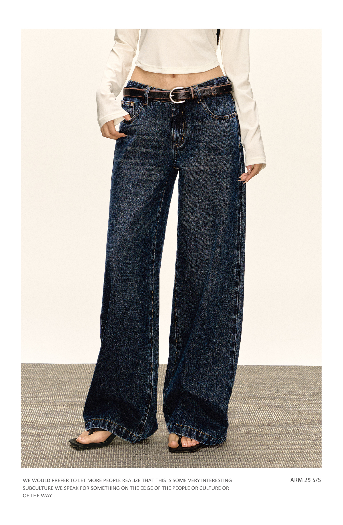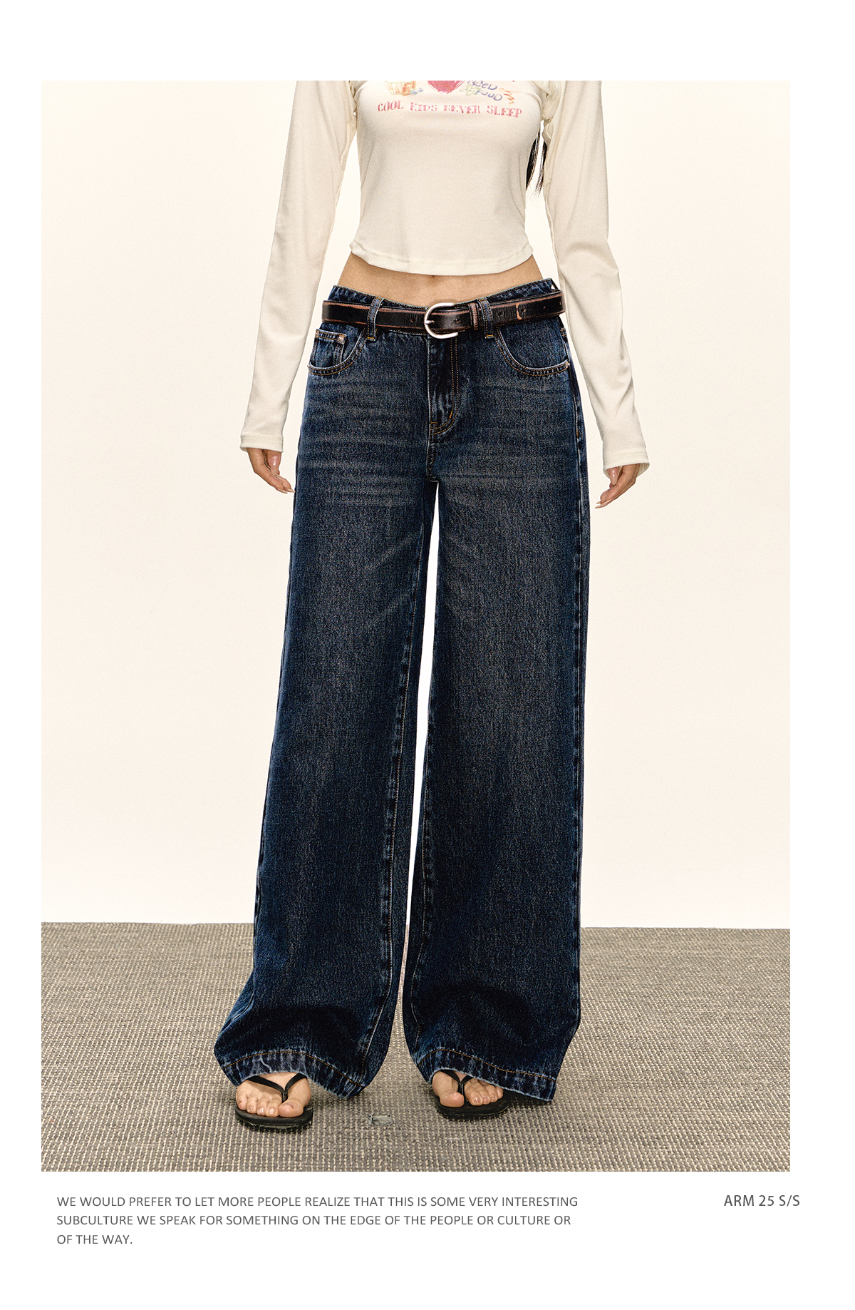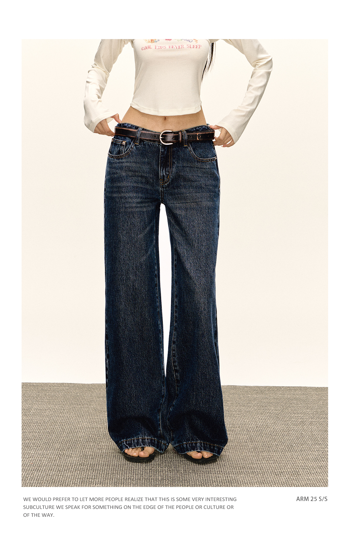 Ariseism 美式复古牛仔裤女秋季新款宽松阔腿长裤子