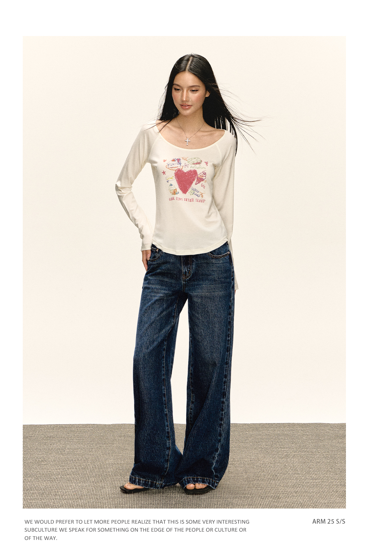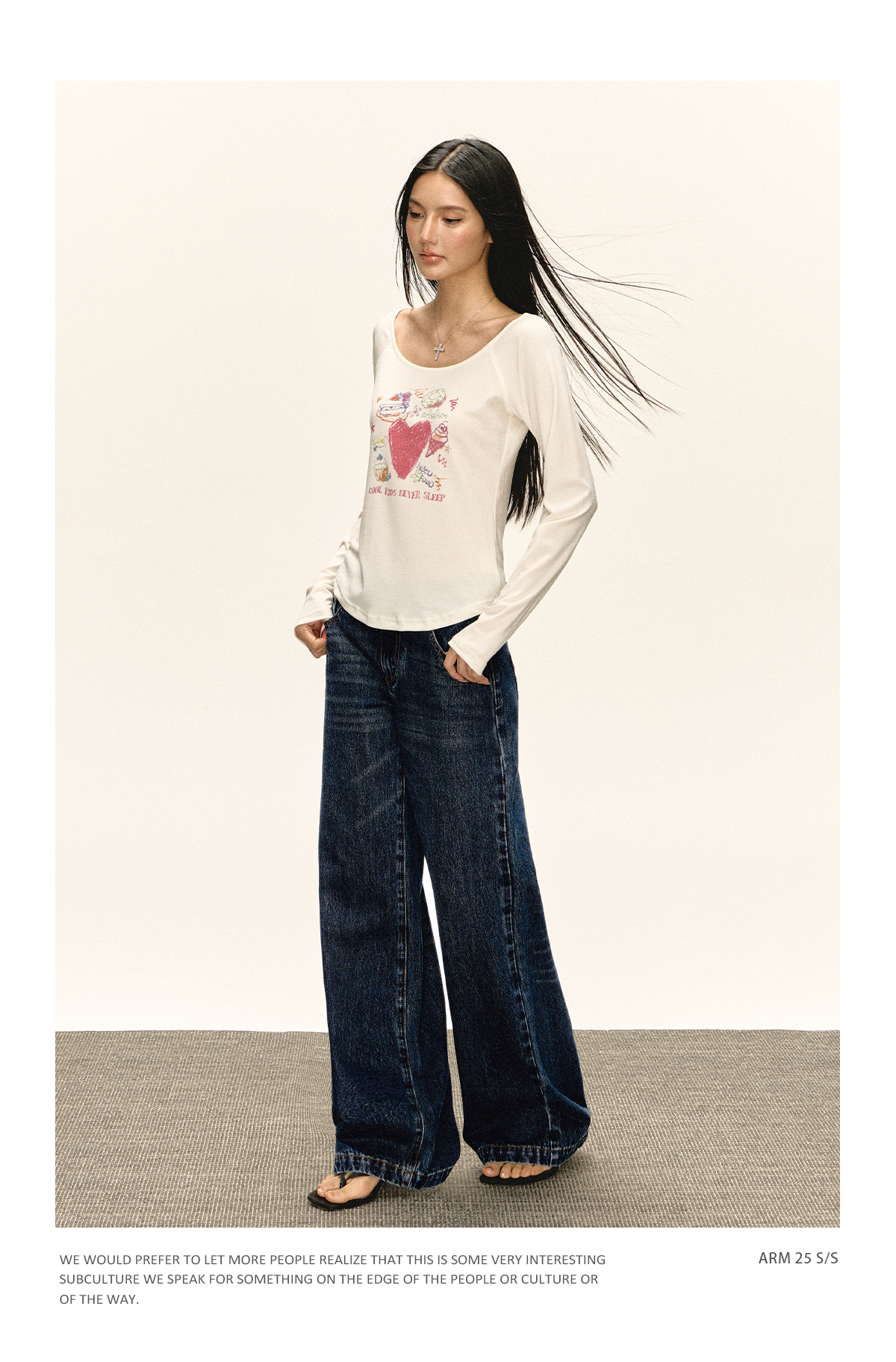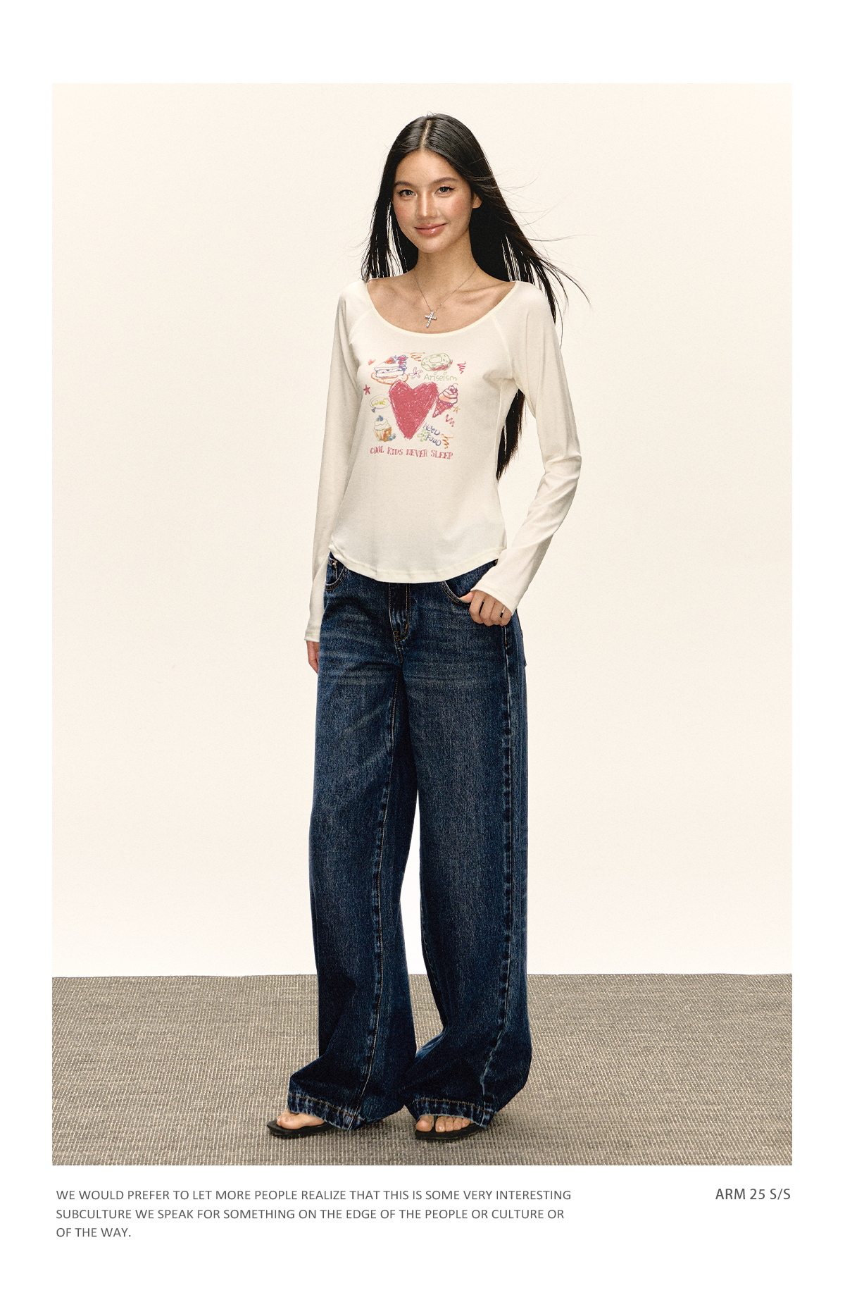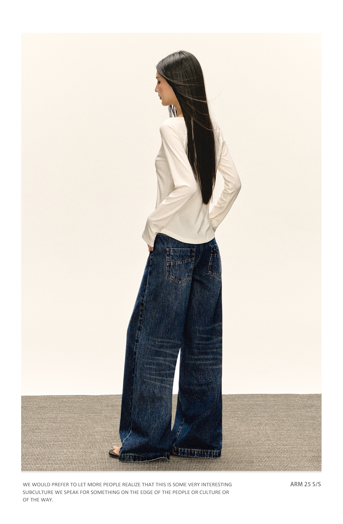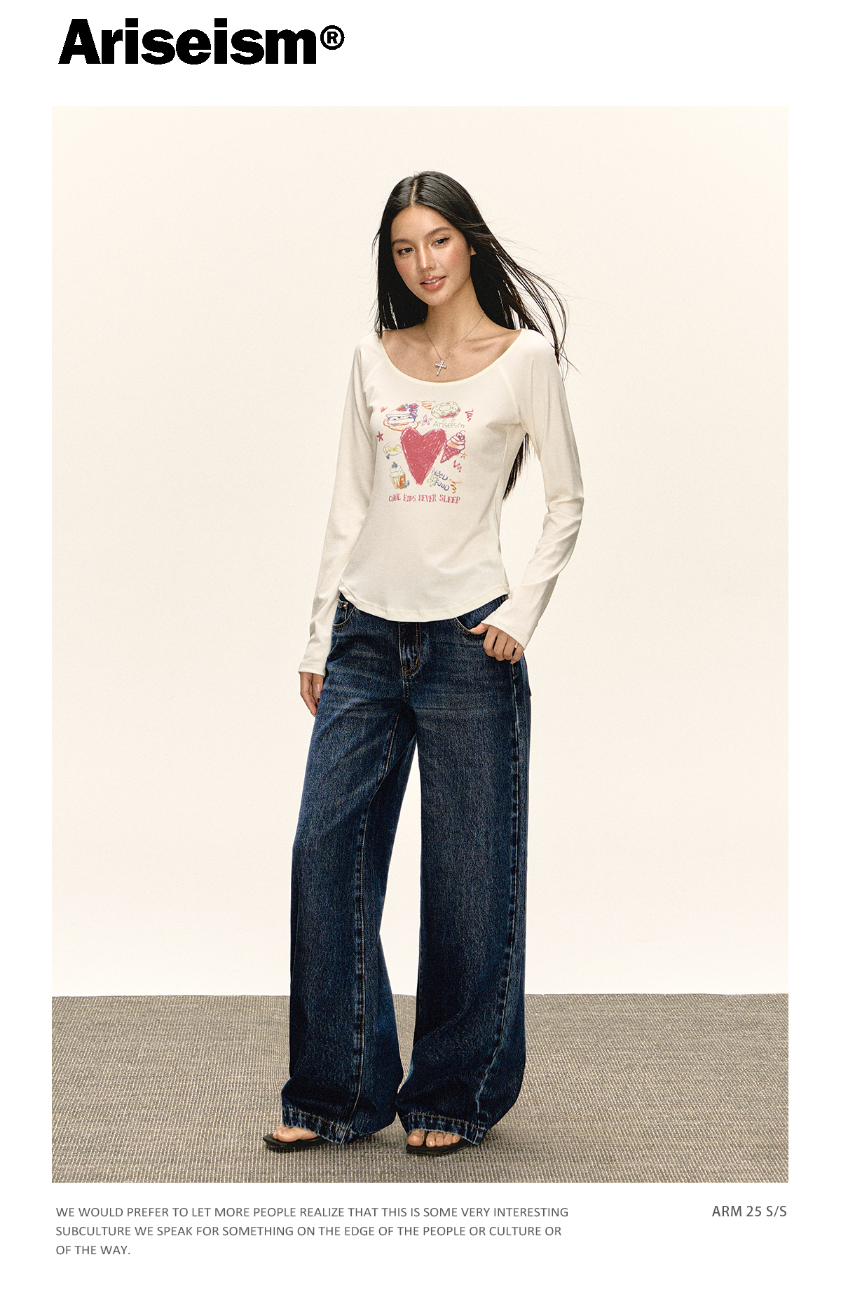 Ariseism 美式复古牛仔裤女秋季新款宽松阔腿长裤子