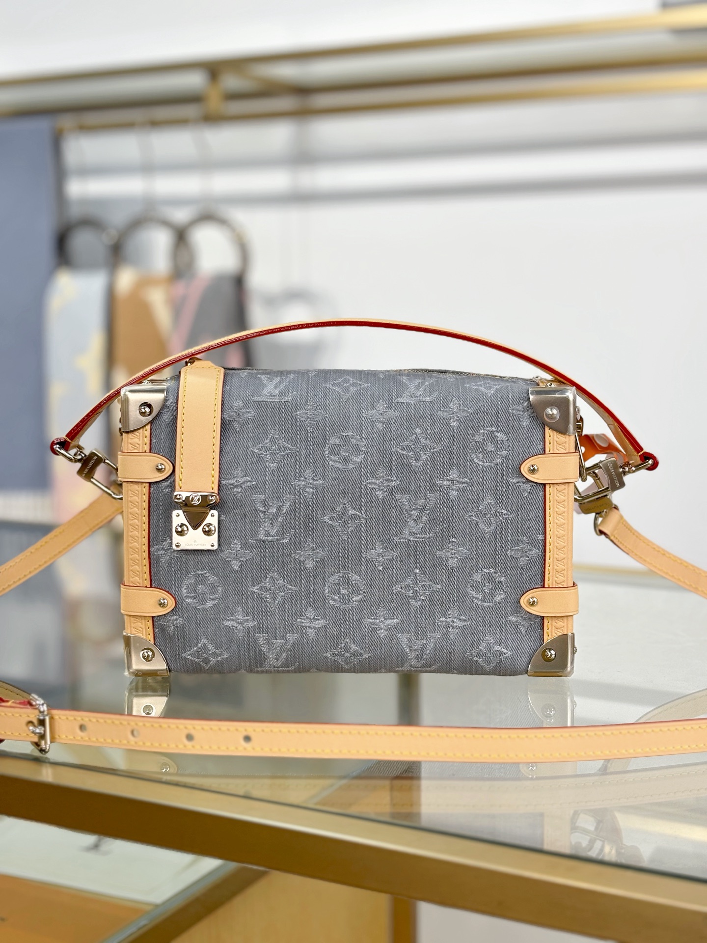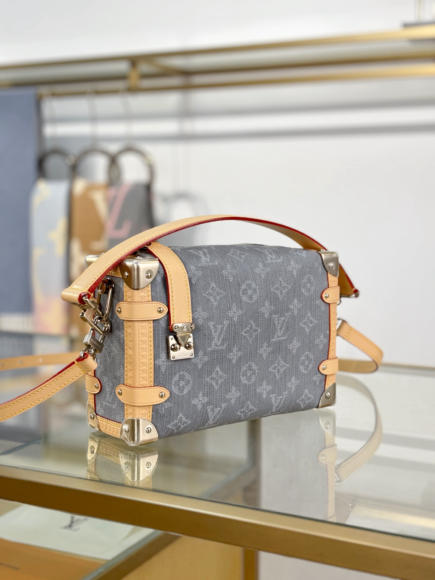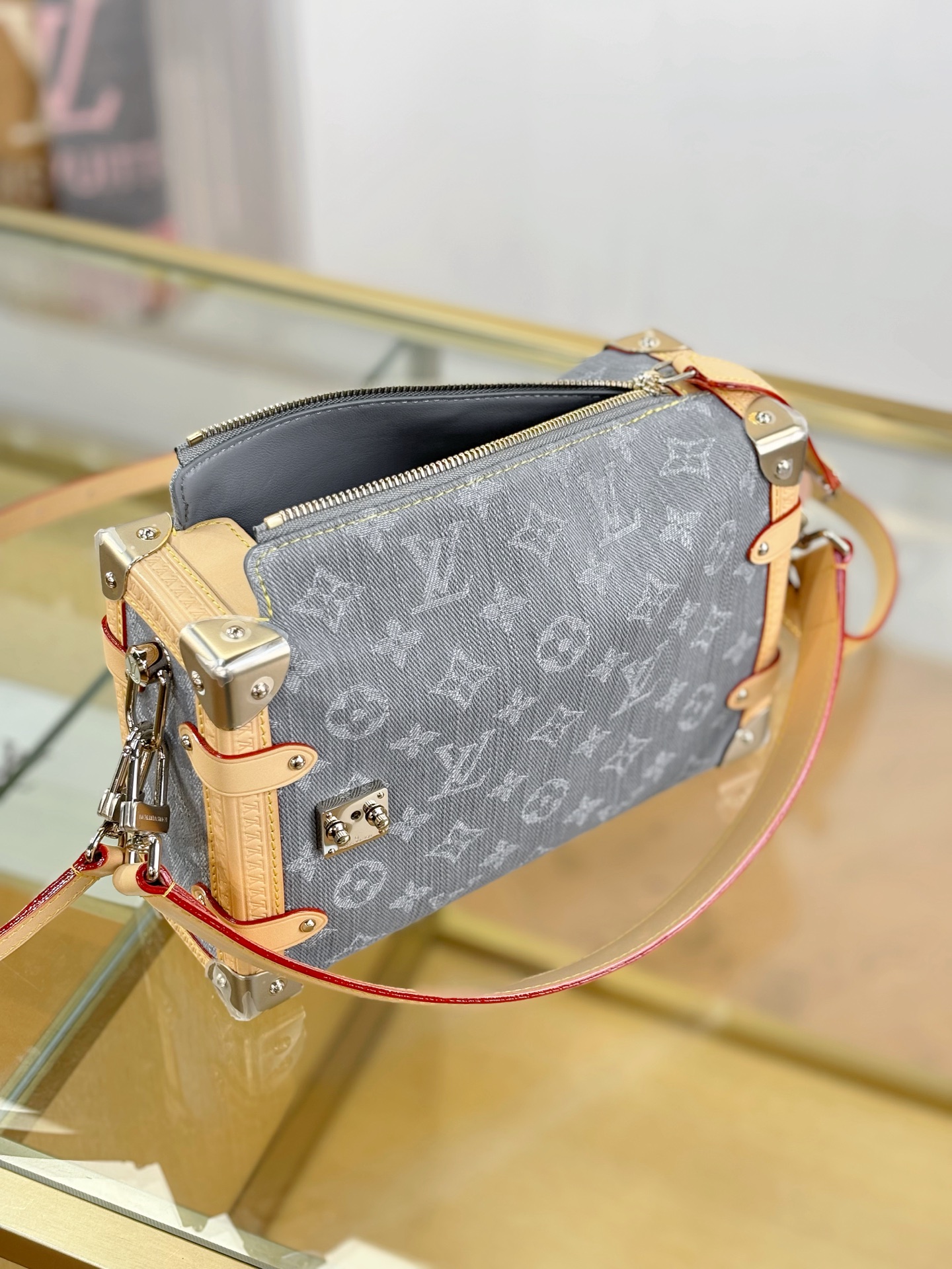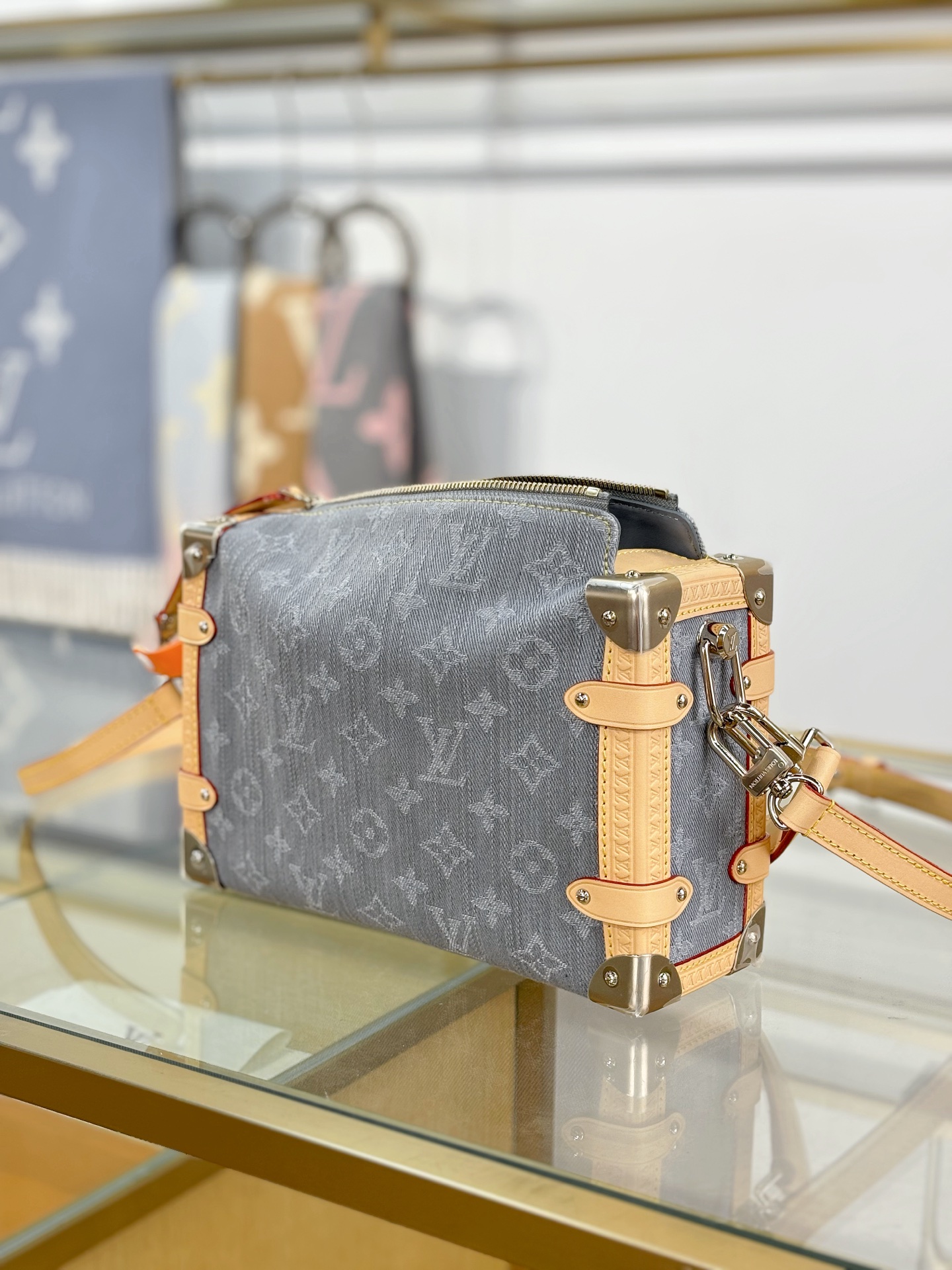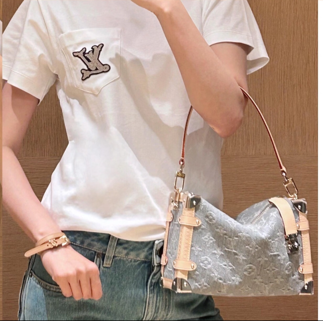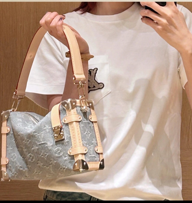 驴家LV SIDETRUNK灰丹宁金属件 S-lock锁扣棉斜挎单肩手提包 中号(JPH)