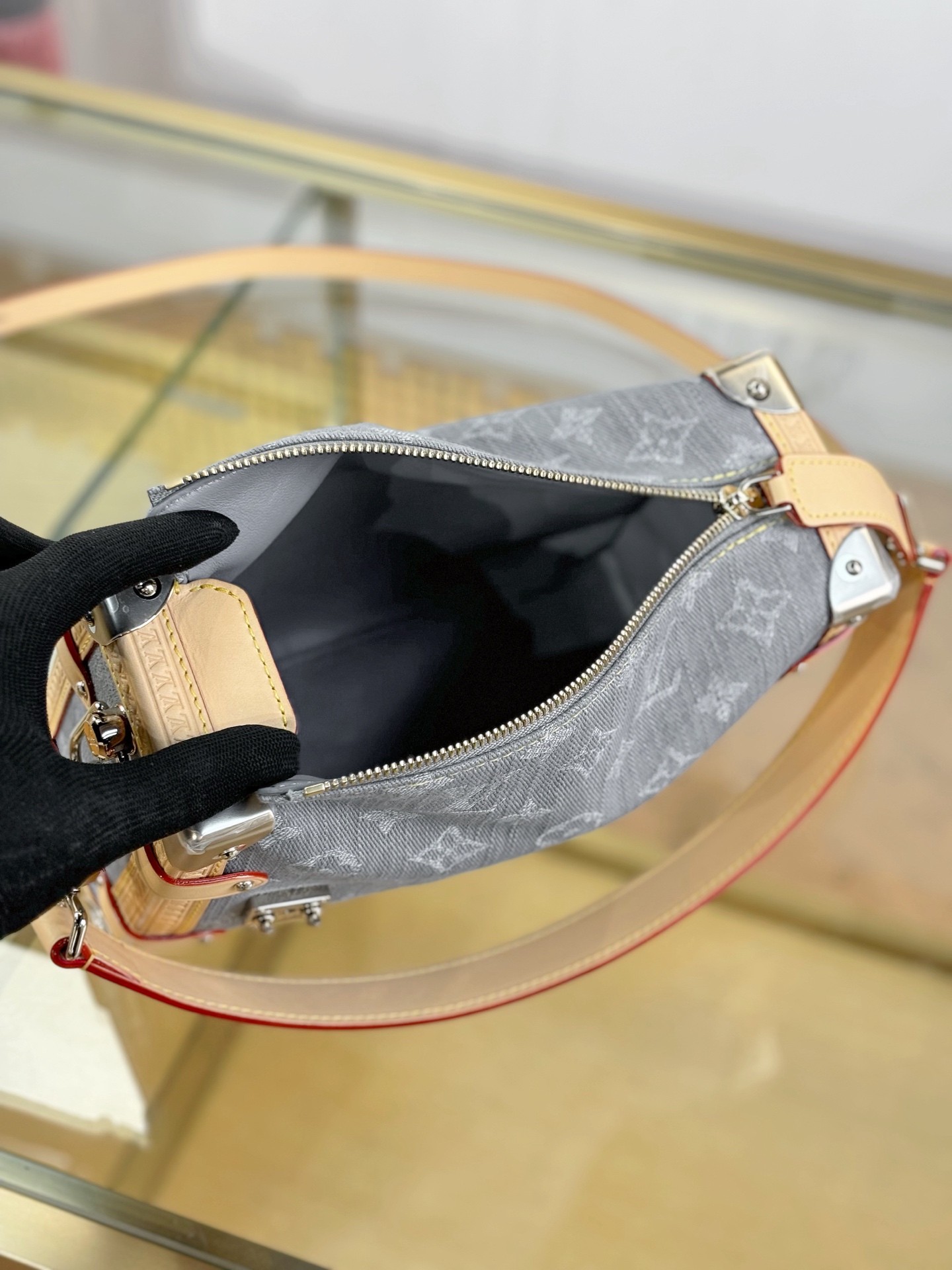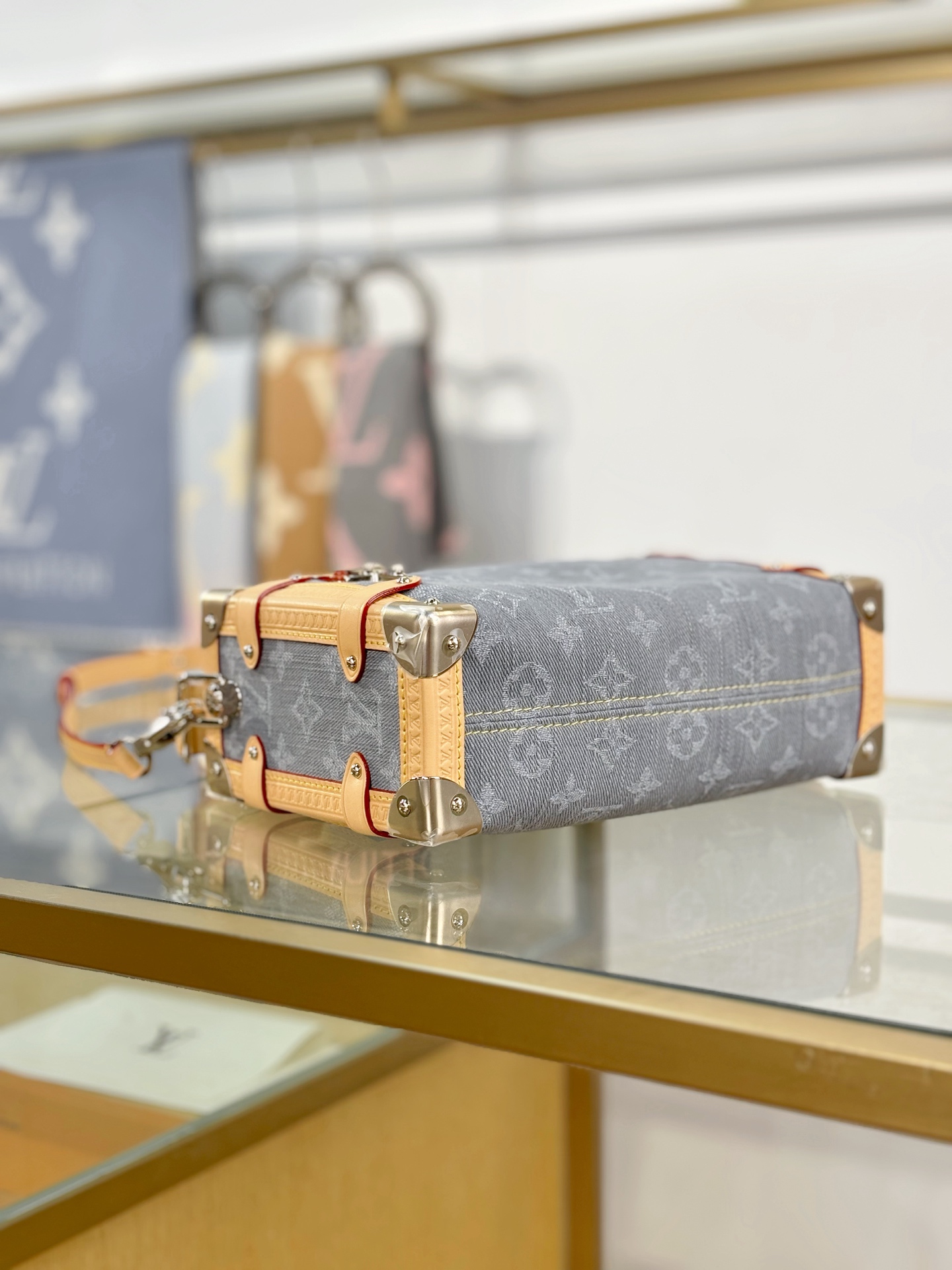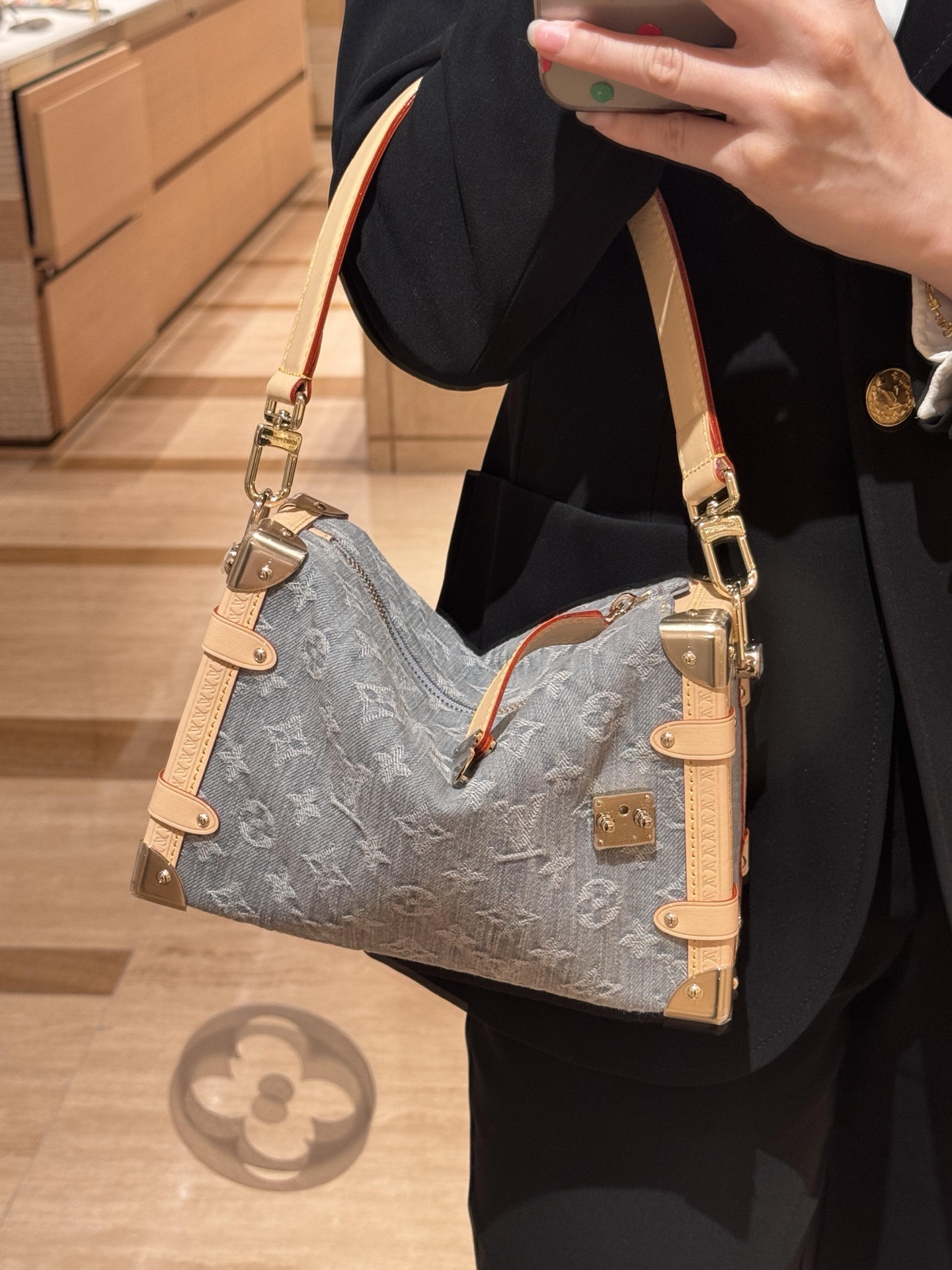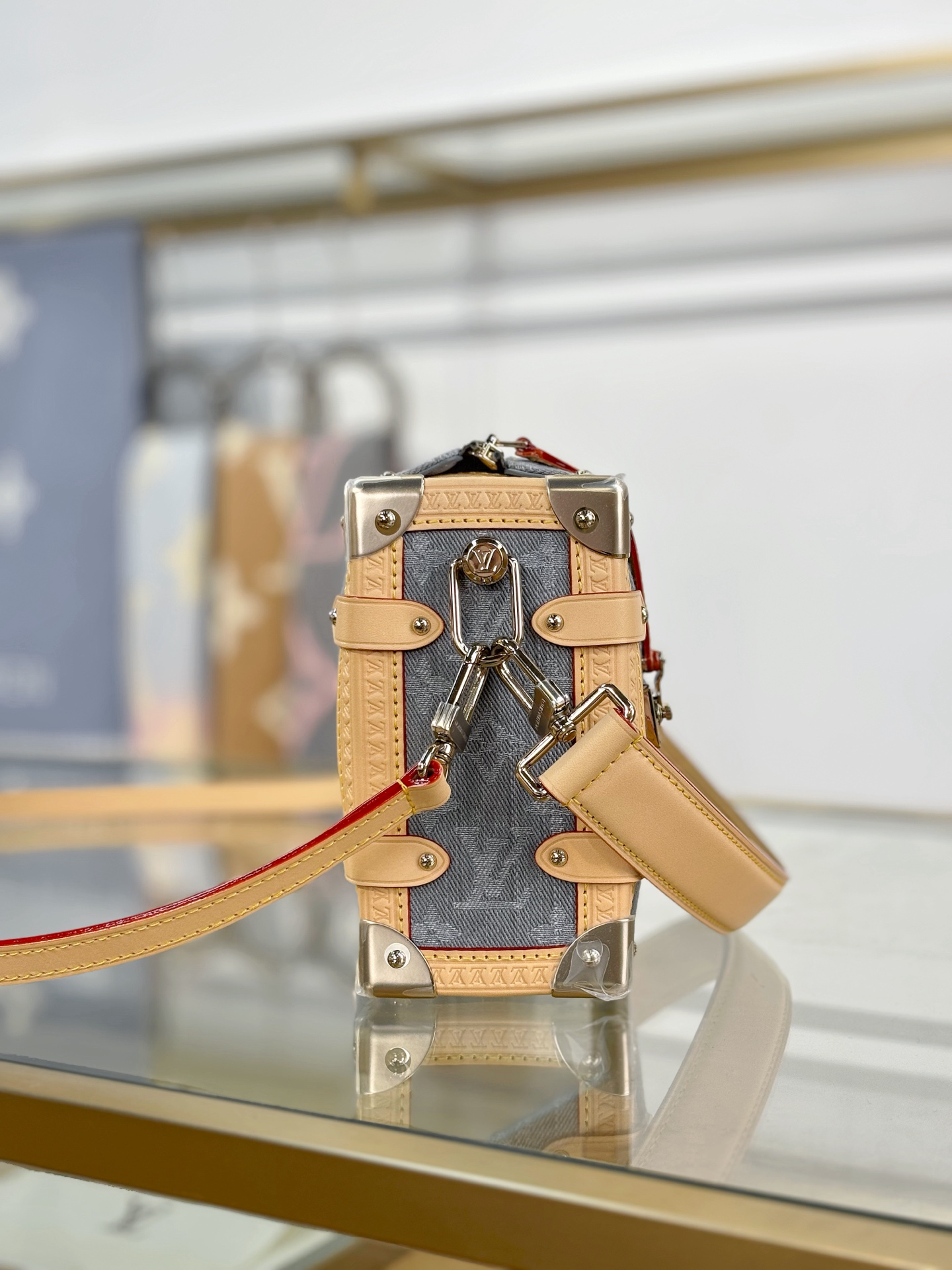 驴家LV SIDETRUNK灰丹宁金属件 S-lock锁扣棉斜挎单肩手提包 中号(JPH)