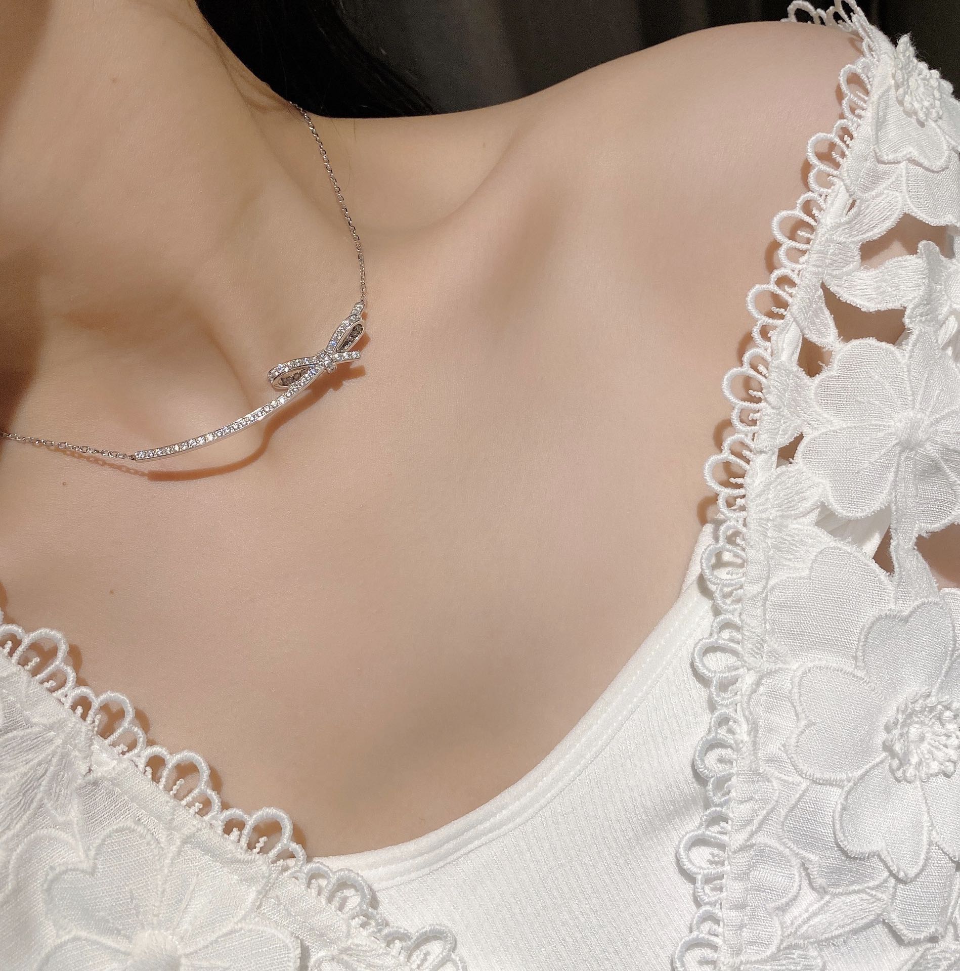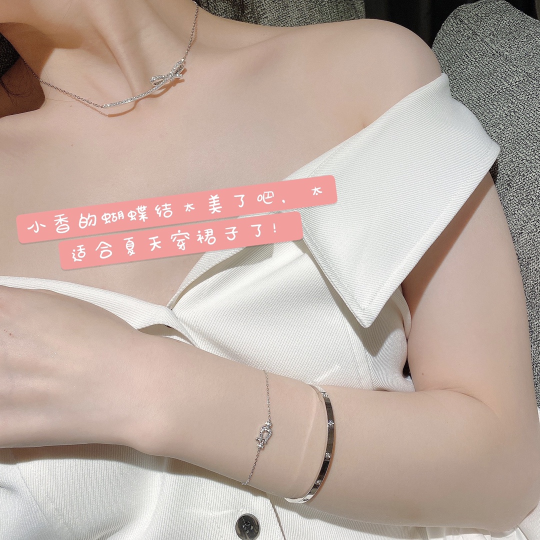 太美了吧,可甜可飒的一款锁骨链香奶奶蝴蝶结项链,这款是香家高级珠宝,也是经典了很多年了,我们纯银电镀18k金原版定制,所有细节都跟足了zp,可以说除了材质我们的版跟zp没有区别。这个版起版要求很高,整个弧度和蝴蝶结的立体造型都要拿捏的刚刚好,所以我们重新更新了版,钻都是一级硅钛料,火彩和净面都没得说了,手镶不经过高温会更闪!不担心掉钻!链子和扣子也进行了升级,切面很多,佩戴在锁骨每个角度都在发光背面每一个凹槽都打磨到位,所以佩戴是很舒适的,戴高级的项链自己心情也会好很多哦!