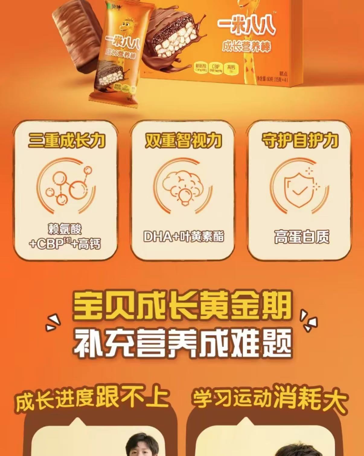 蒙牛一米八八成长营养棒高钙高蛋白DHA青少年儿童休闲零食