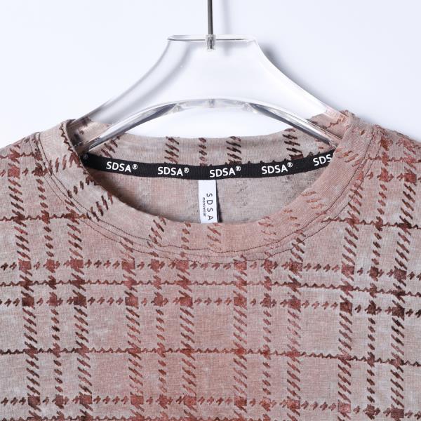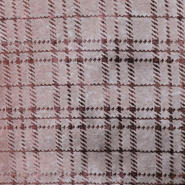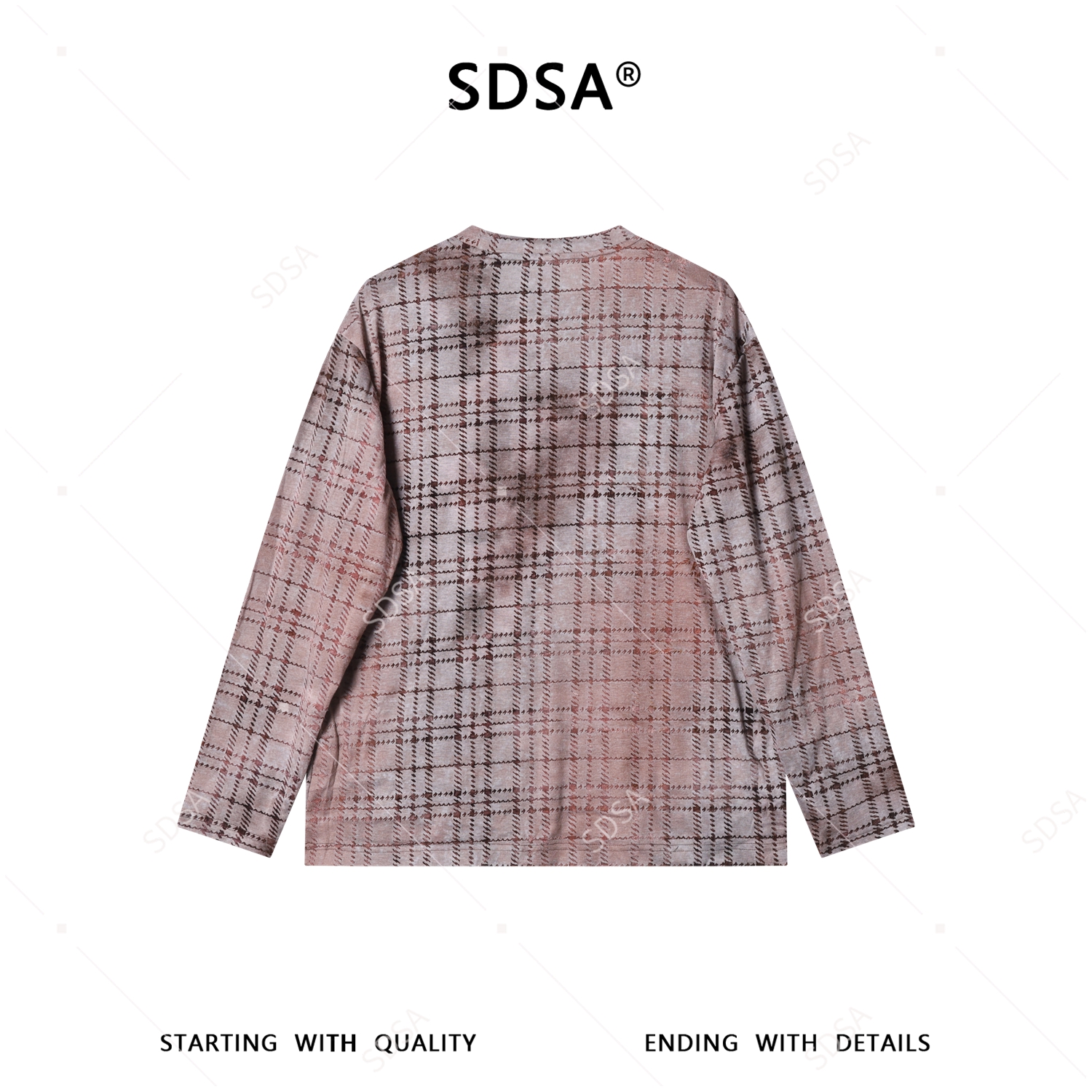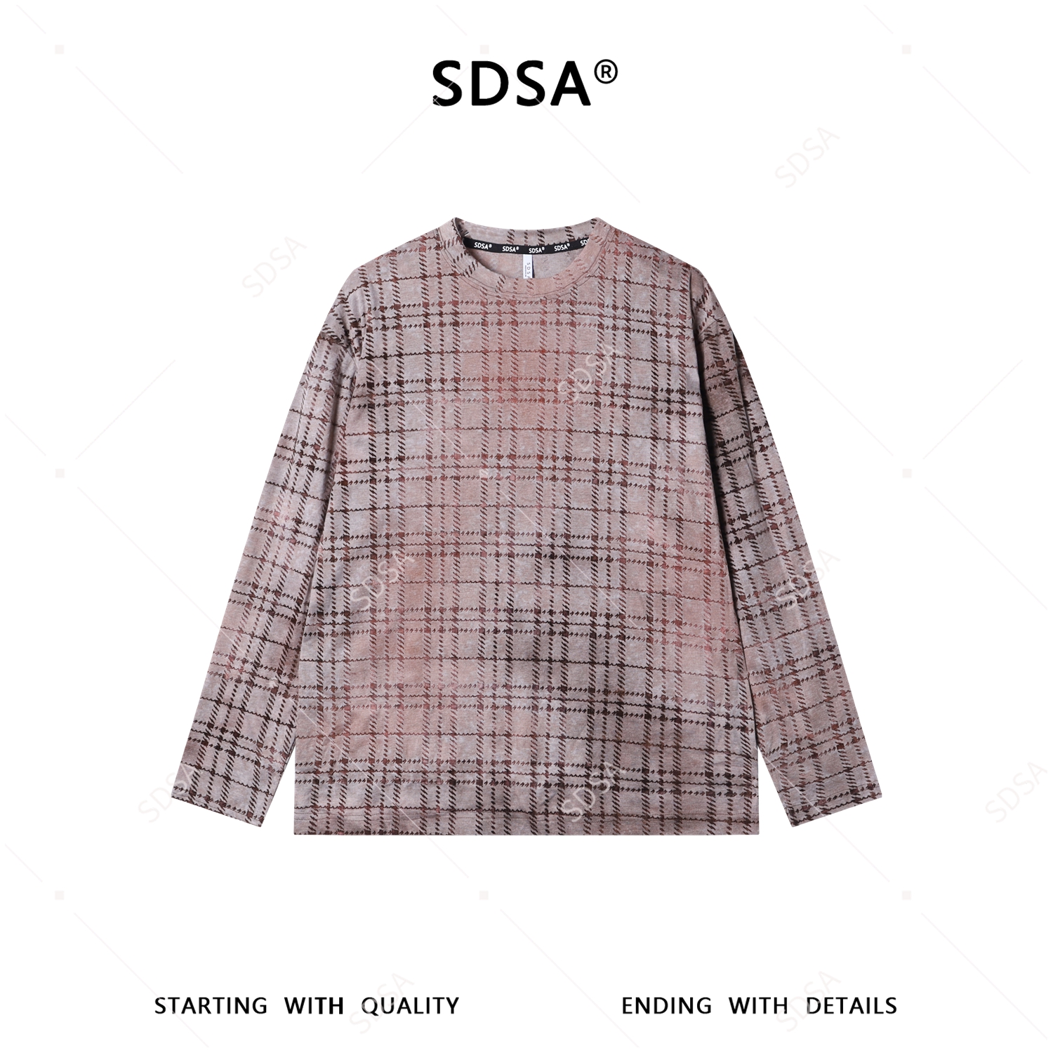 26T86SDSA男装2026新款复古格纹圆领长袖T恤做旧粉棕格纹宽松休闲上衣