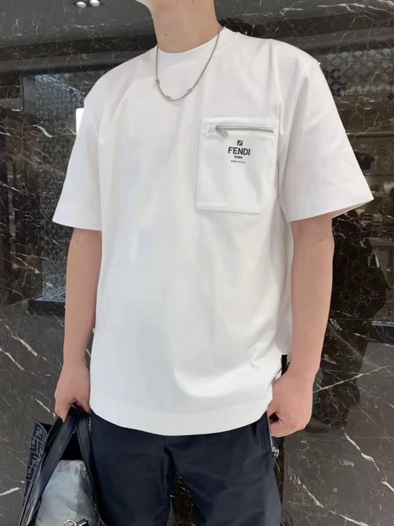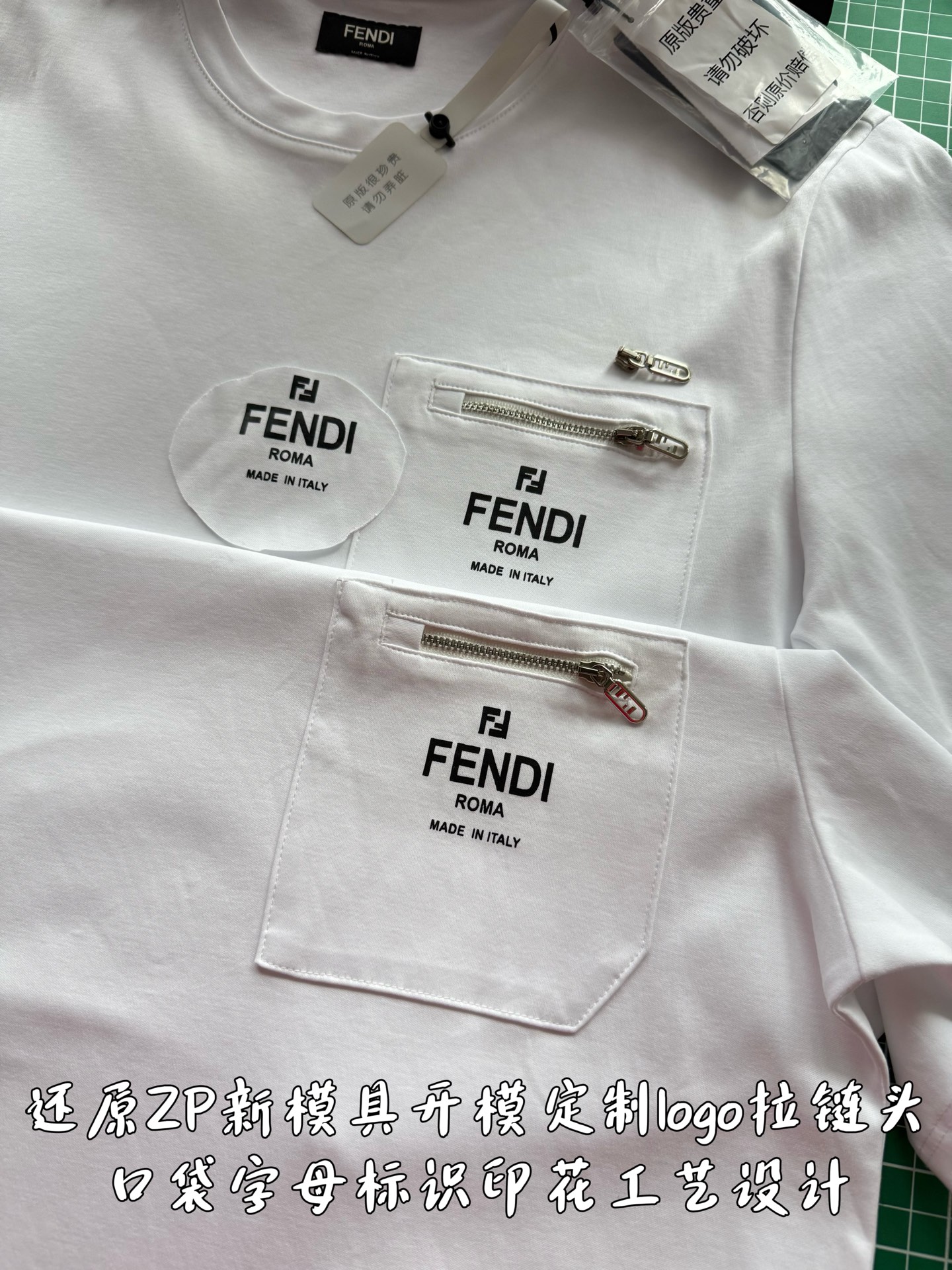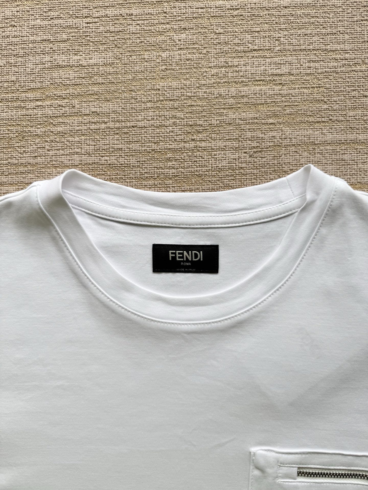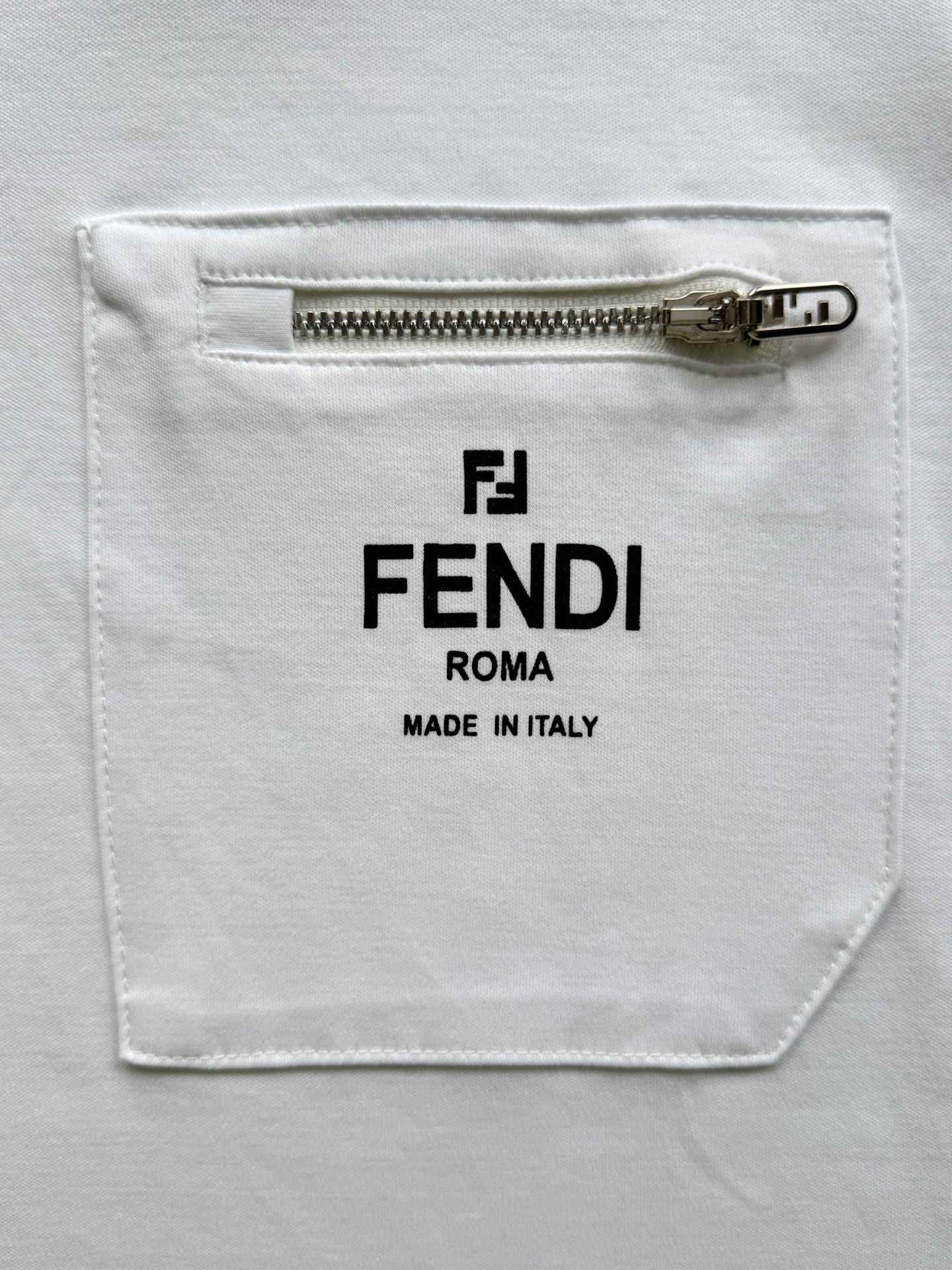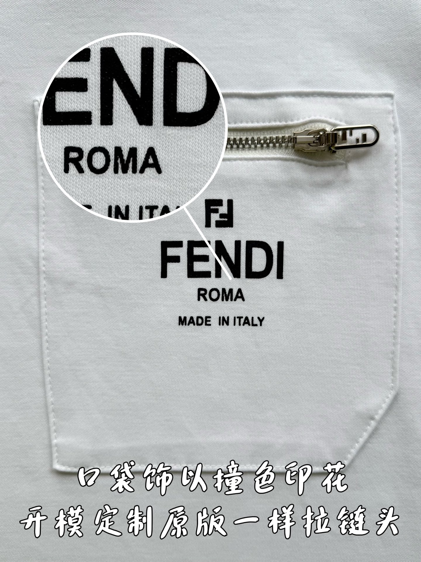 Fendi芬迪25ss胸前拉链口袋印花T恤‼️整件衣服7500购买ZP拆解打造,定制定染白色全棉面料,做到100%全棉进口纱线,胸前拉链口袋设计,饰以撞色字母标识印花,定织标志性罗纹领口,袖口 下摆双层锁边超高密度走线,真正做到1:1copy 闭眼入 码数:S M L XL