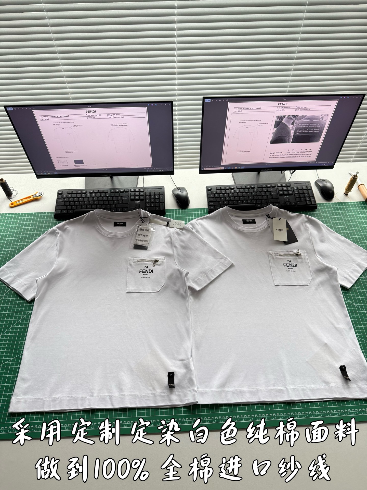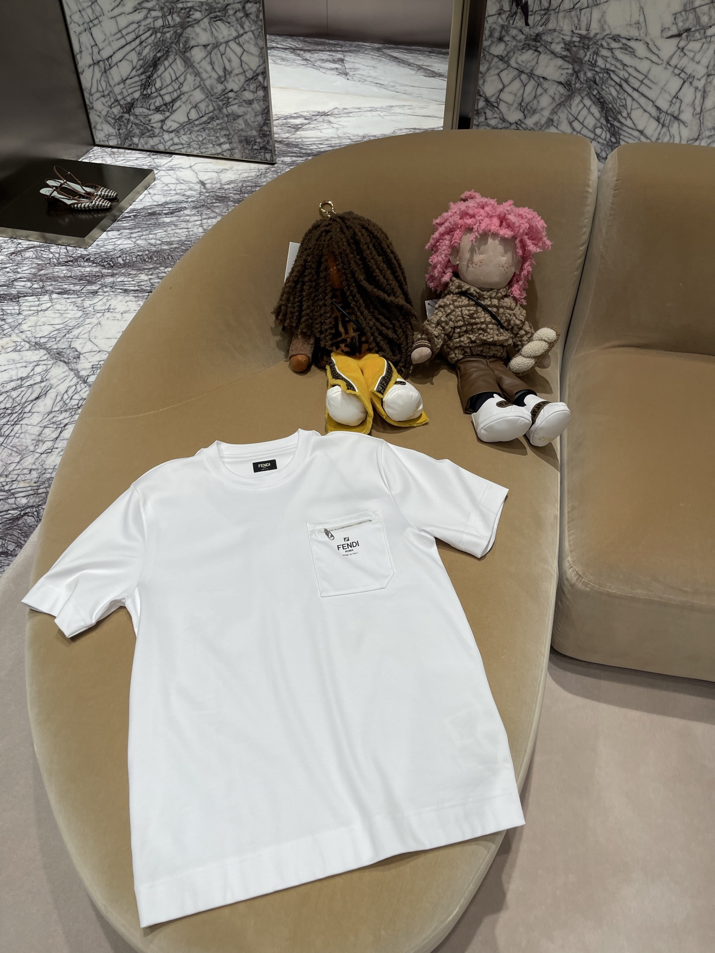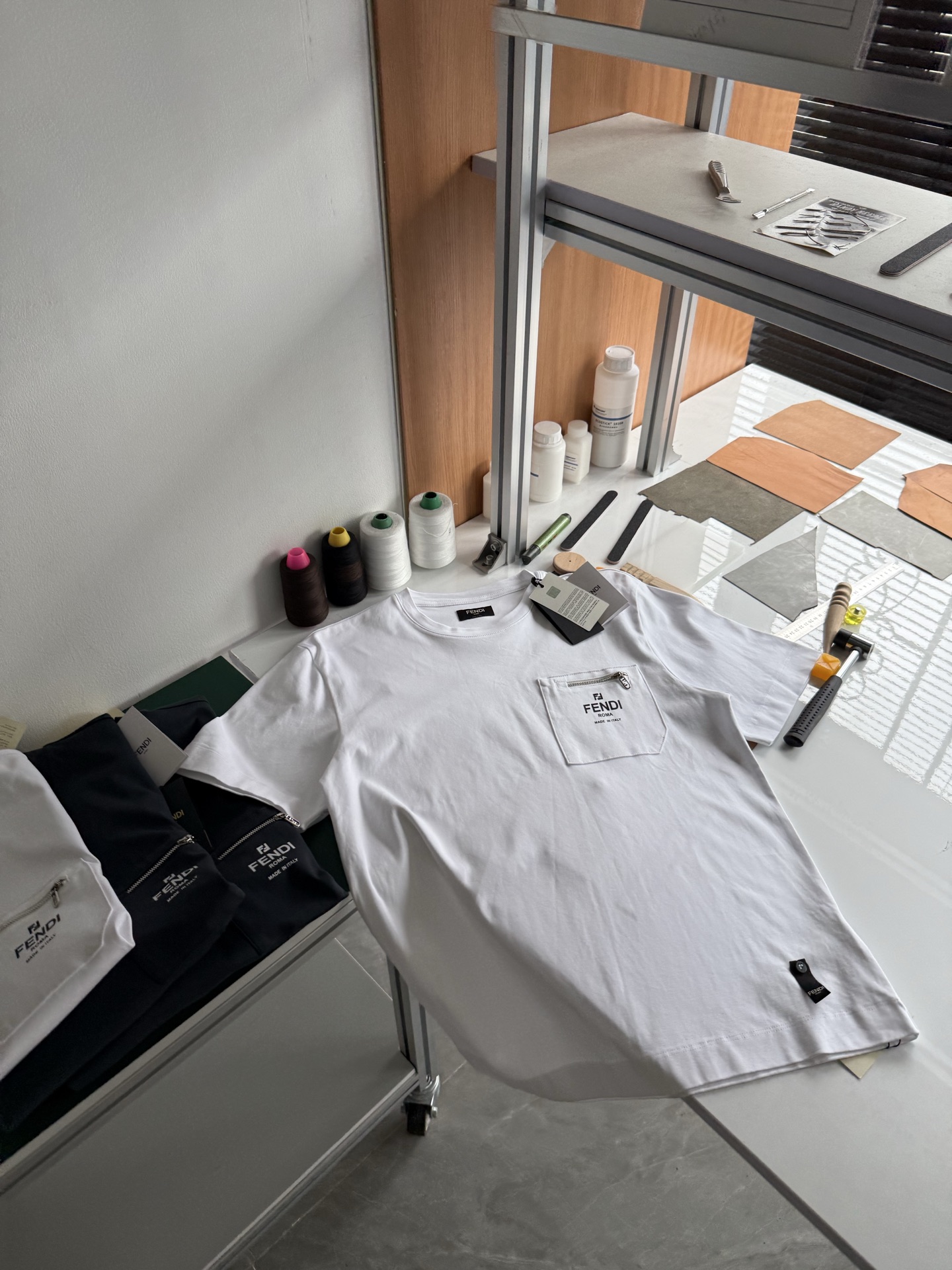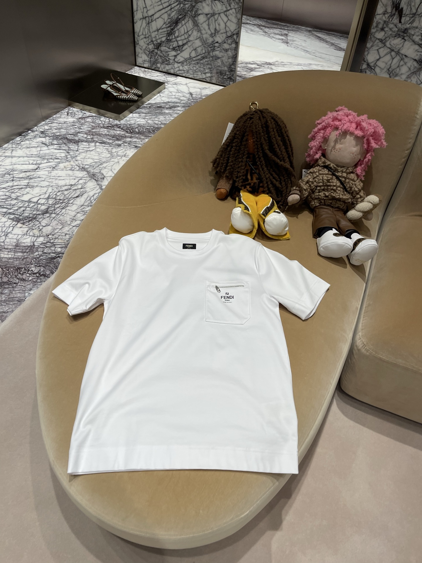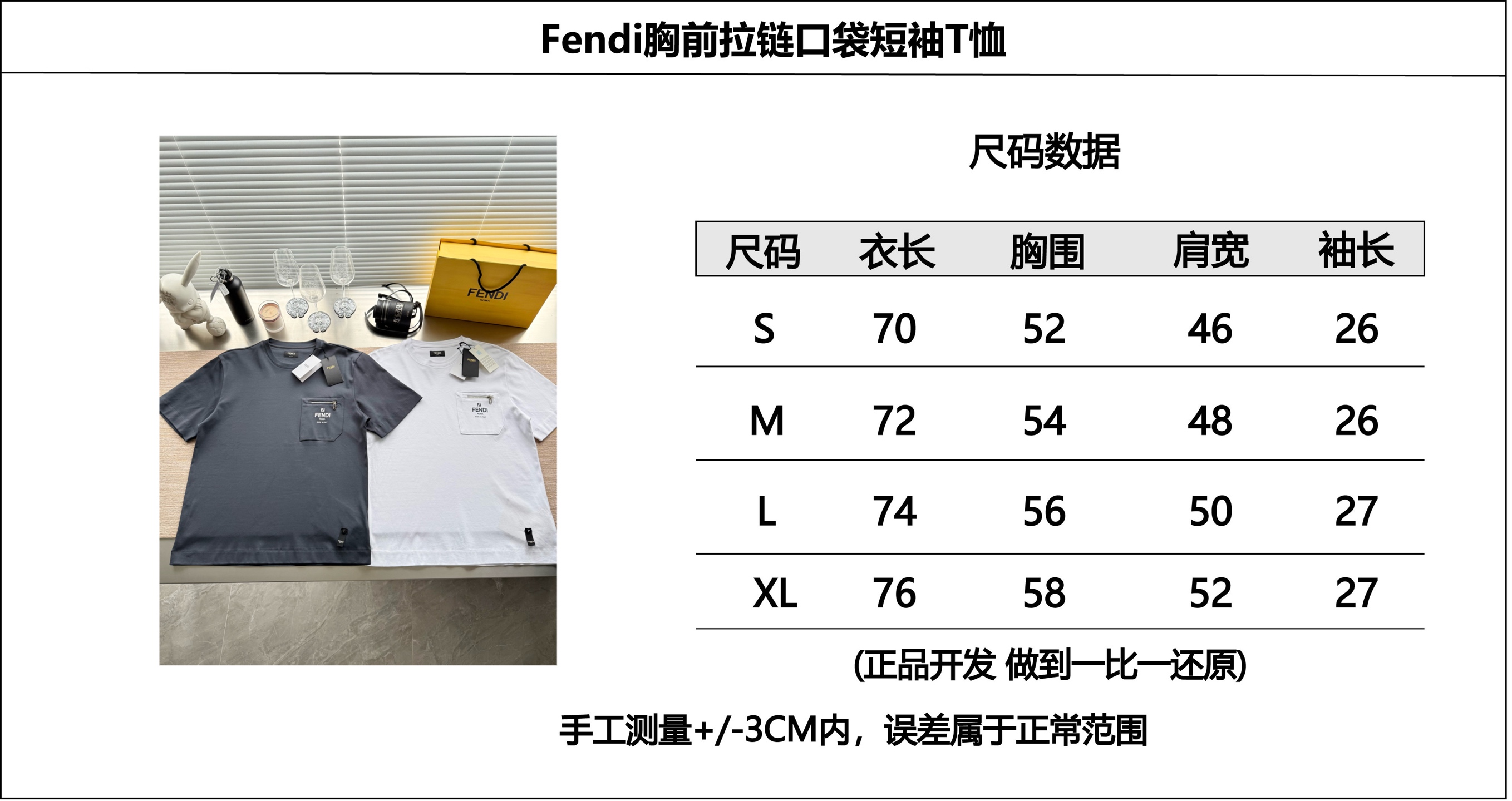 Fendi芬迪25ss胸前拉链口袋印花T恤‼️整件衣服7500购买ZP拆解打造,定制定染白色全棉面料,做到100%全棉进口纱线,胸前拉链口袋设计,饰以撞色字母标识印花,定织标志性罗纹领口,袖口 下摆双层锁边超高密度走线,真正做到1:1copy 闭眼入 码数:S M L XL