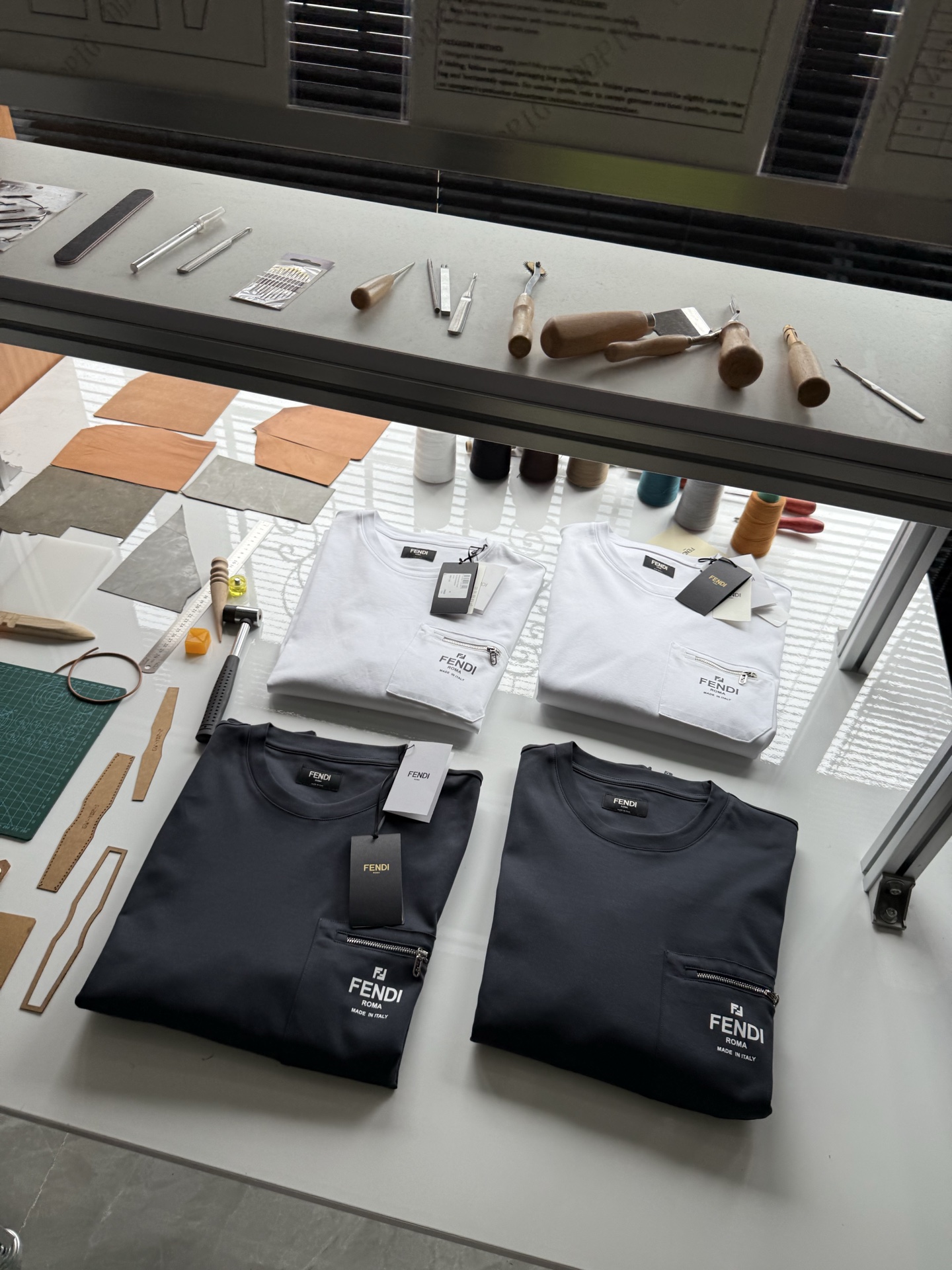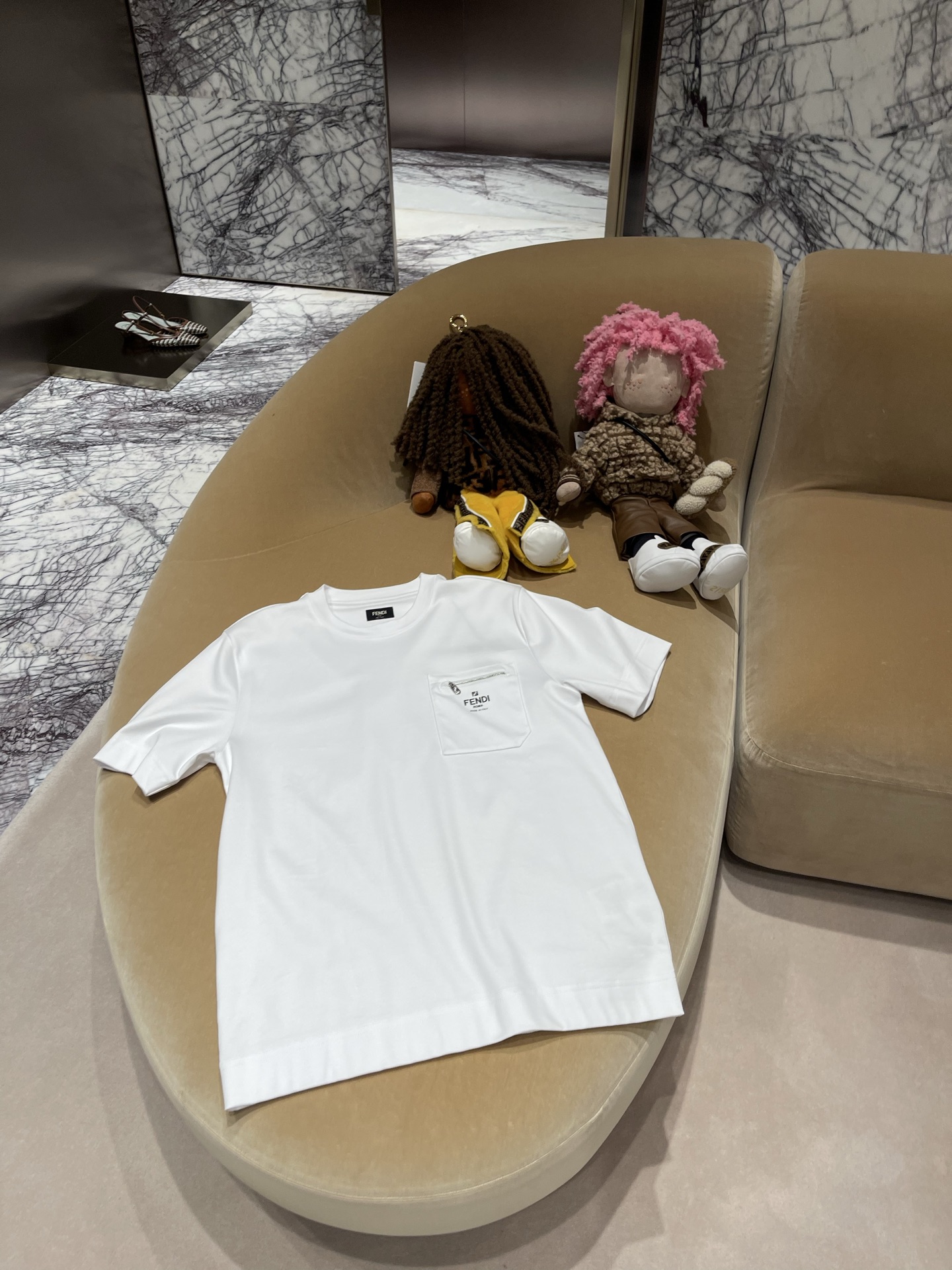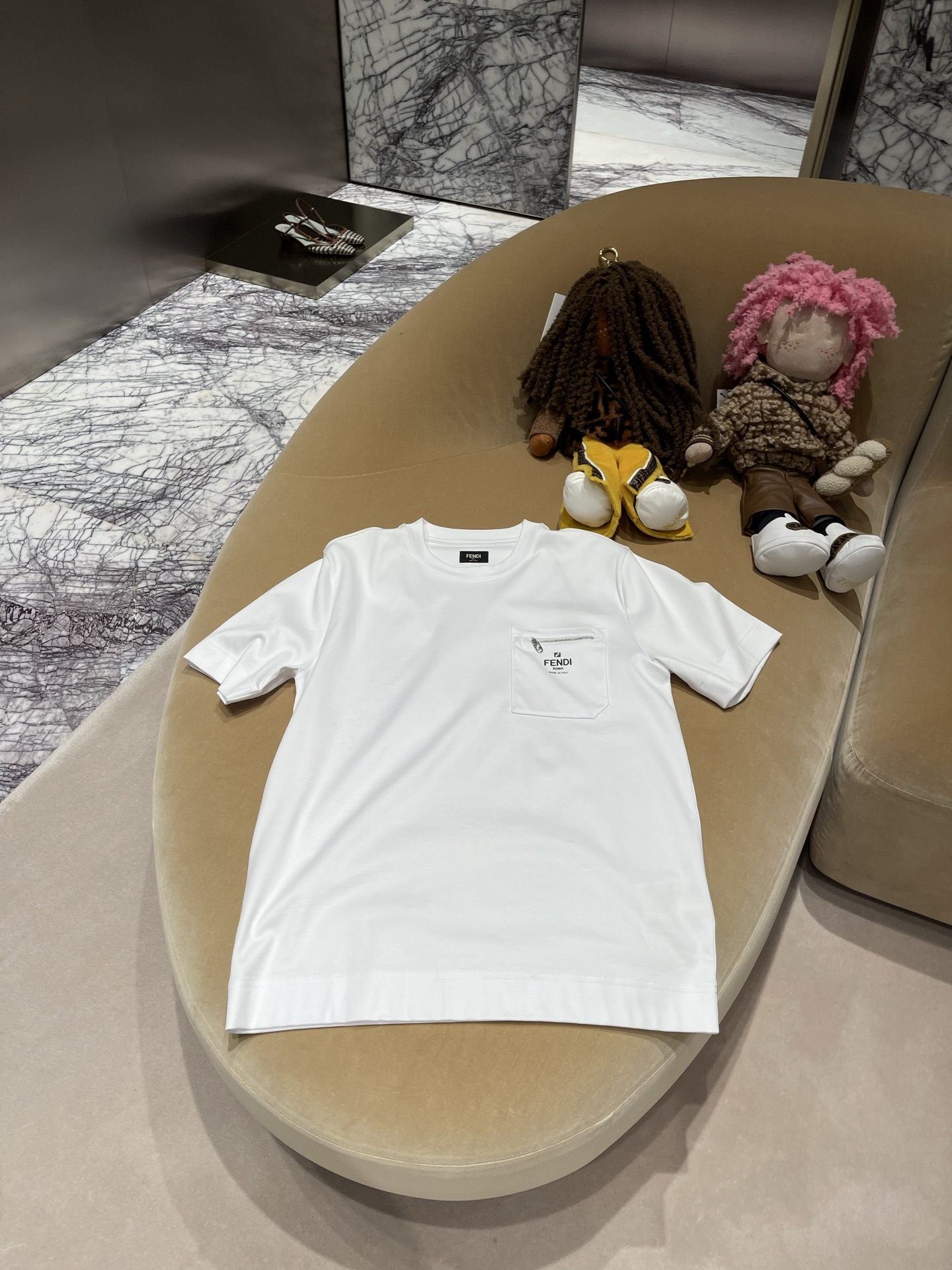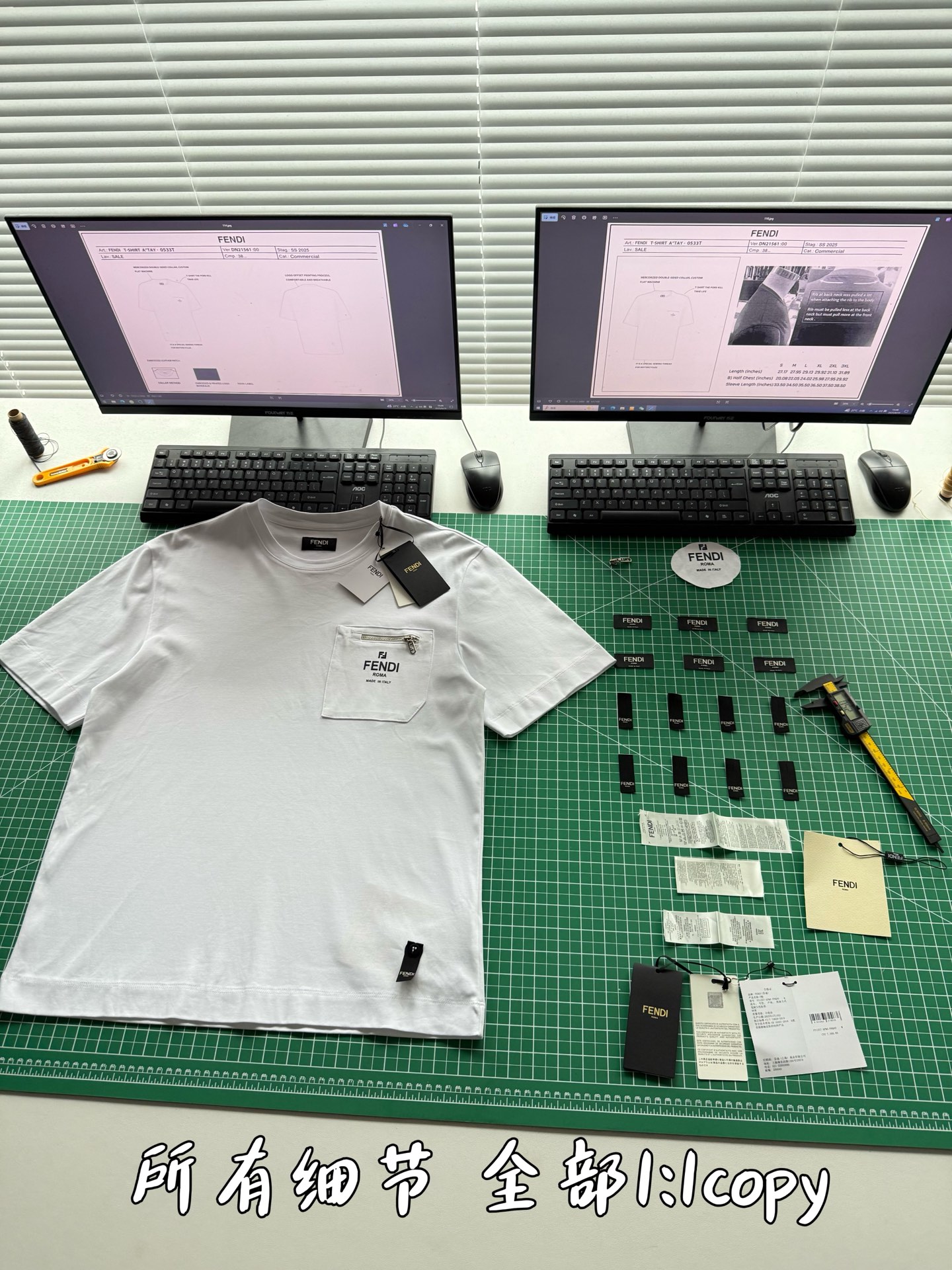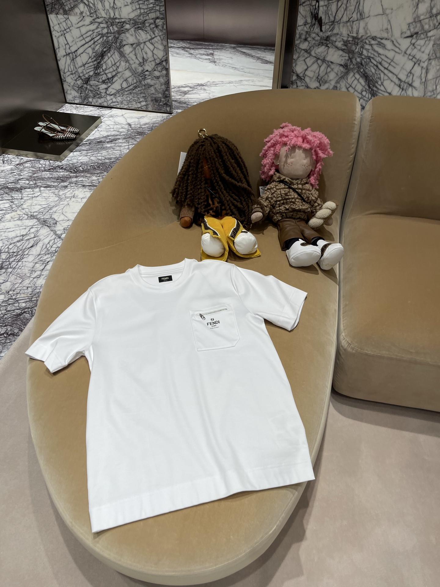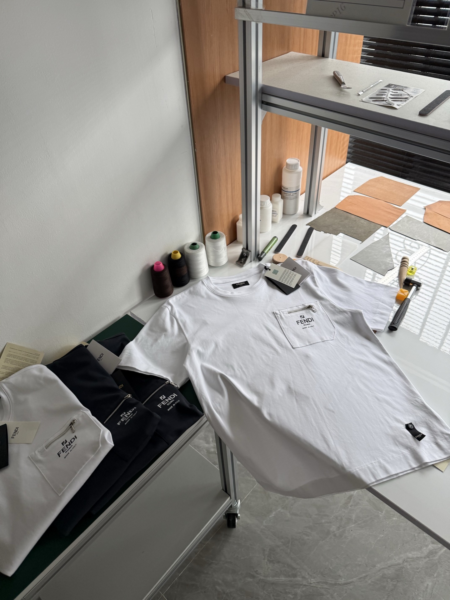 Fendi芬迪25ss胸前拉链口袋印花T恤‼️整件衣服7500购买ZP拆解打造,定制定染白色全棉面料,做到100%全棉进口纱线,胸前拉链口袋设计,饰以撞色字母标识印花,定织标志性罗纹领口,袖口 下摆双层锁边超高密度走线,真正做到1:1copy 闭眼入 码数:S M L XL