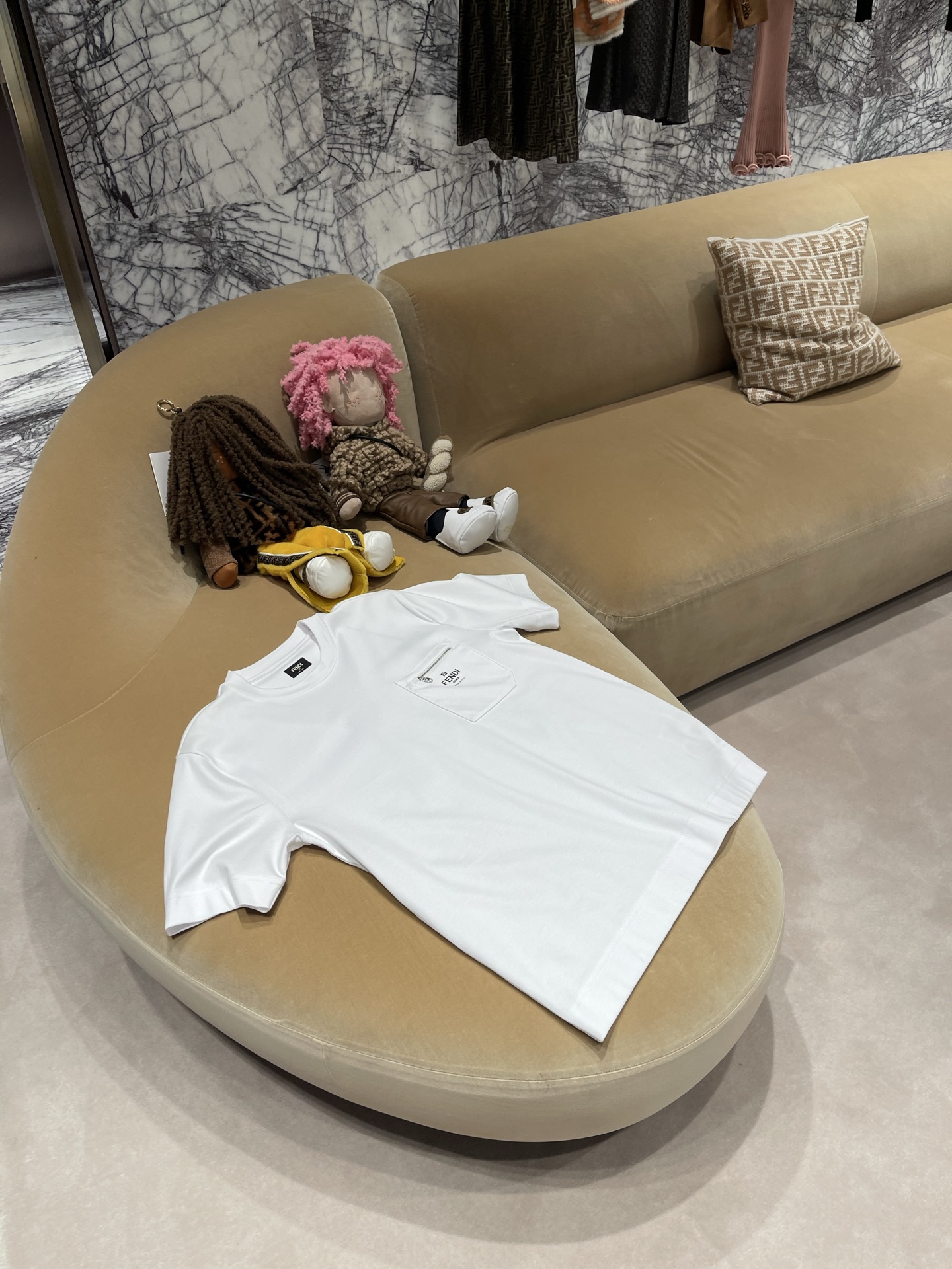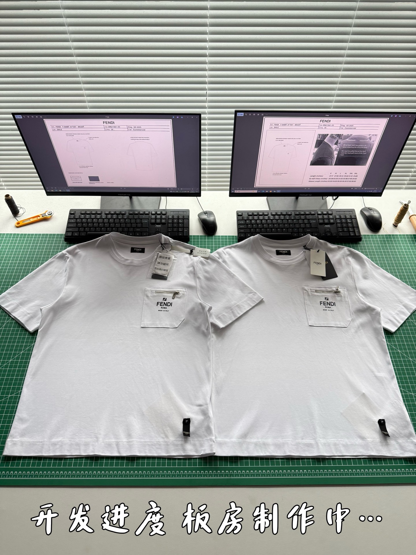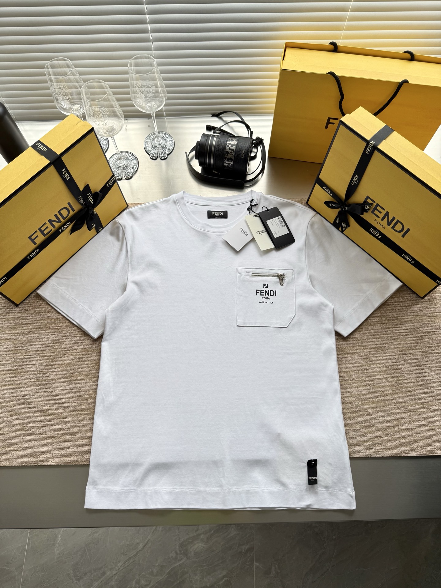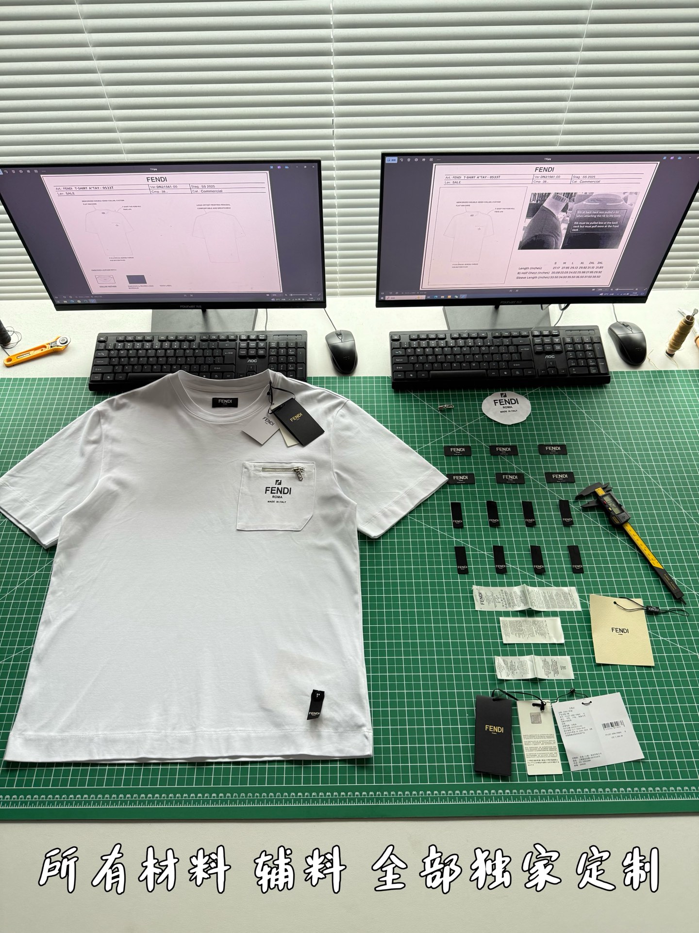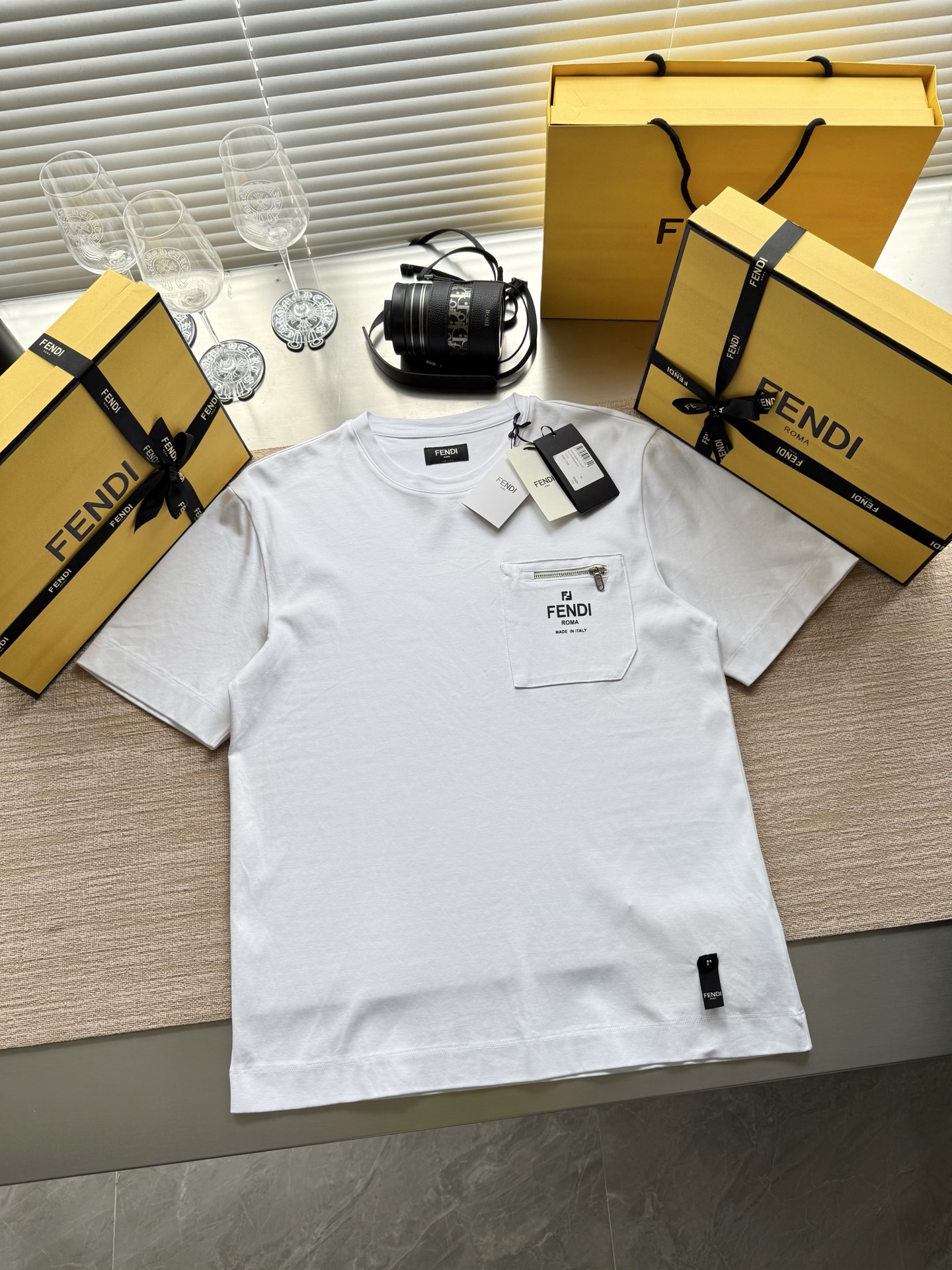 Fendi芬迪25ss胸前拉链口袋印花T恤‼️整件衣服7500购买ZP拆解打造,定制定染白色全棉面料,做到100%全棉进口纱线,胸前拉链口袋设计,饰以撞色字母标识印花,定织标志性罗纹领口,袖口 下摆双层锁边超高密度走线,真正做到1:1copy 闭眼入 码数:S M L XL