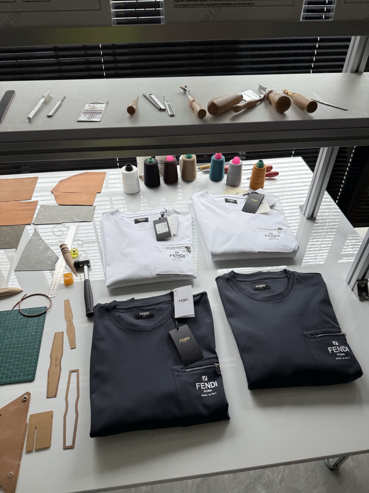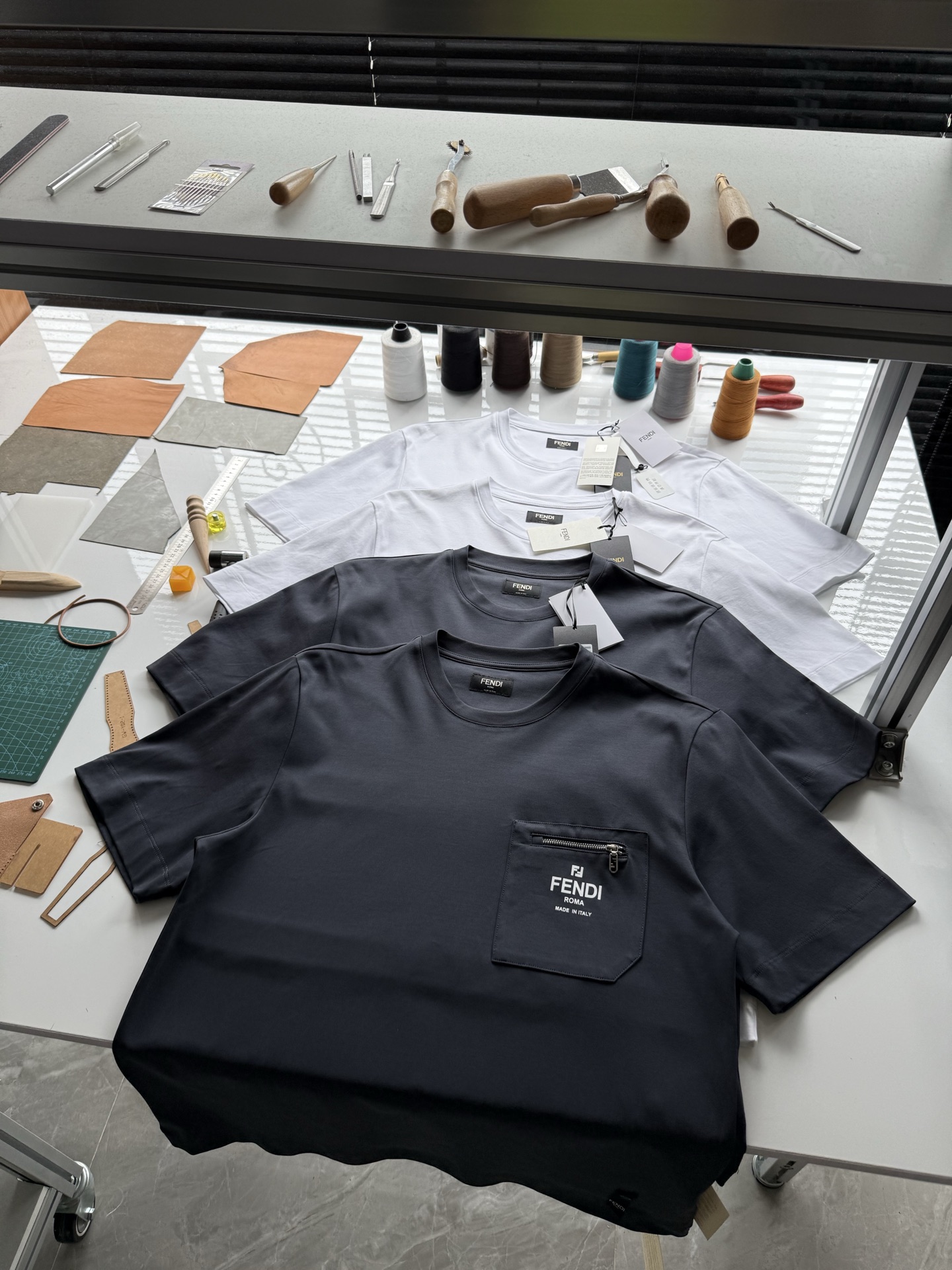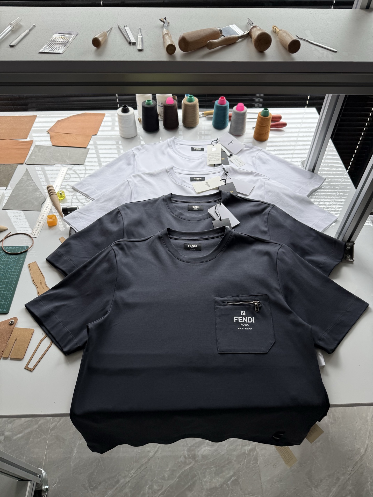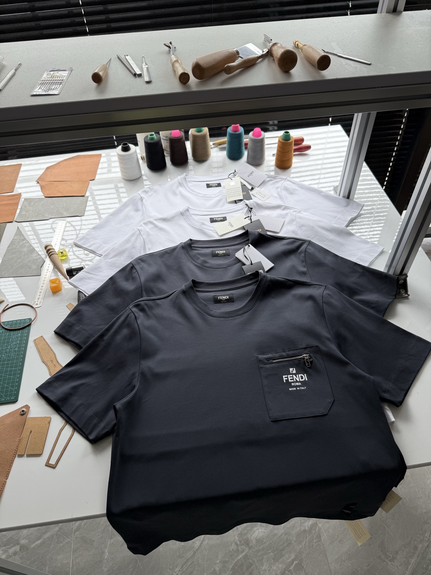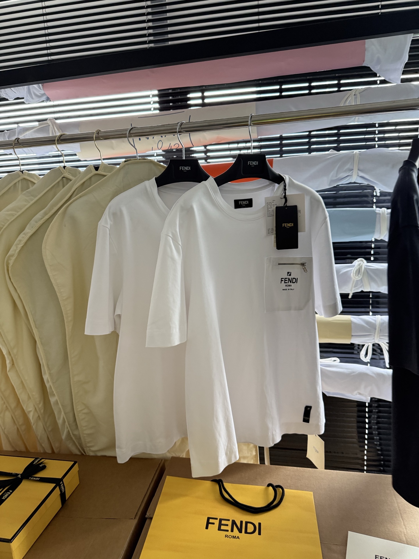 Fendi芬迪25ss胸前拉链口袋印花T恤‼️整件衣服7500购买ZP拆解打造,定制定染白色全棉面料,做到100%全棉进口纱线,胸前拉链口袋设计,饰以撞色字母标识印花,定织标志性罗纹领口,袖口 下摆双层锁边超高密度走线,真正做到1:1copy 闭眼入 码数:S M L XL