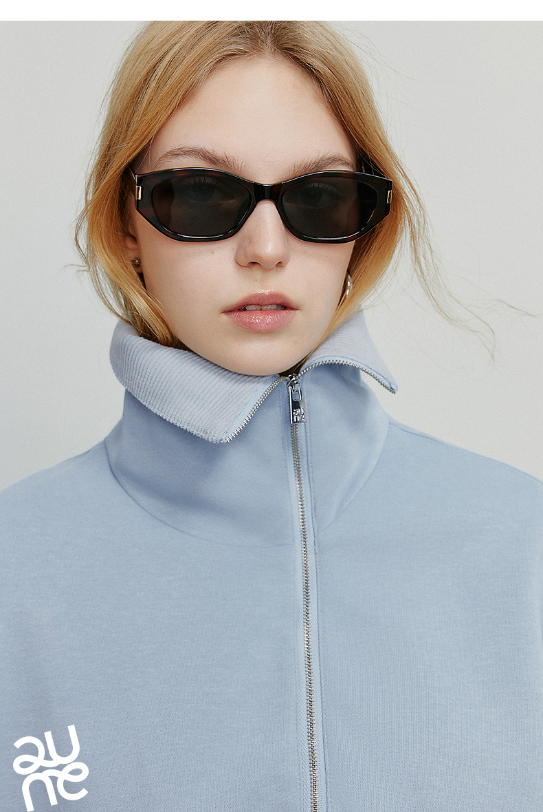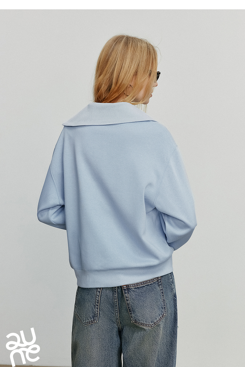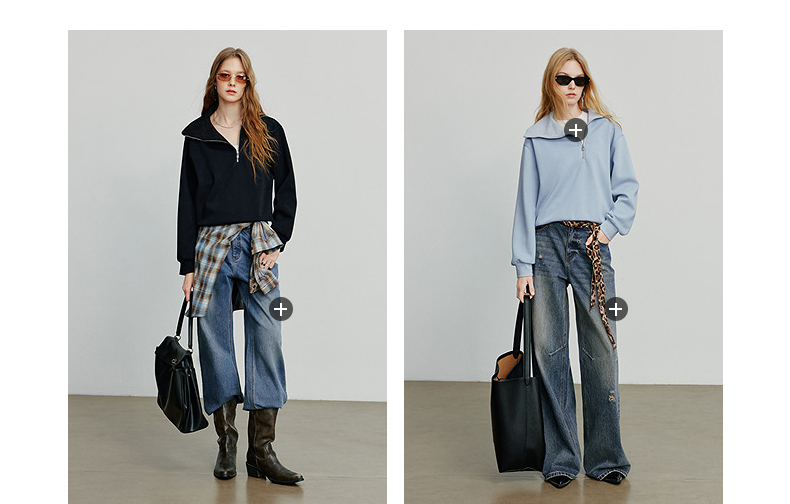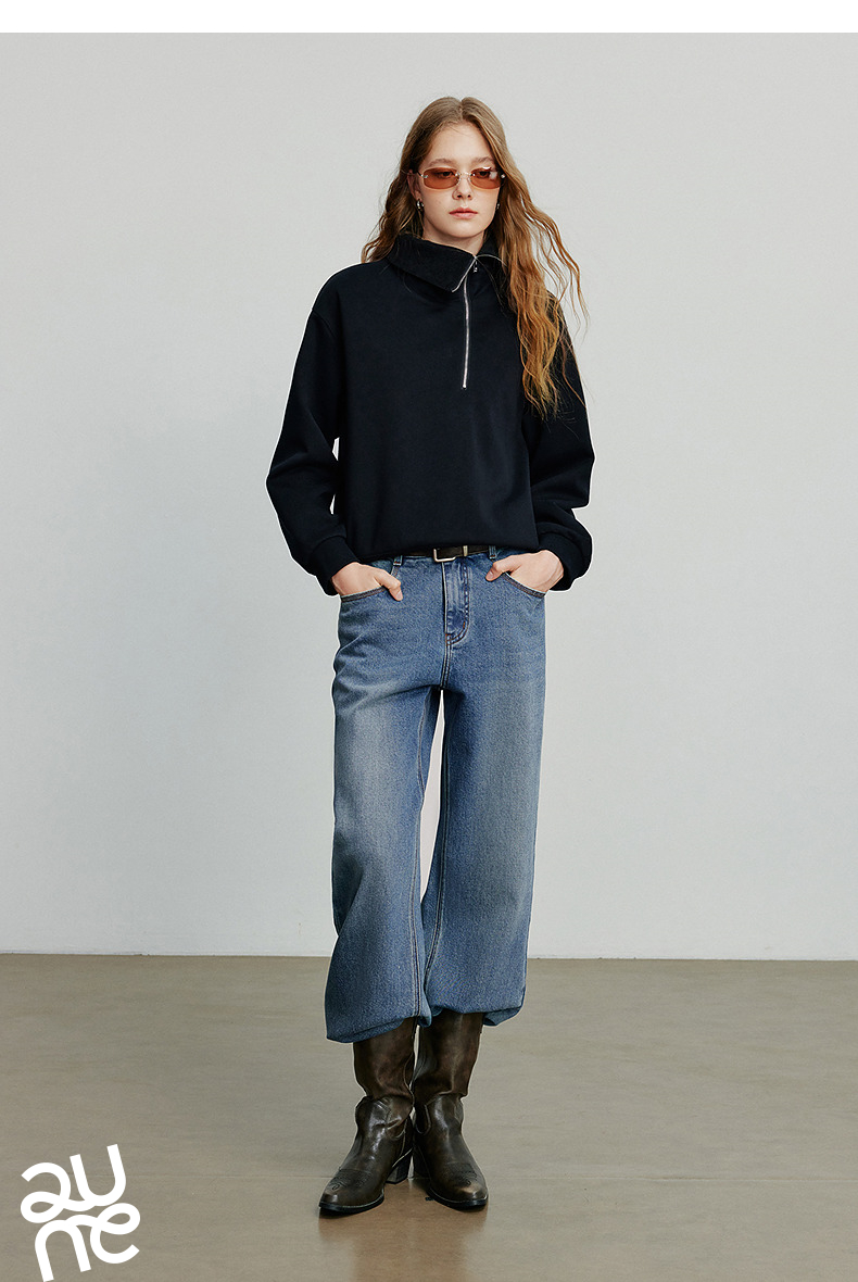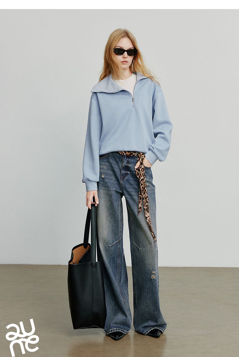 初语 2025新款卫衣女 不对称拉链大翻领长袖时髦拼接设计感潮酷上衣