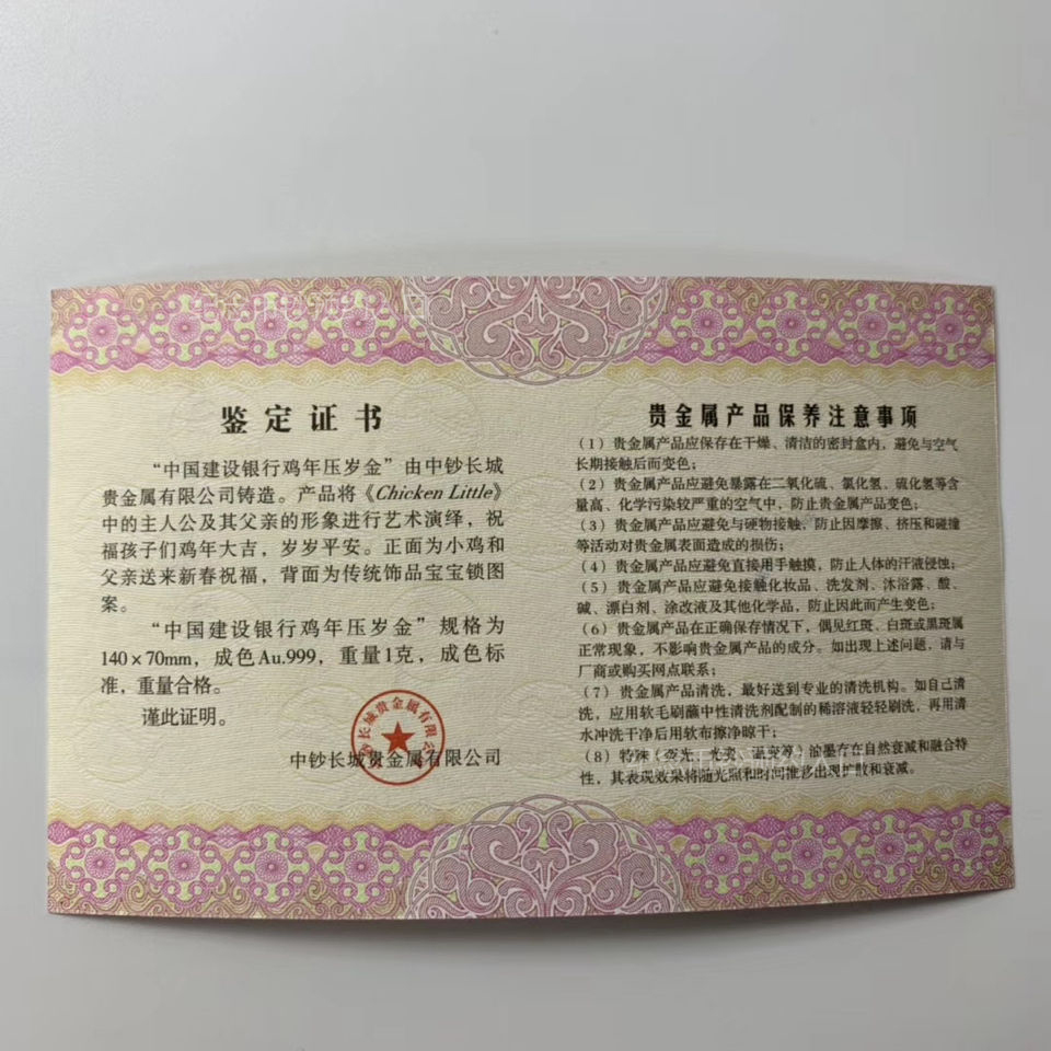 建行鸡年压岁金钞 中国建设银行发行 含纯金1克