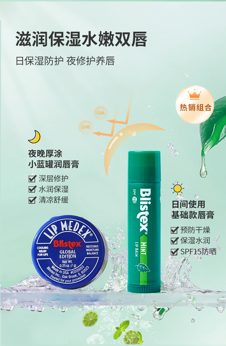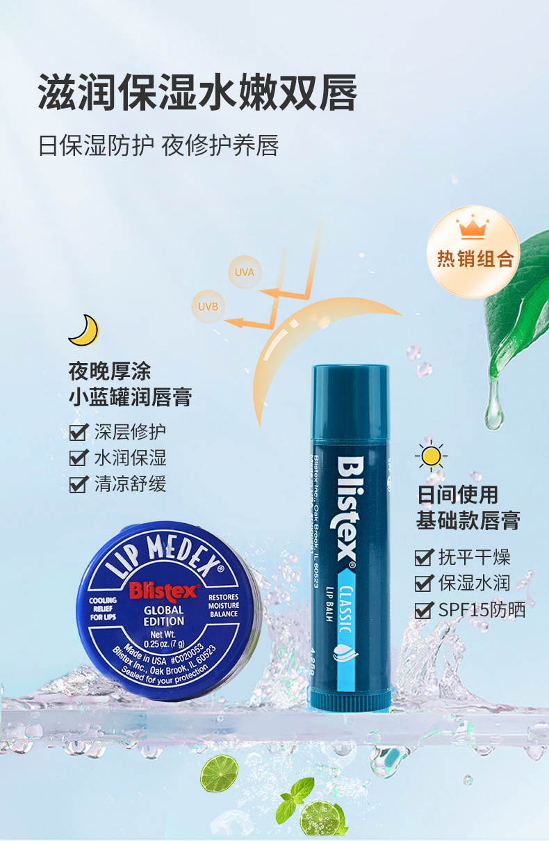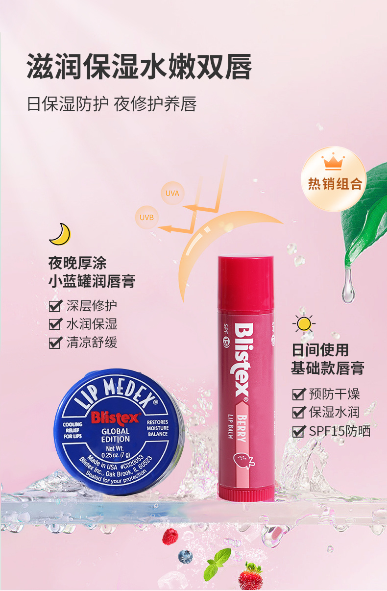 Blistex百蕾适润唇膏日夜修护组合淡化唇纹补水滋润保湿