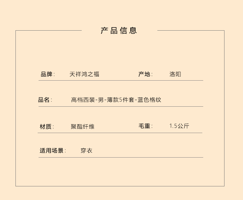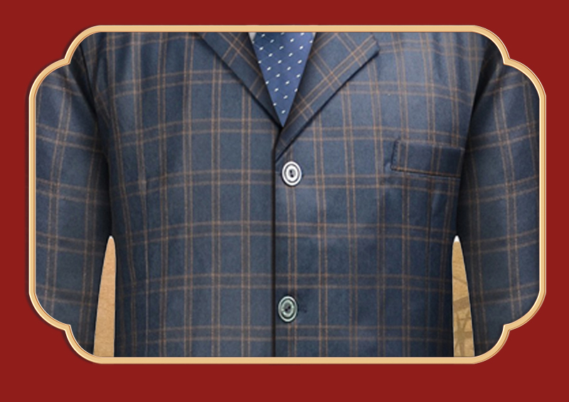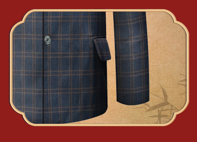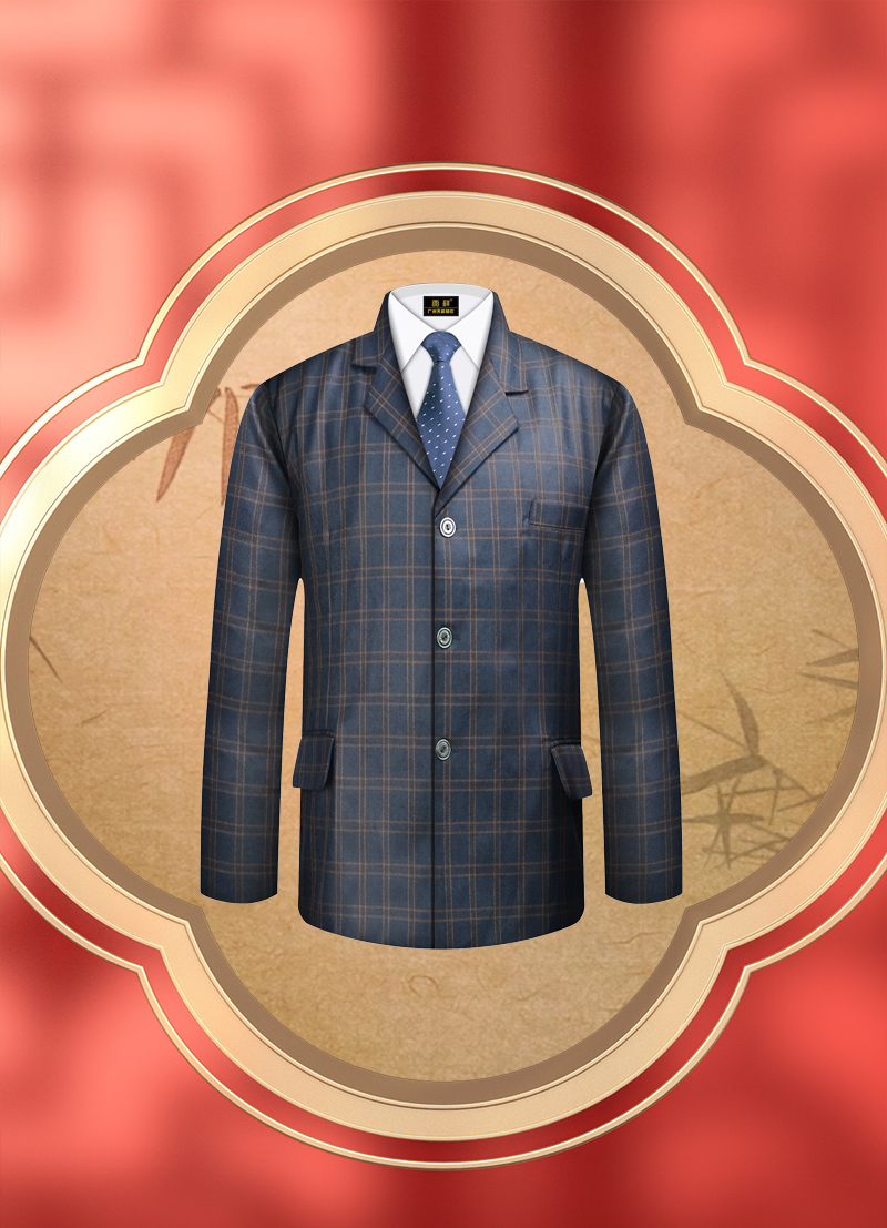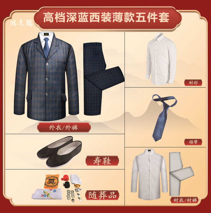 男士高档西装-蓝色格纹薄款5件套寿衣寿服套装