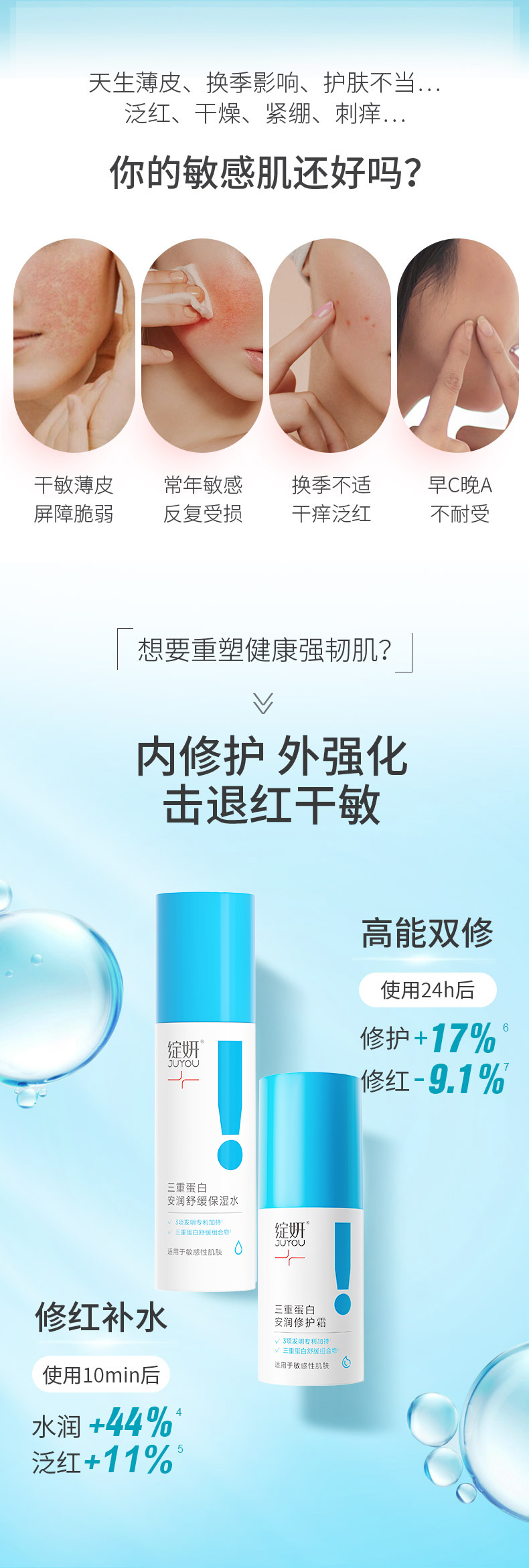 - JUYOU绽妍指定唯一官方商城,为消费者提供更好的功效性屏障修复方案