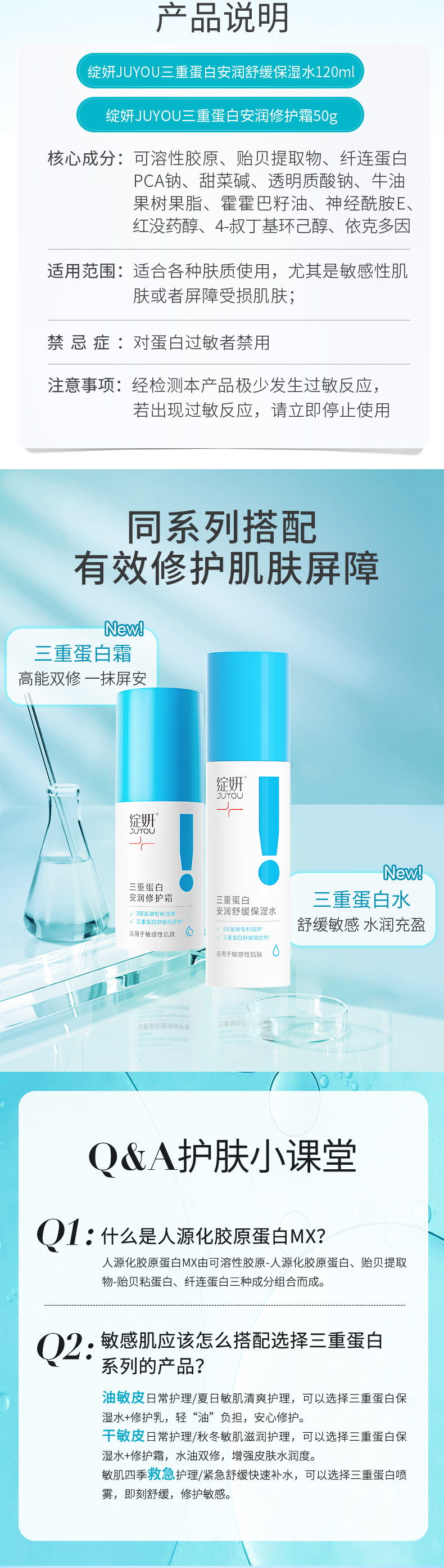 【敏肌修护】绽妍三重蛋白水霜(120ml+50g) 敏肌修护 补水保湿