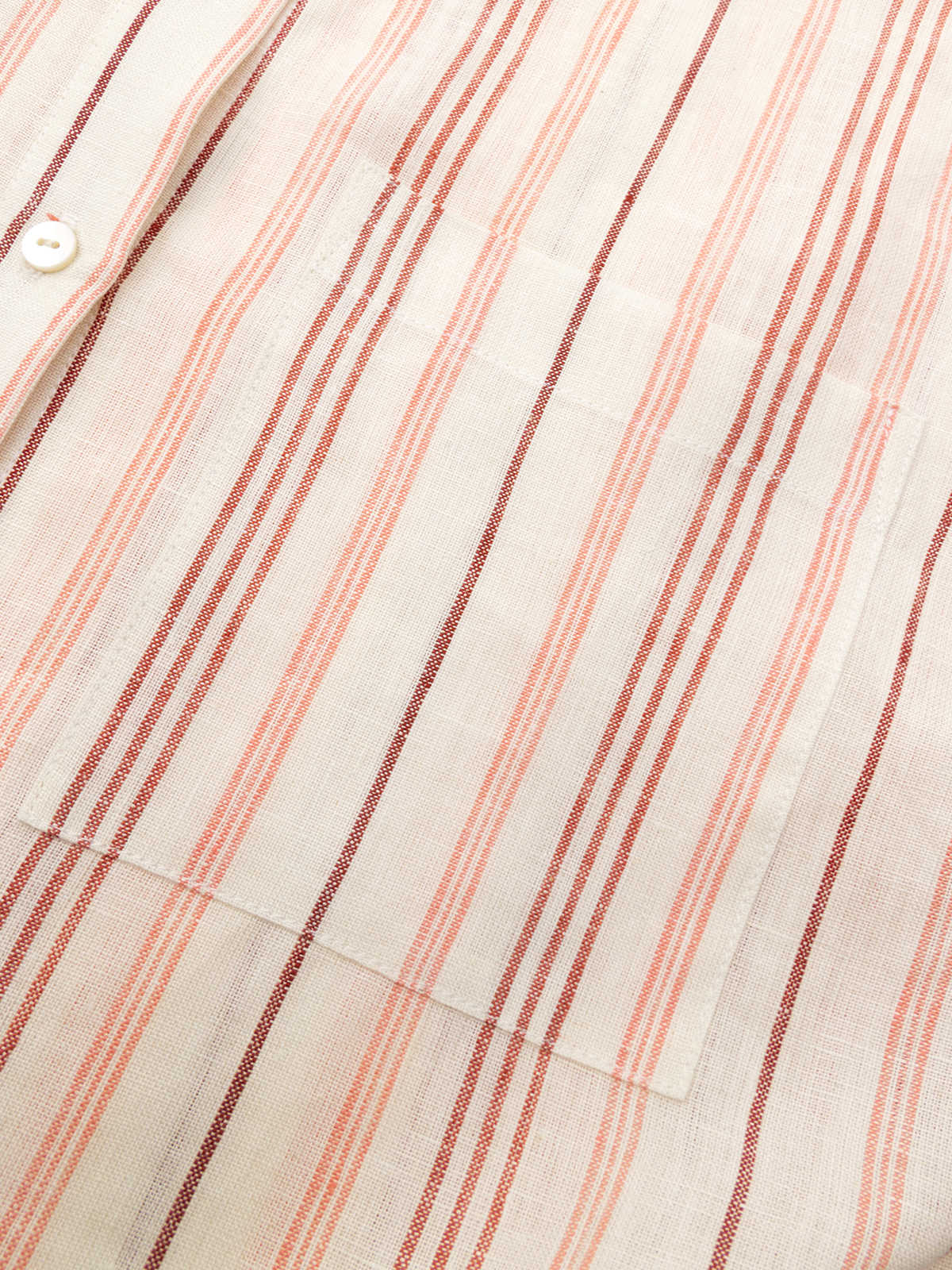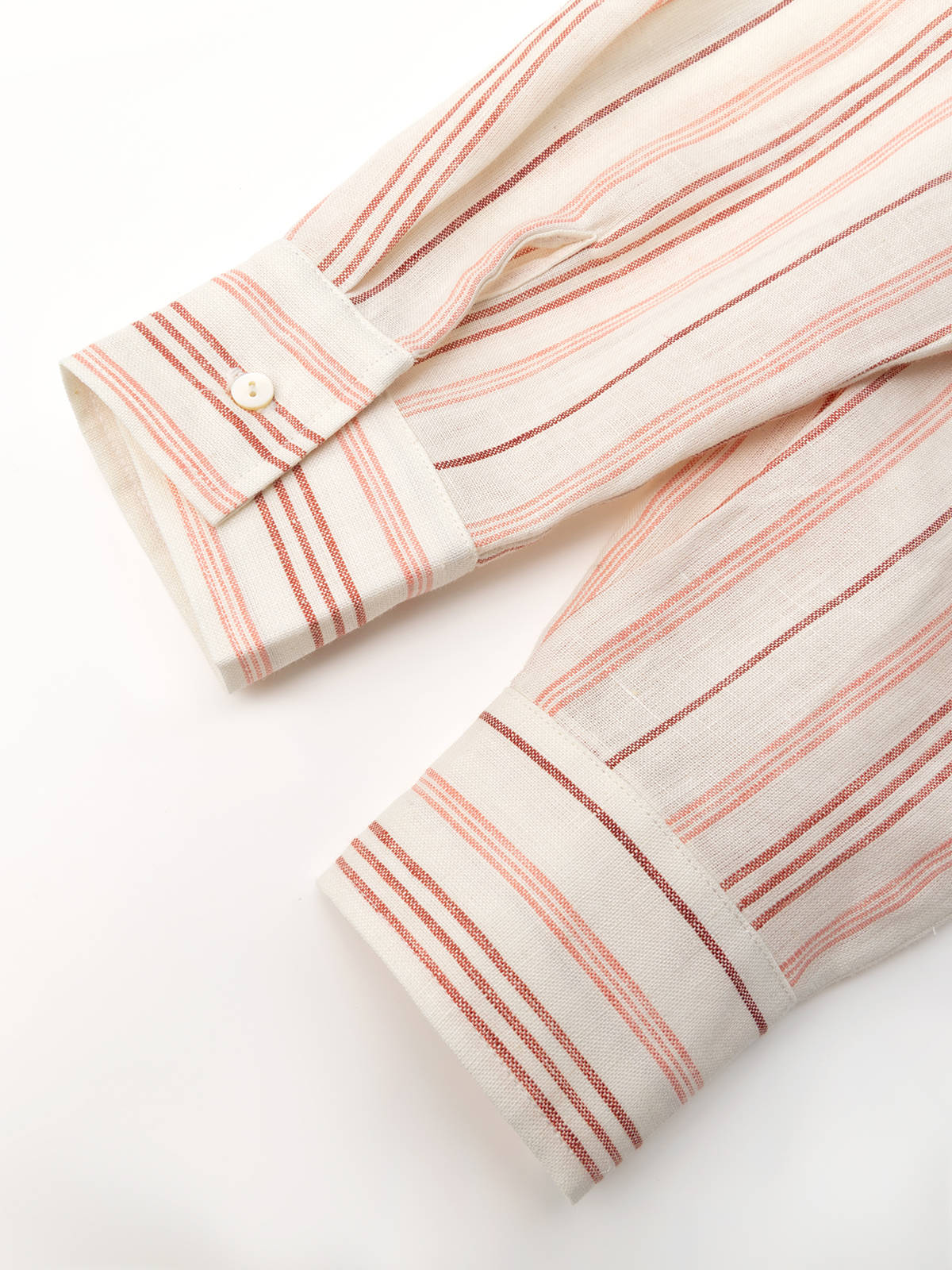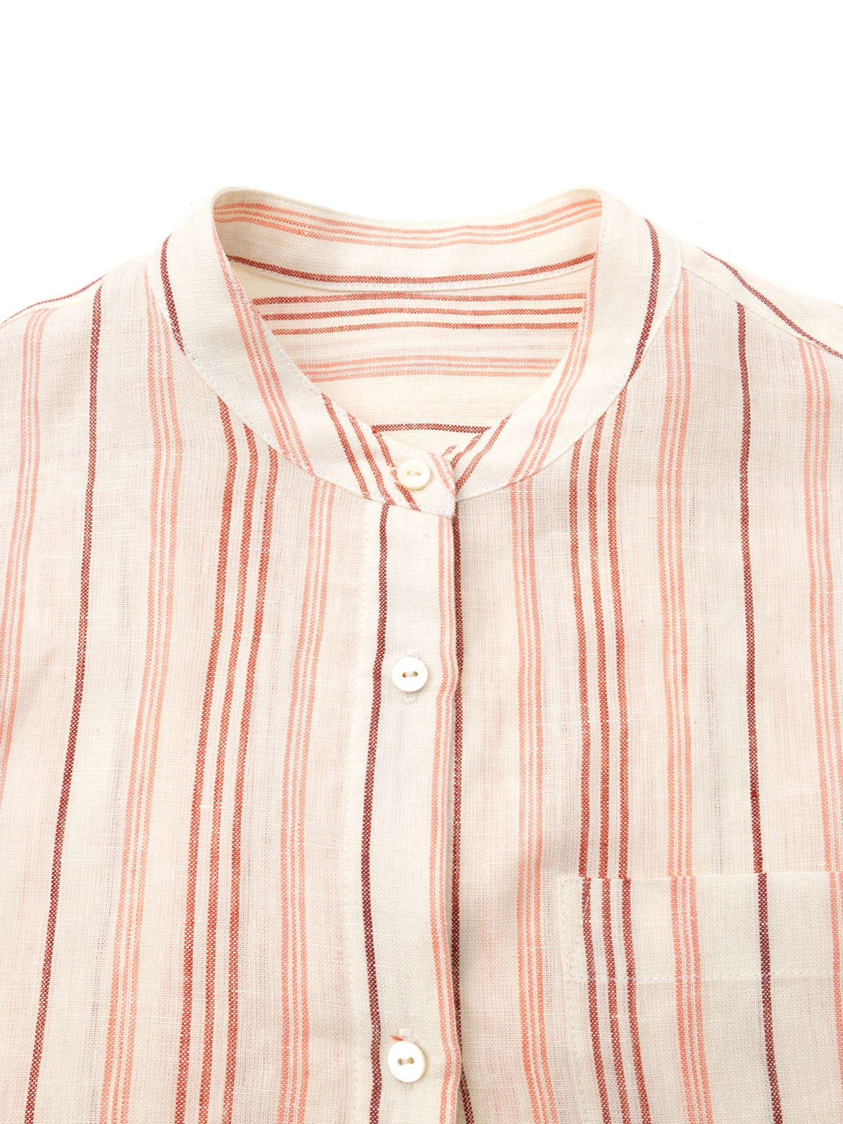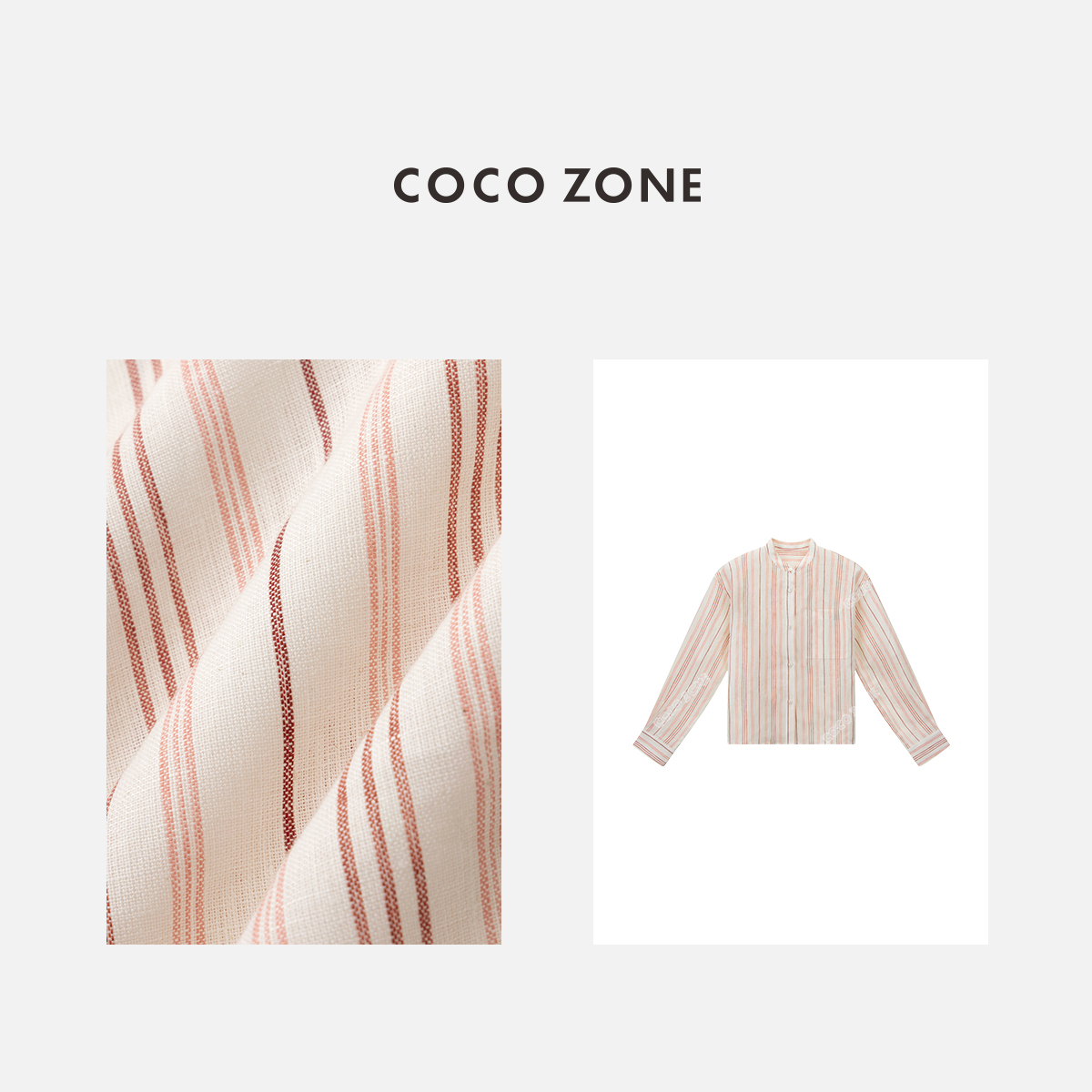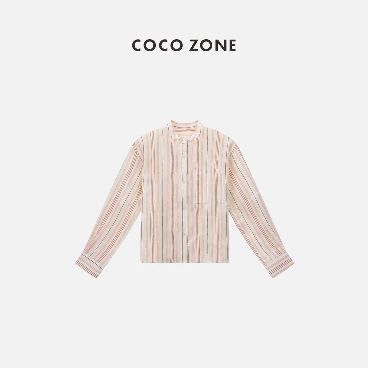 COCO ZONE2024时尚竖条纹长袖衬衫撞色翻领单排扣上衣CC1B0759