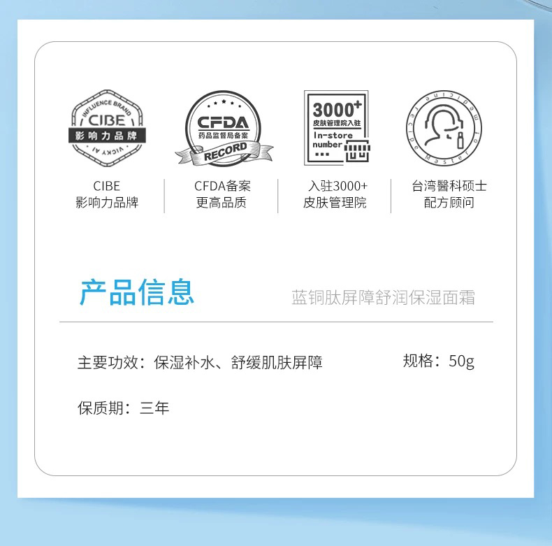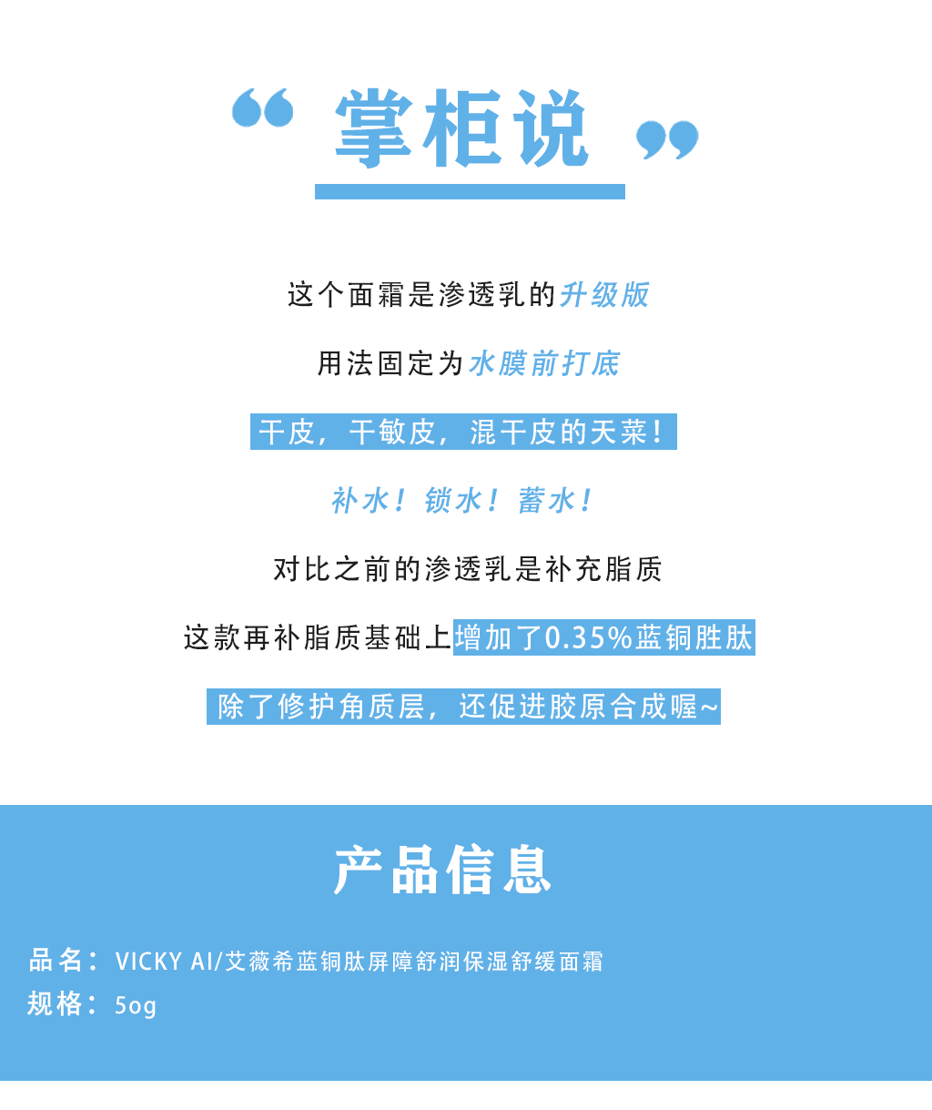 VICKY AI/艾薇希蓝铜肽屏障舒润保湿舒缓面霜50g
