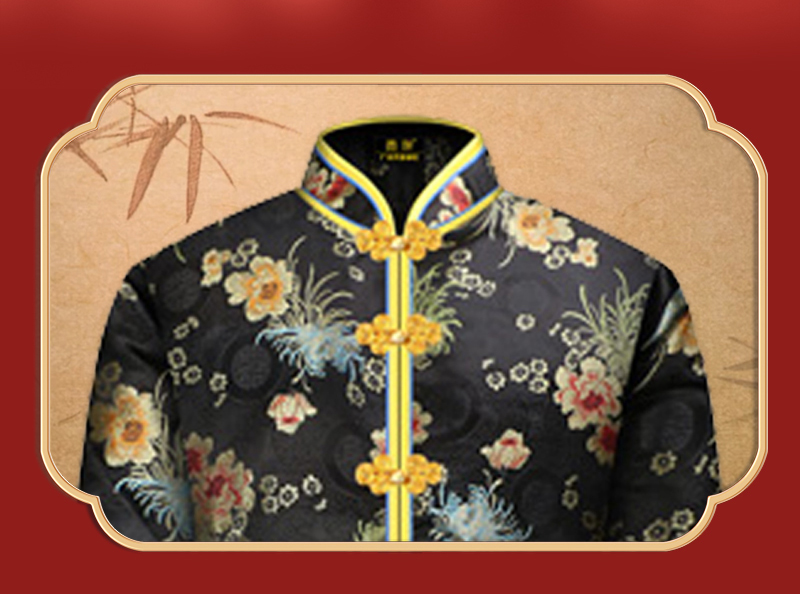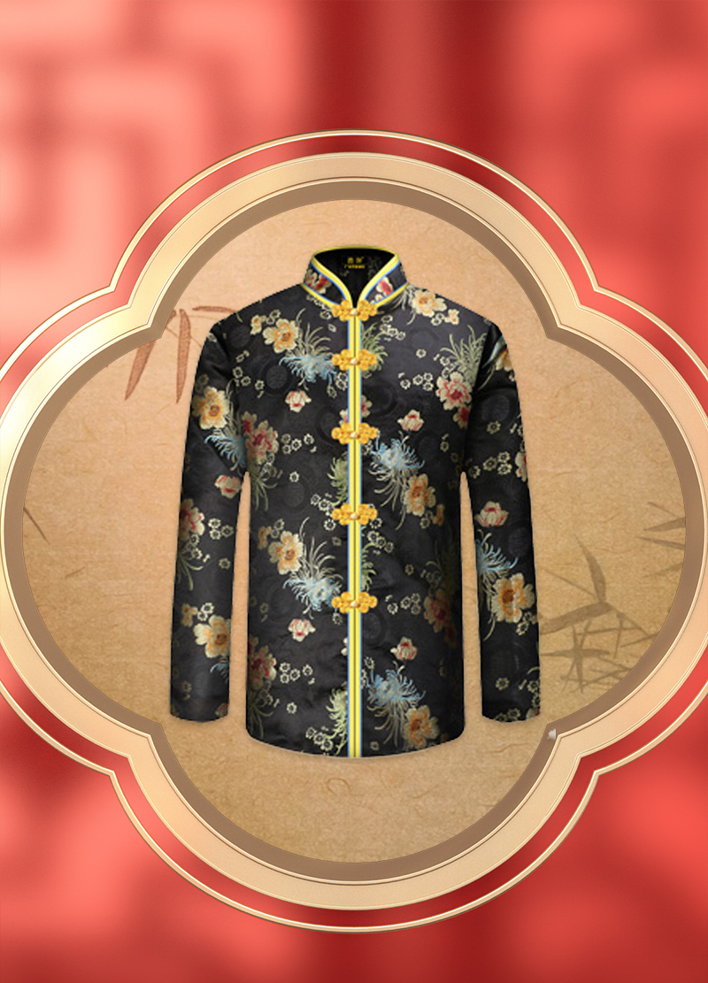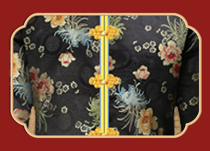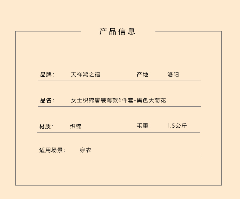 女士薄款织锦唐装黑色大菊花6件套寿衣寿服套装